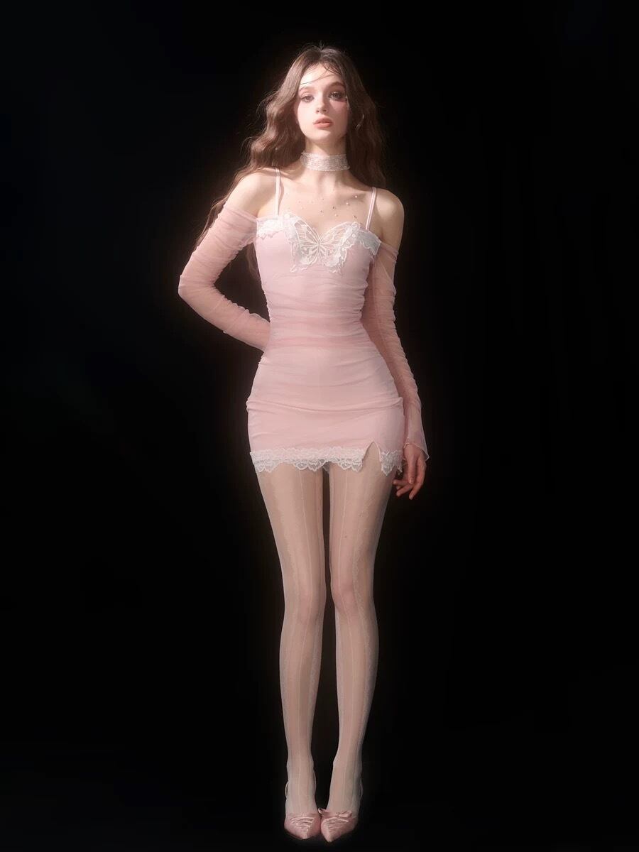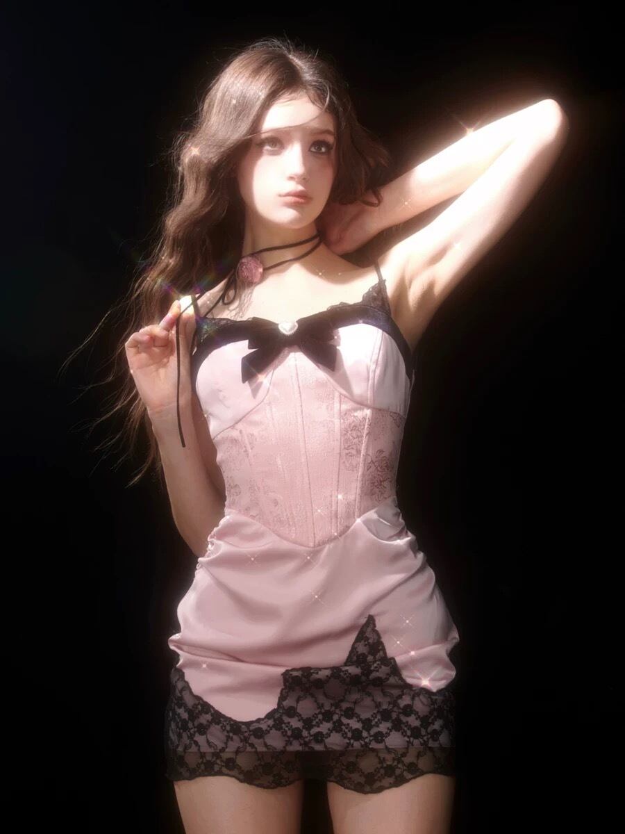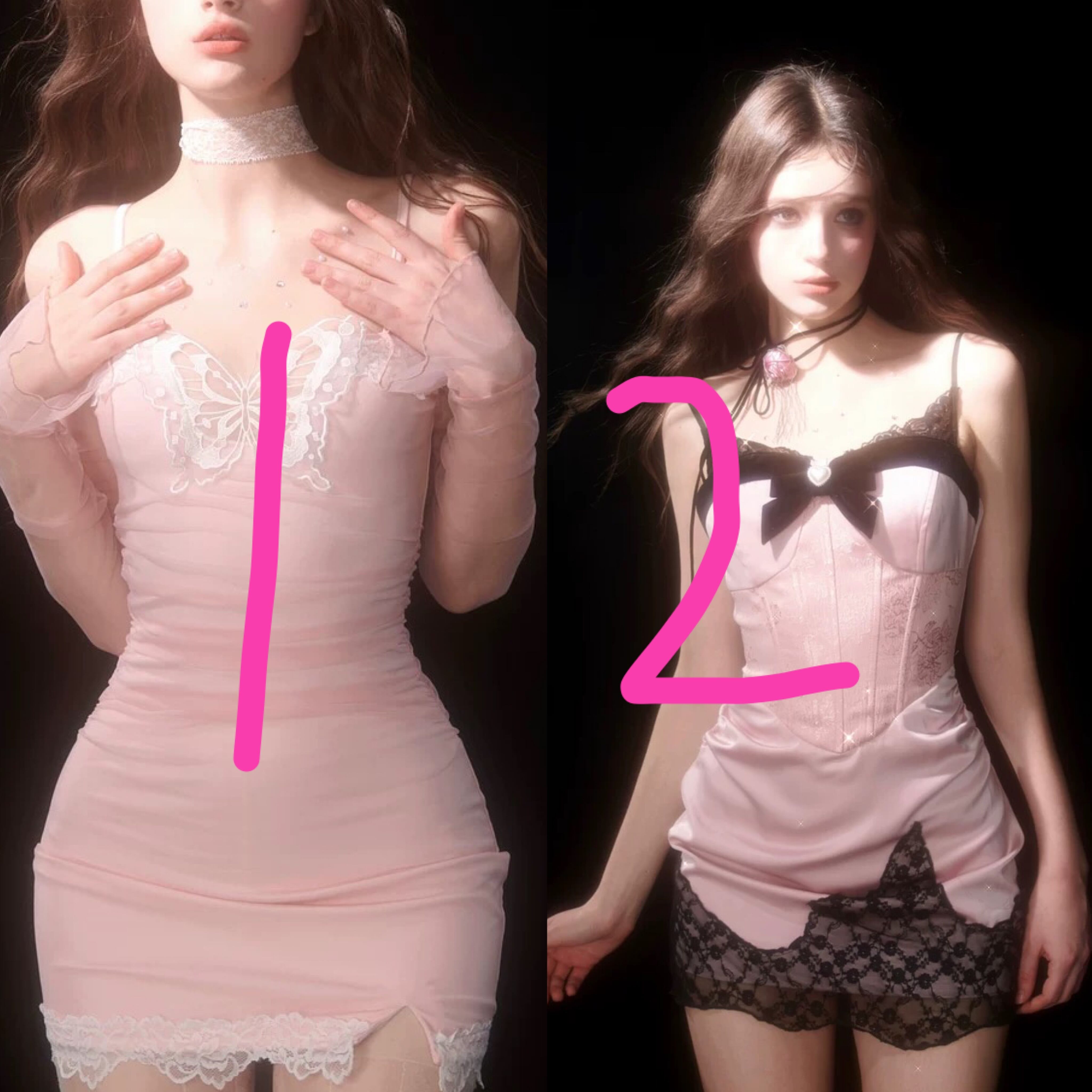 ワンピース キャミソール ピンク 黒 セクシー インナー ドレス