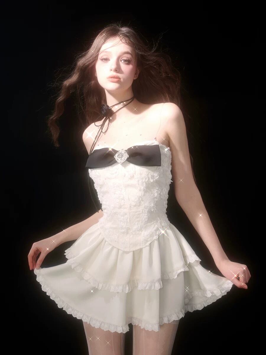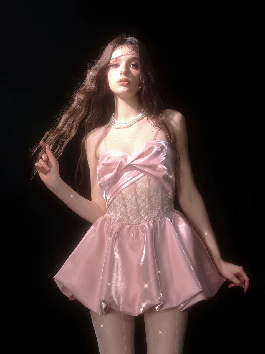 ワンピース 白 ピンク キャミソール ドレス ガーリー