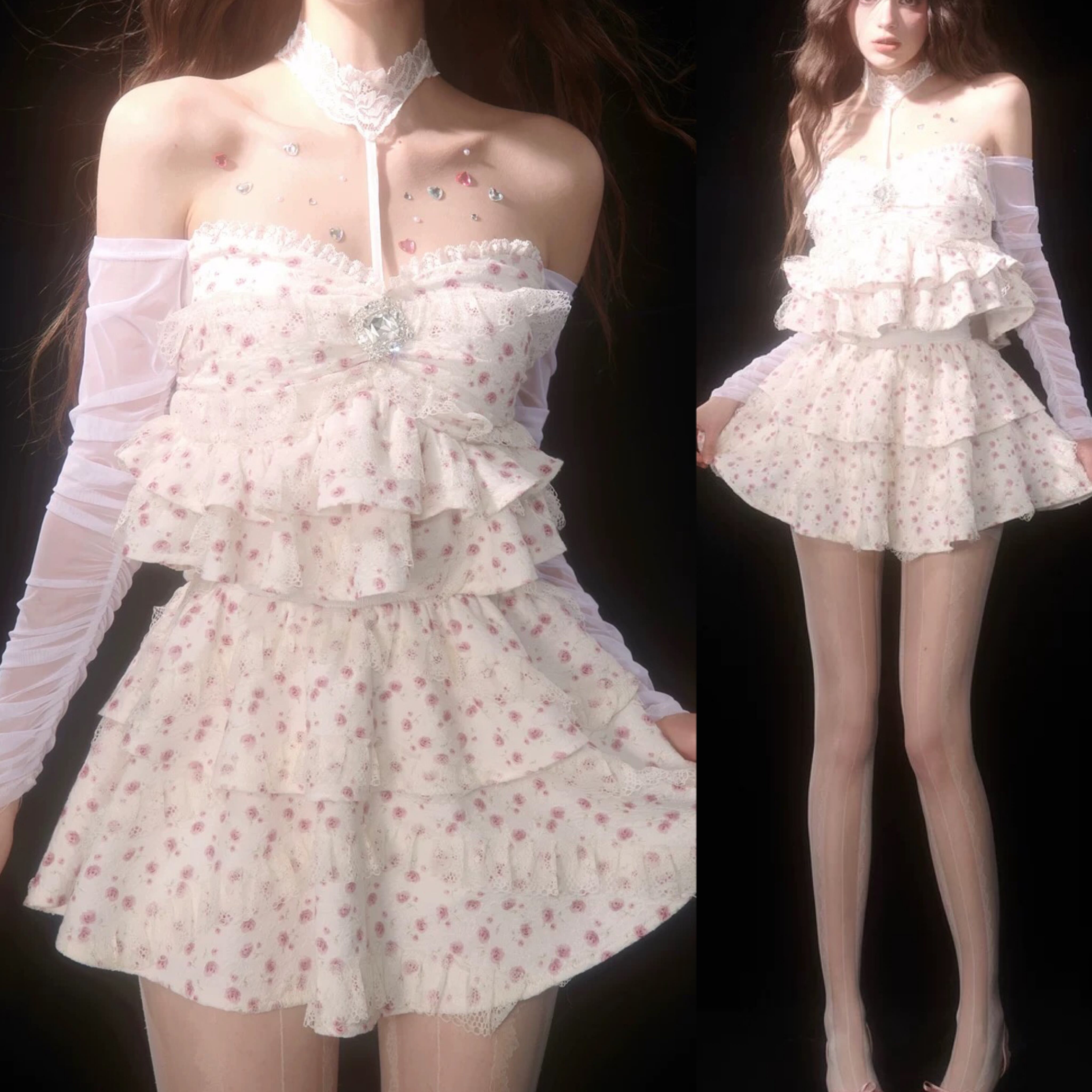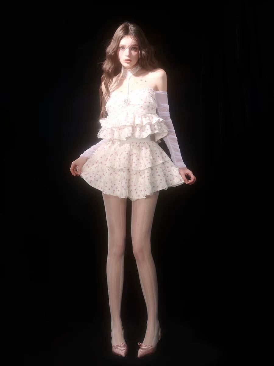 【セットアップ】ミニスカート ブラウス オフショルダー 花柄 ピンク 可愛い ツーピース