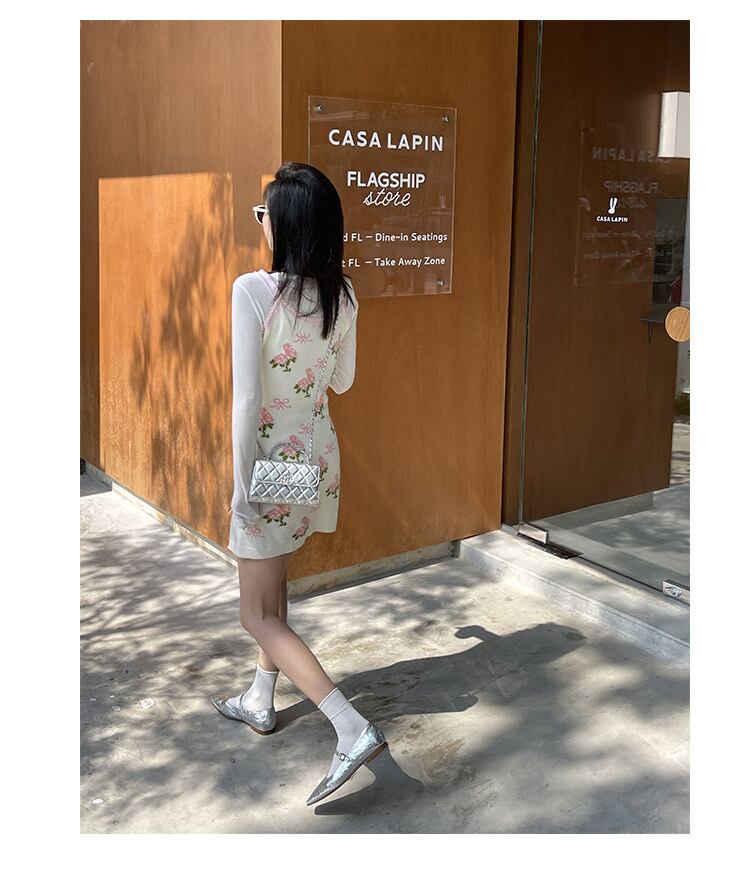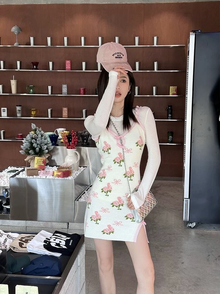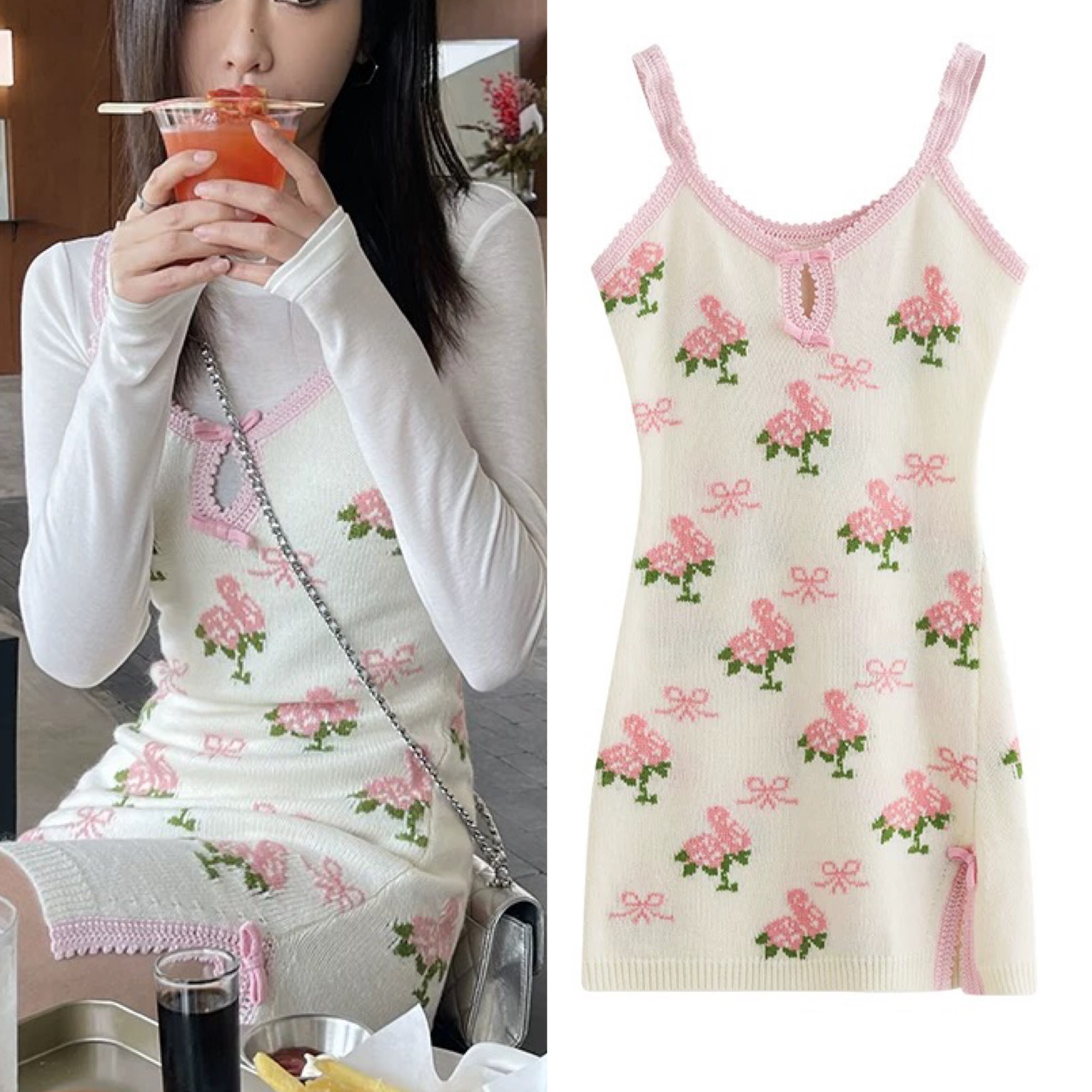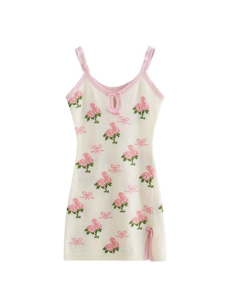 キャミソール ニット 花柄 フラワー 白 ワンピース トップス セーター