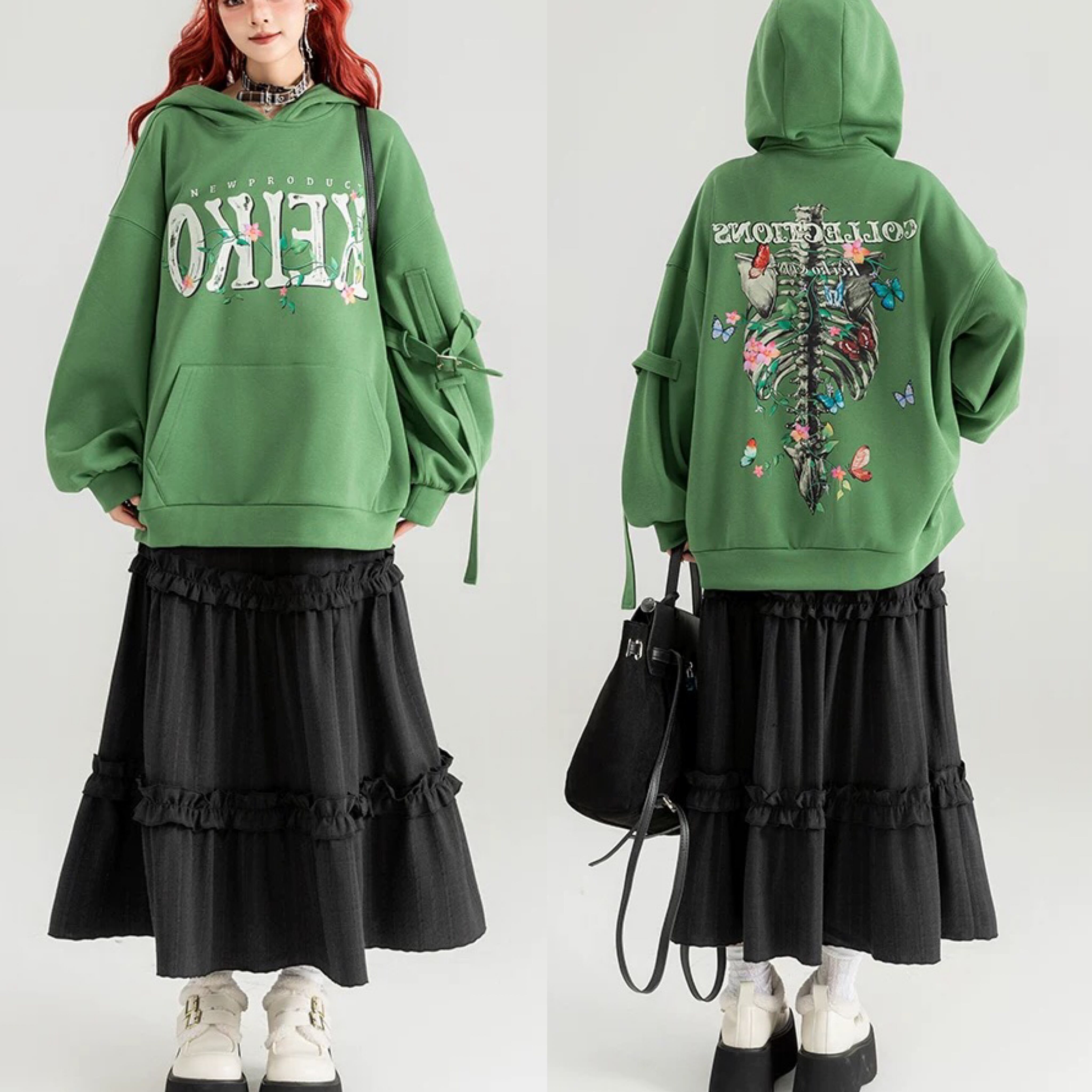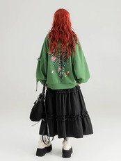 パーカー トレーナー スウェット 花柄 フラワー グリーン 緑 カジュアル トレーナー