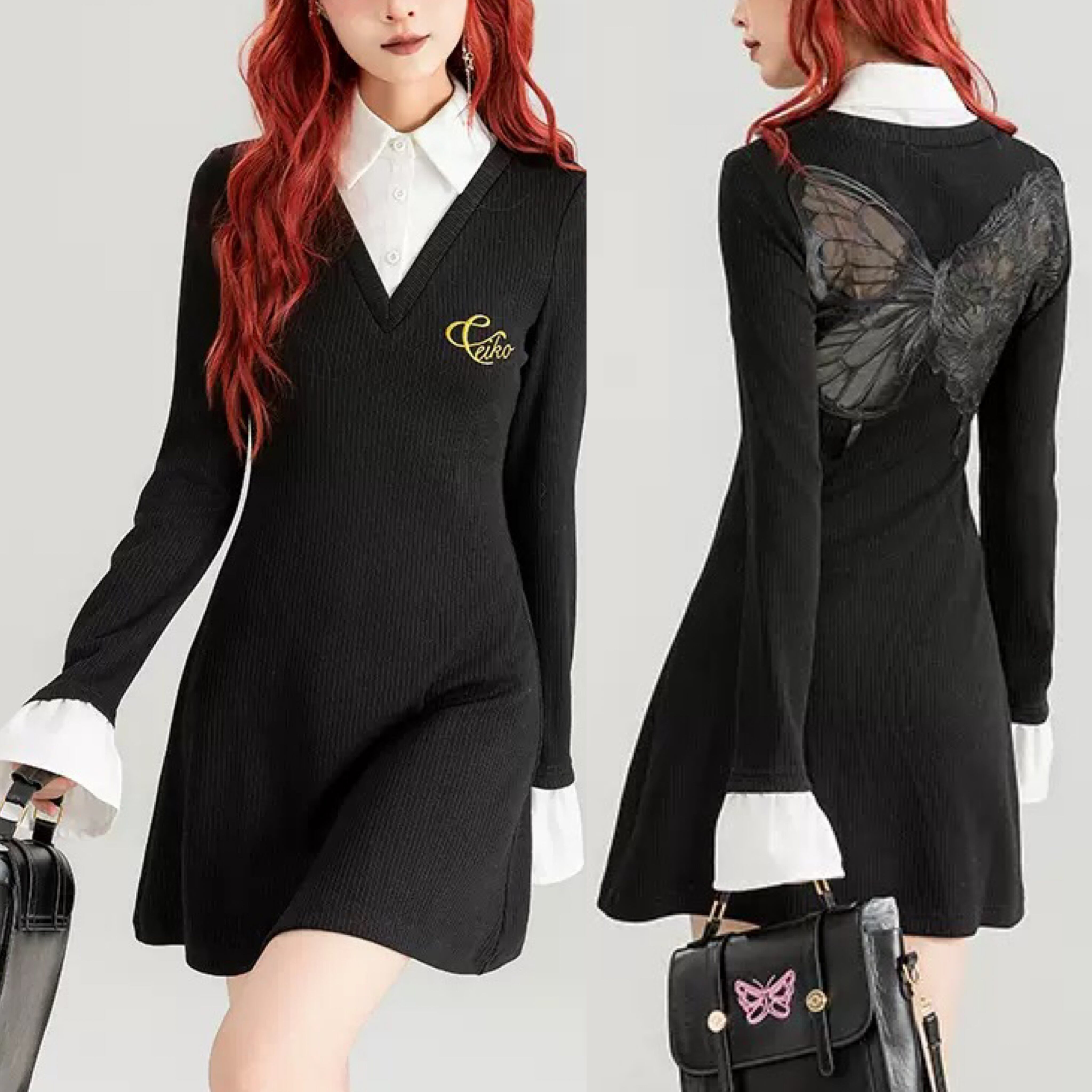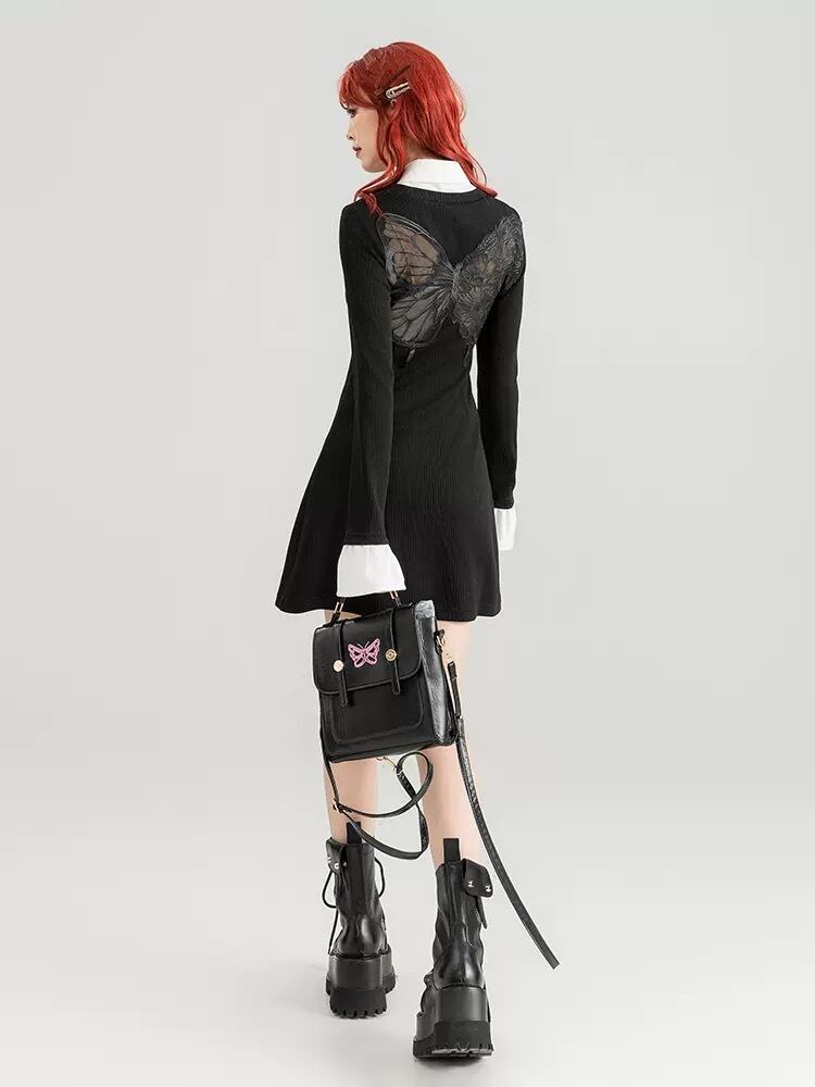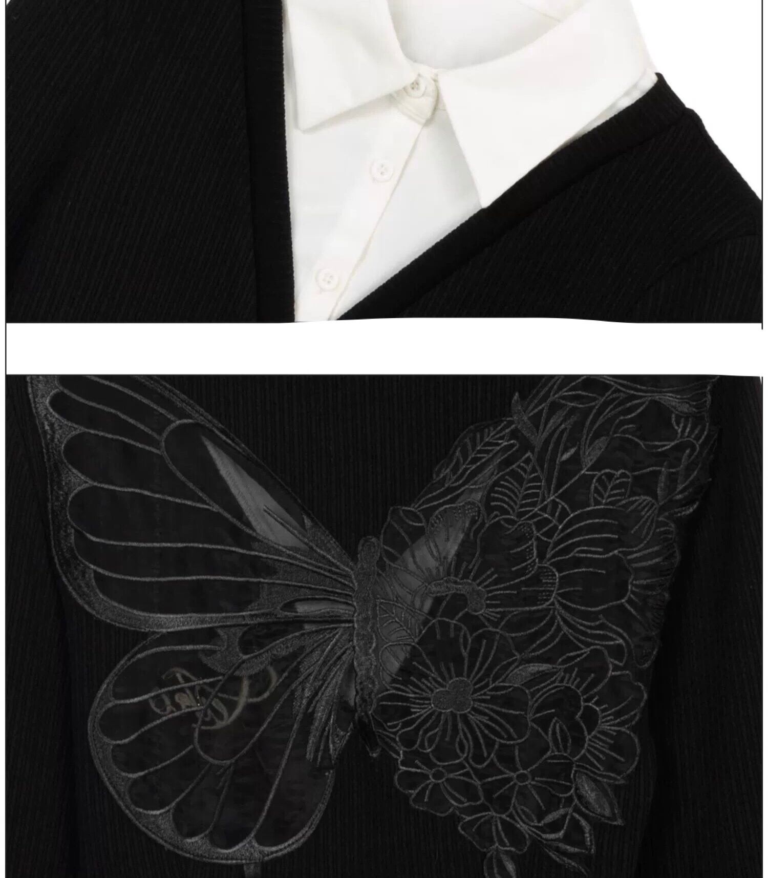ワンピース 黒 ブラウス バタフライ XL 蝶々 ニット ゆったり カジュアル 原宿