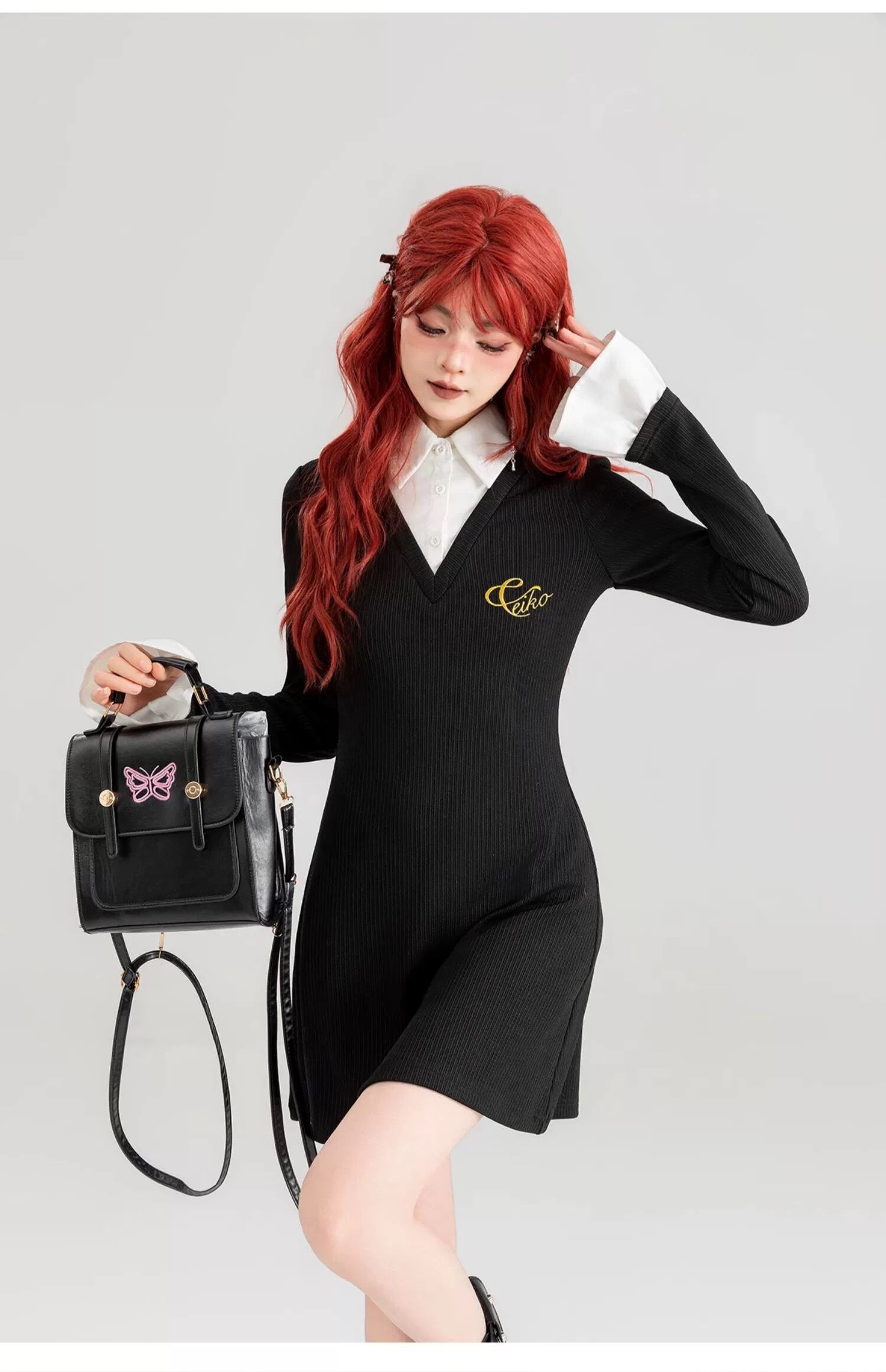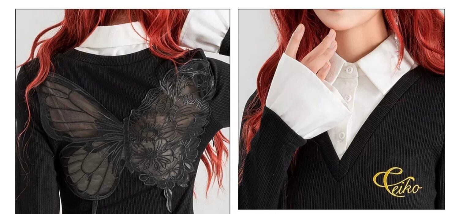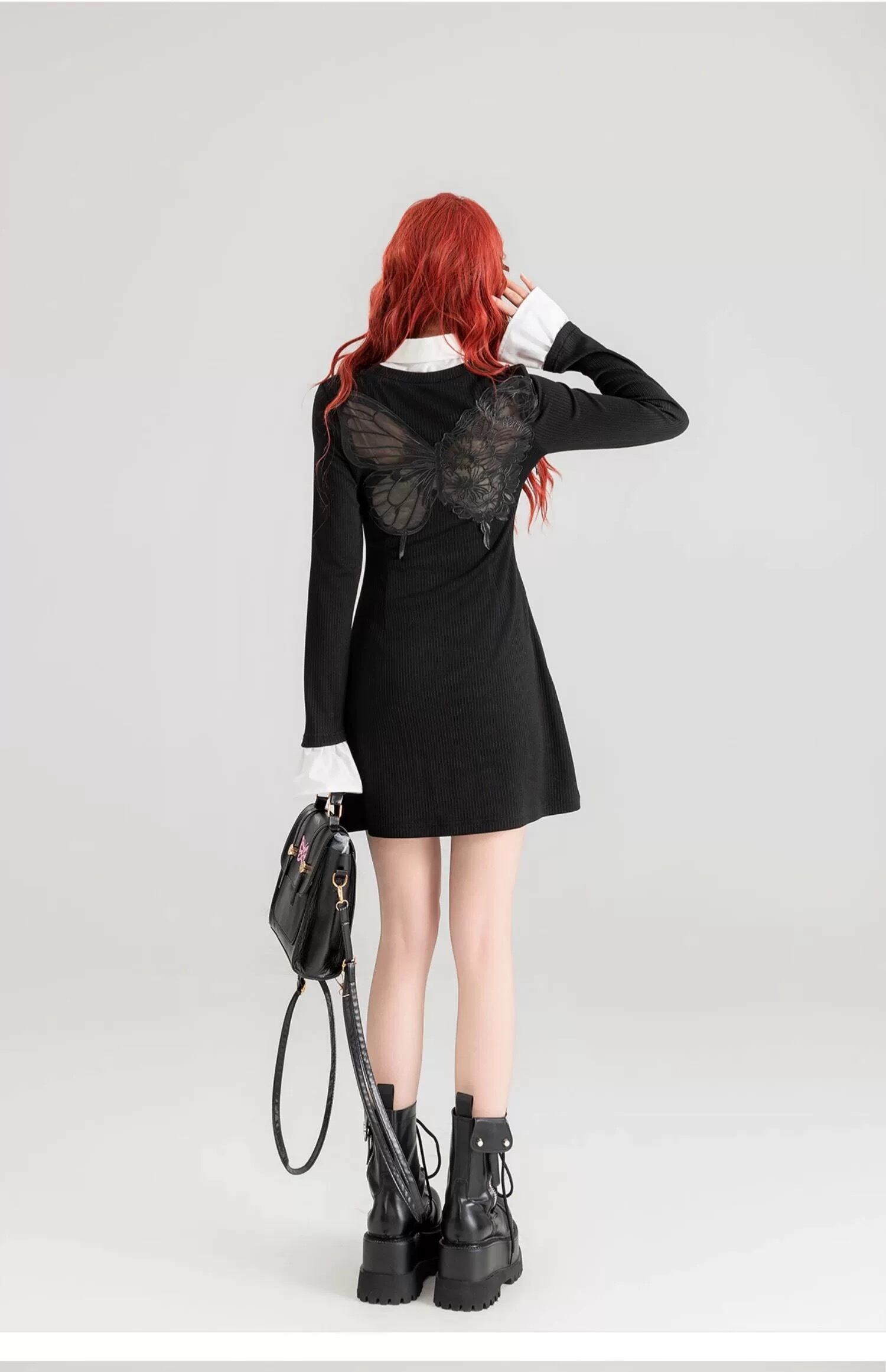 ワンピース 黒 ブラウス バタフライ XL 蝶々 ニット ゆったり カジュアル 原宿