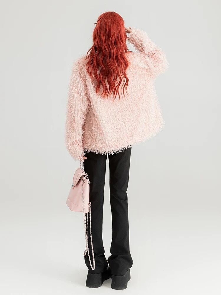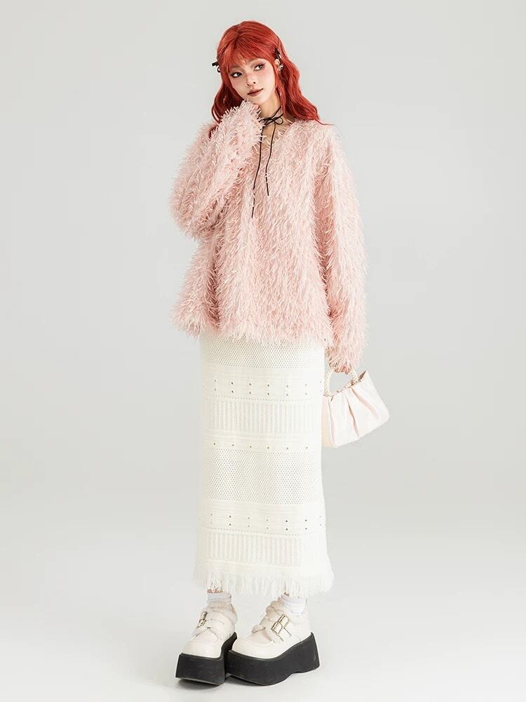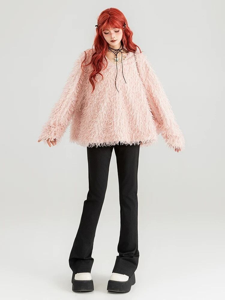 ブラウス トップス カジュアル スウェット セーター オレンジ ピンク ニット