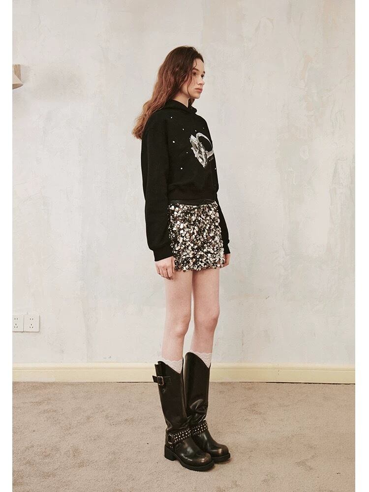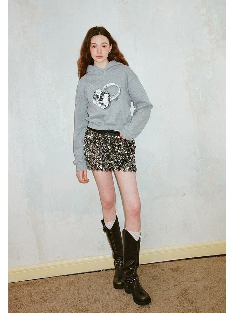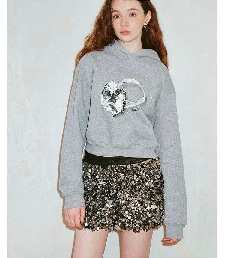 パーカー トレーナー 黒 グレー ジュエリー 宝石 指輪 ダイヤ キラキラ スウェット トレーナー