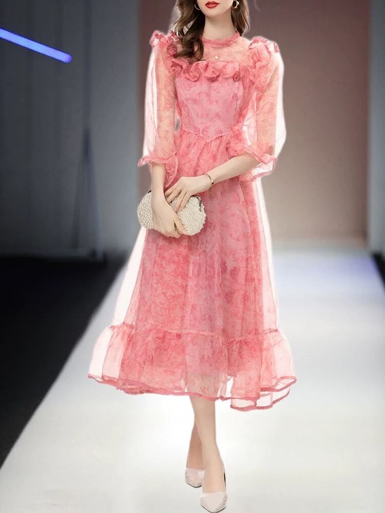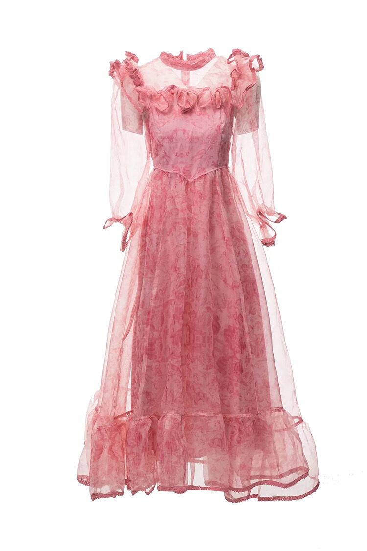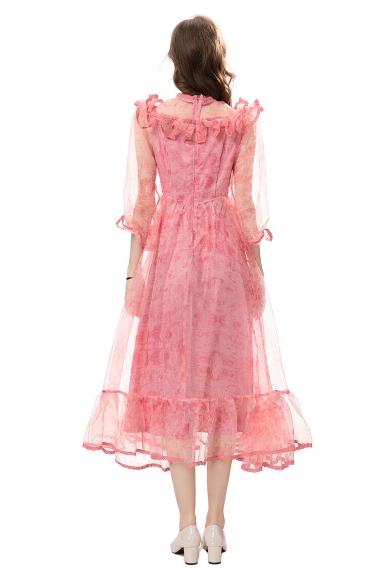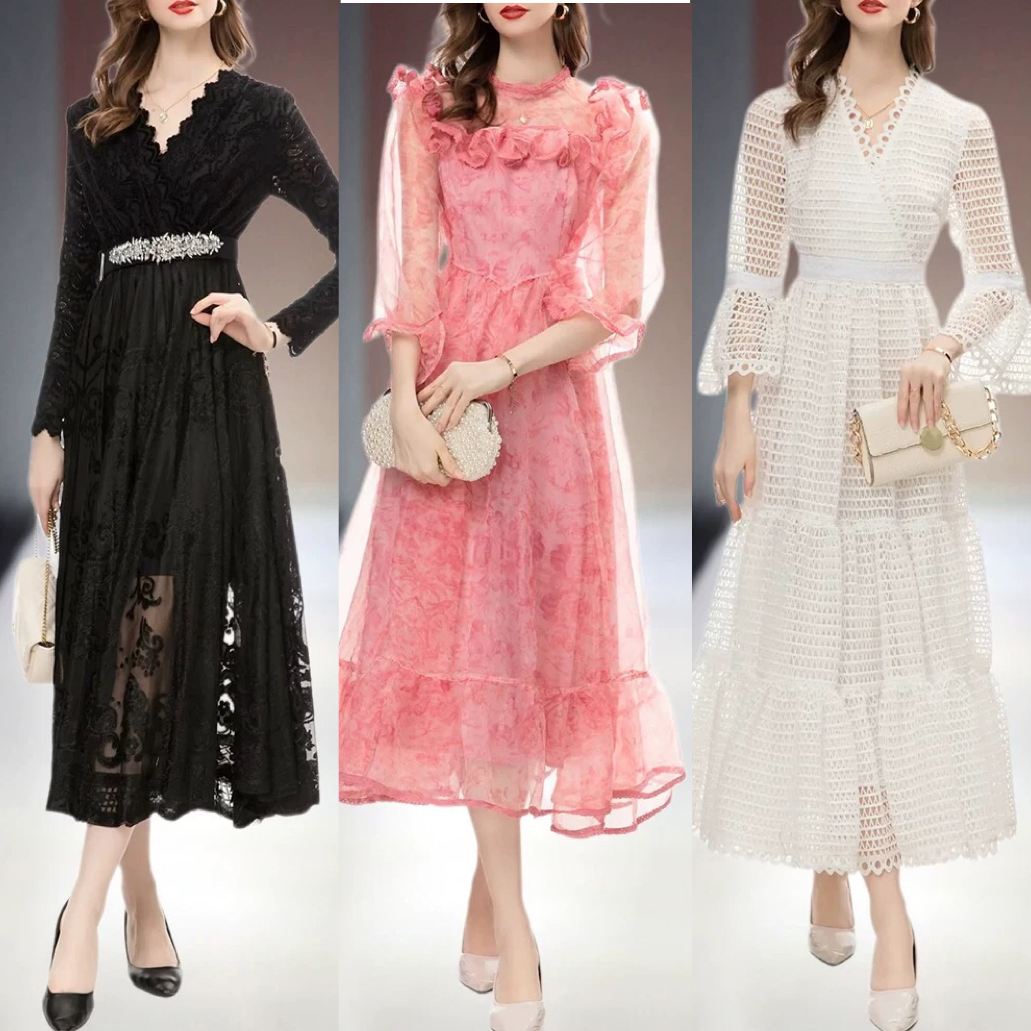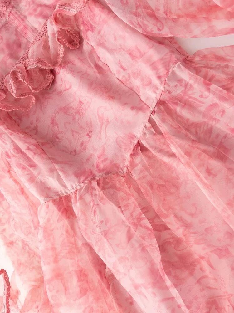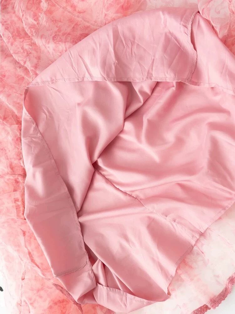 ワンピース 白 メッシュ XL ピンク フラワー ブラウス ラインストーン 黒