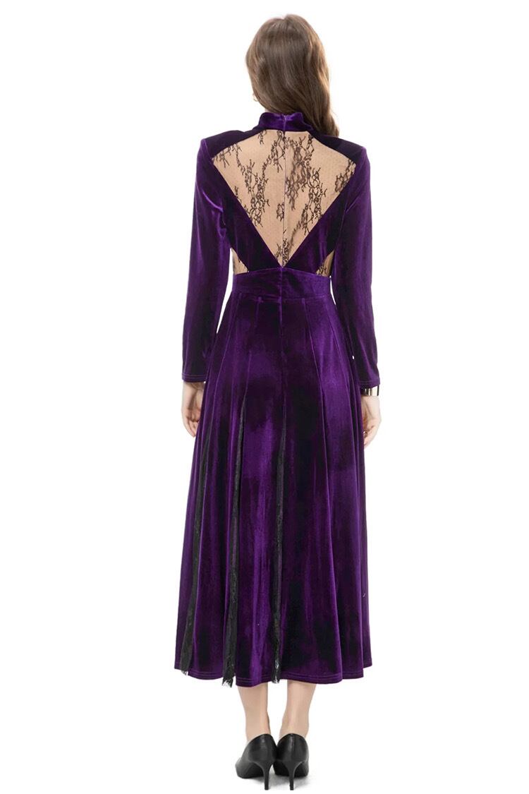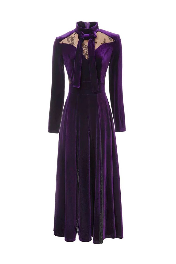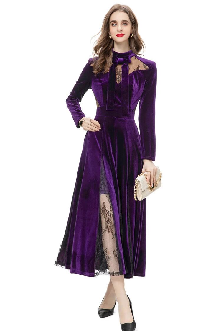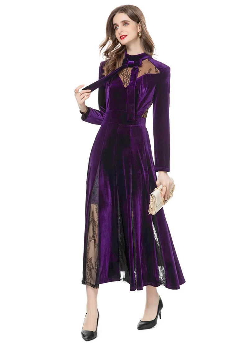 紫 黒 リボン ベージュ レース エレガント プリーツ スカート ワンピース ドレス XL