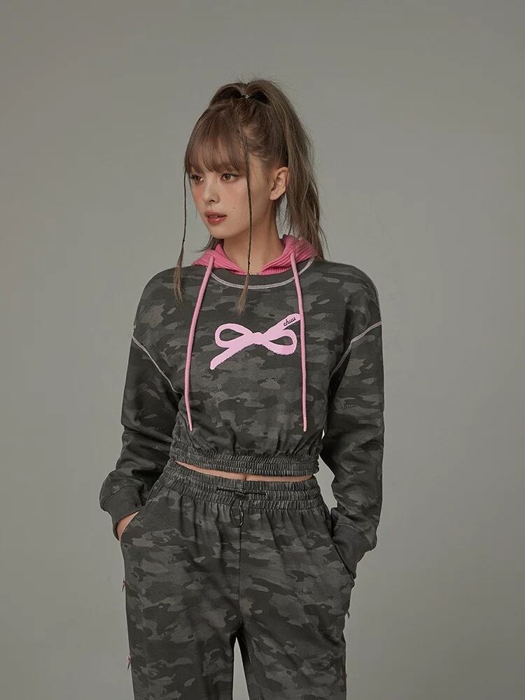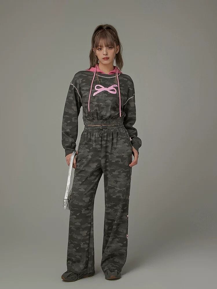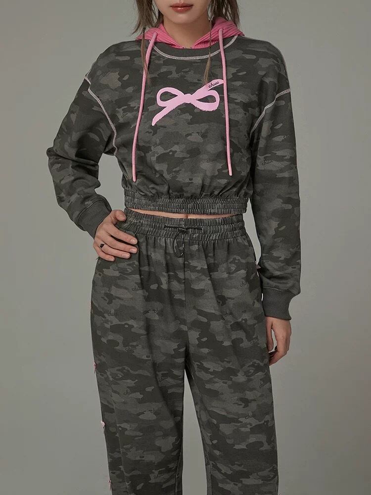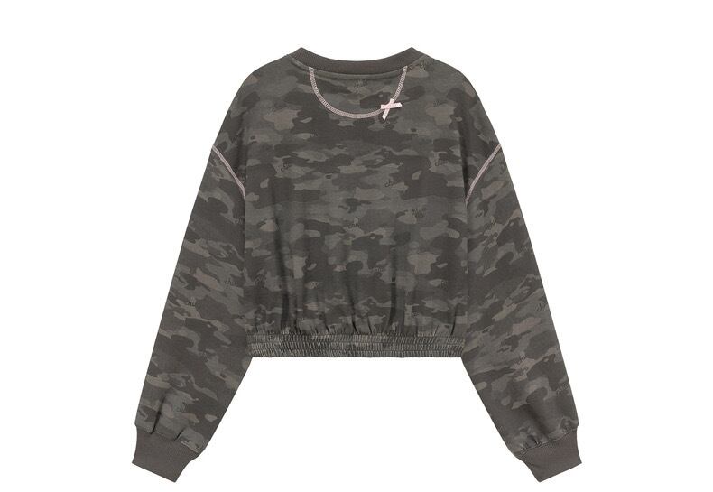 迷彩 カモフラージュ 緑 ピンク リボン スウェット トレーナー カジュアル ジム 運動 ジョギング