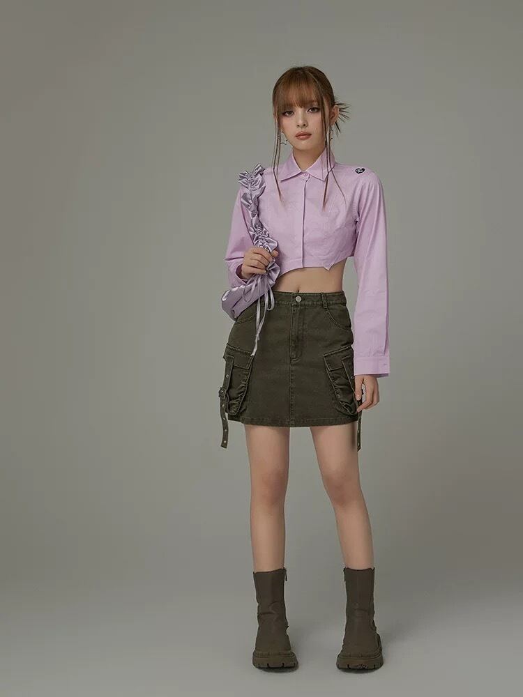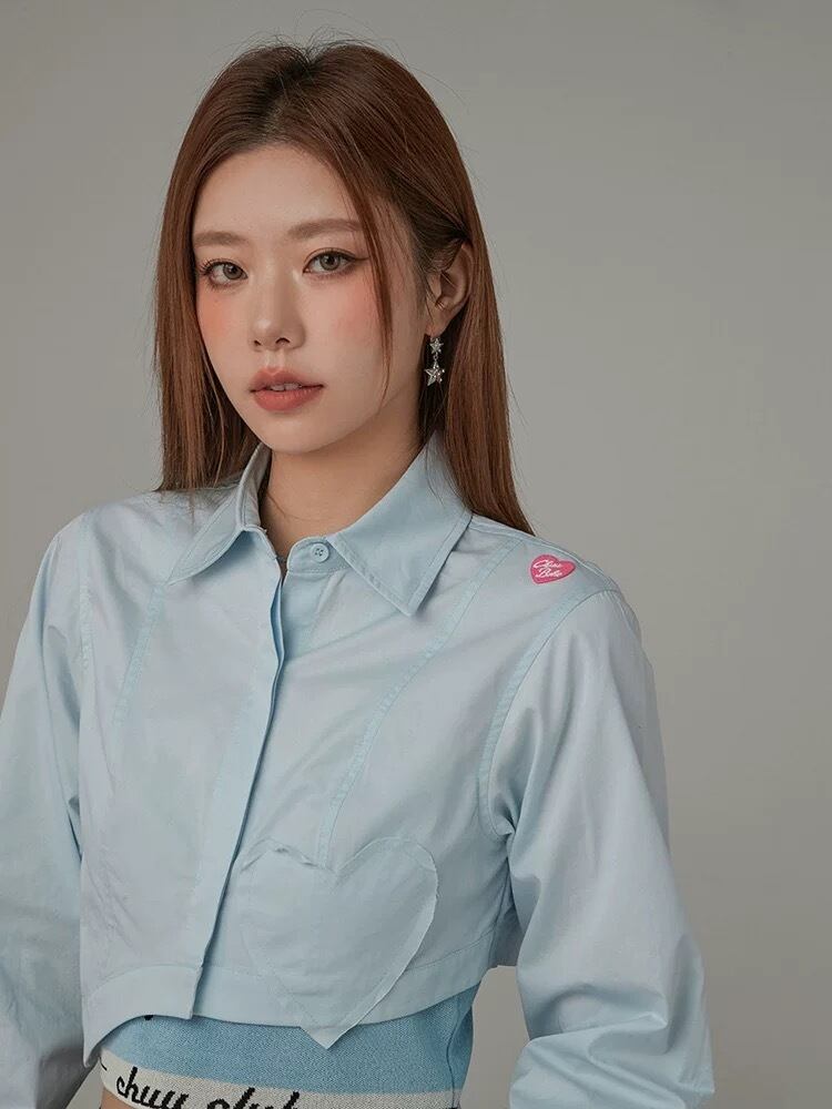 ピンク 水色 ブラウス トップス シャツ ハート カジュアル Y2K ダンス