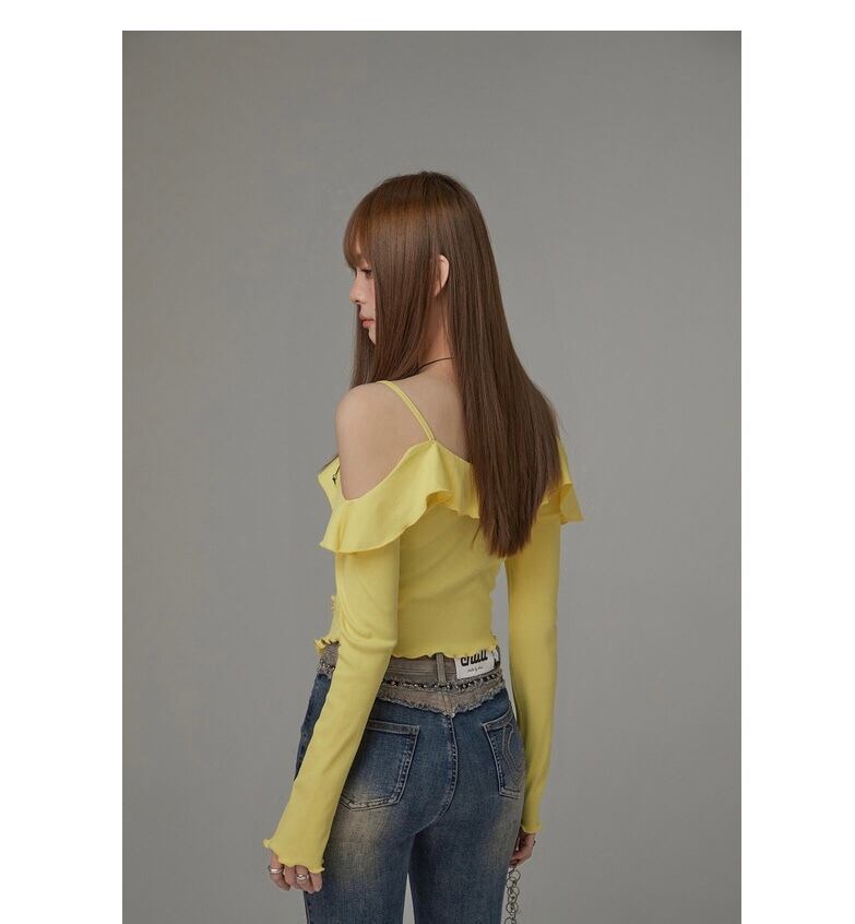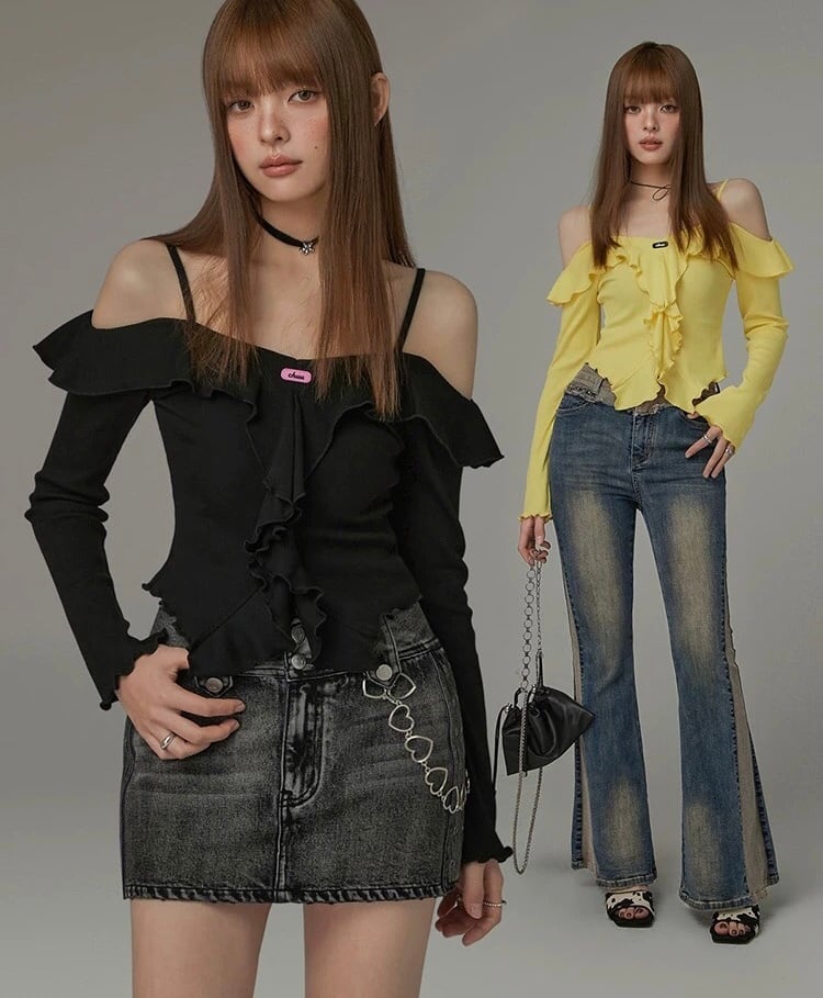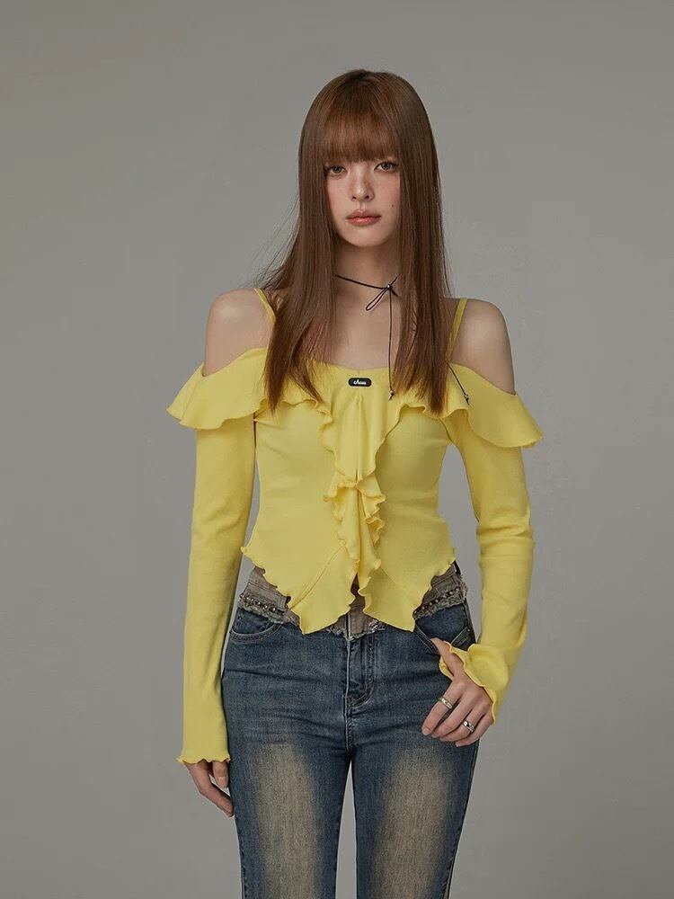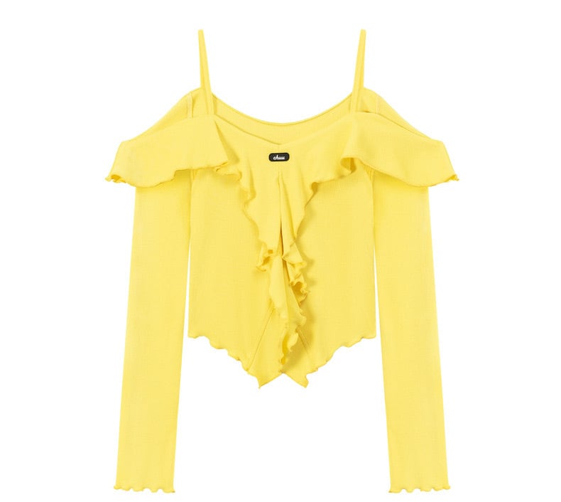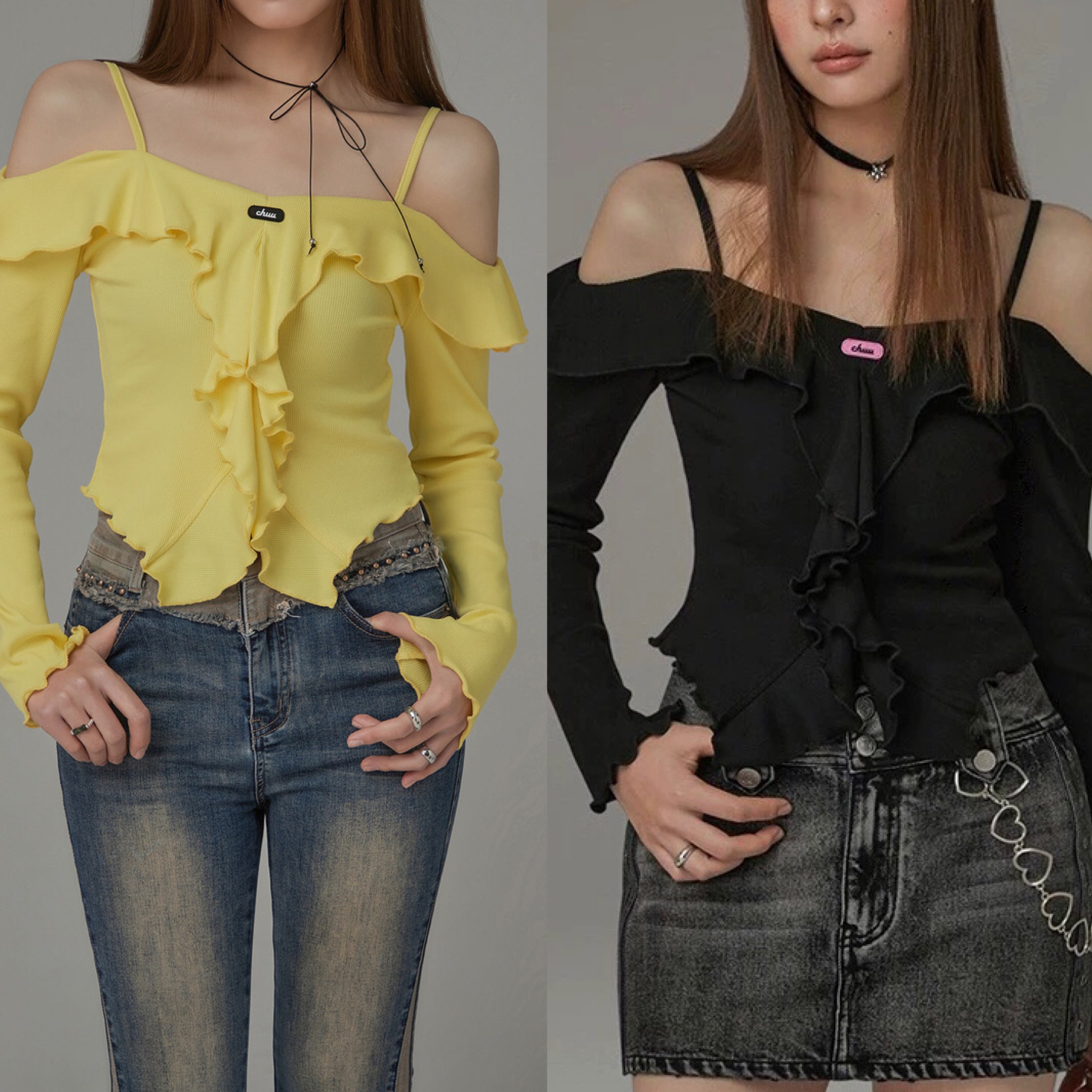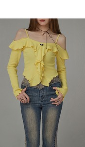 オフショルダー 黒 黄色 ブラウス キャミソール 可愛い ガーリー トップス キャミソール ブラウス