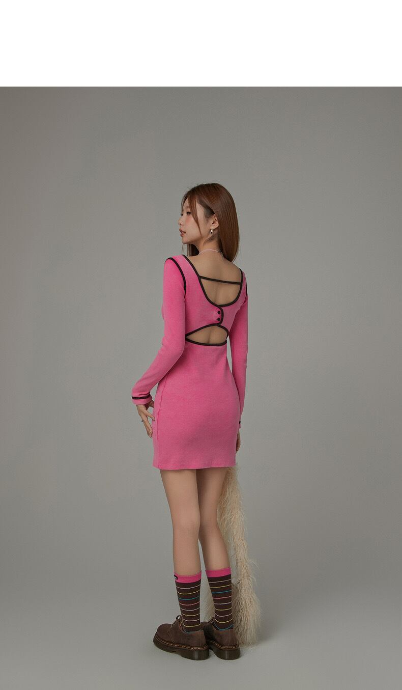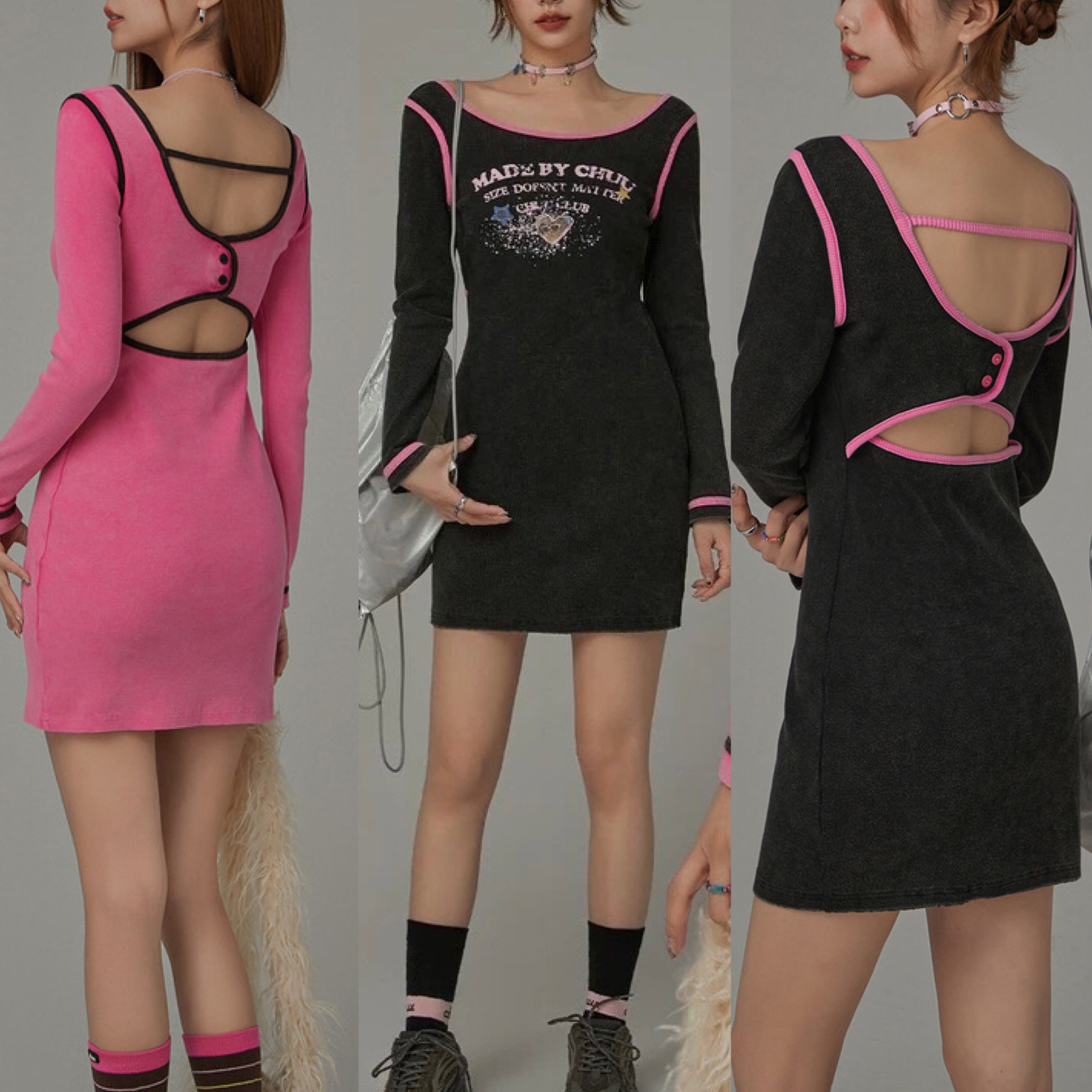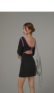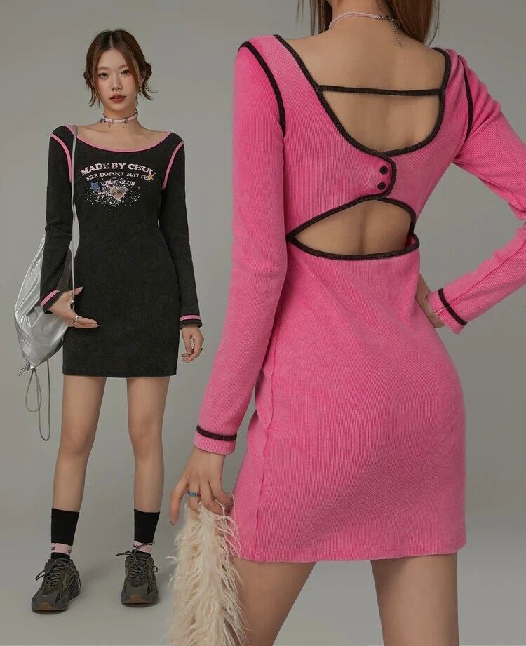 カジュアル 背中 ワンピース スウェット 黒 グレー ピンク Tシャツ カジュアル