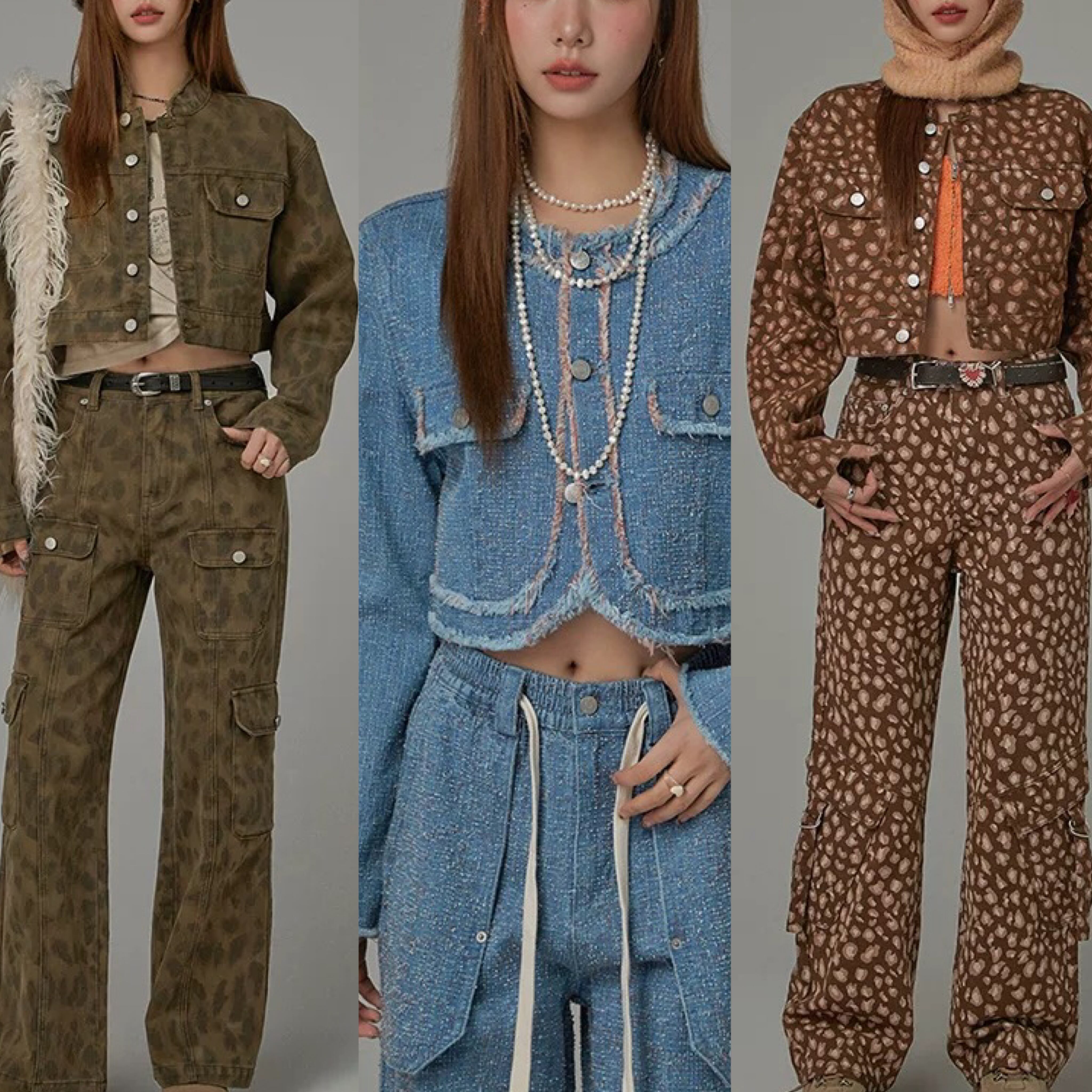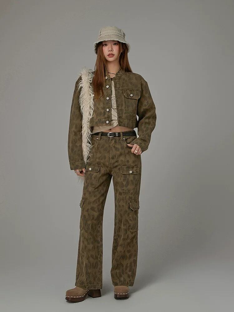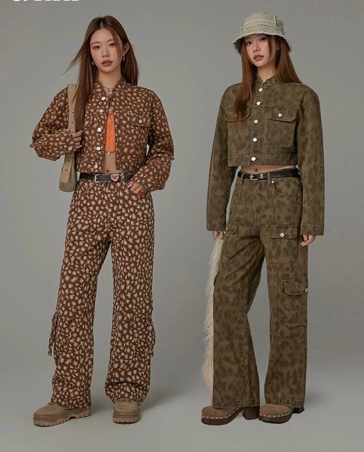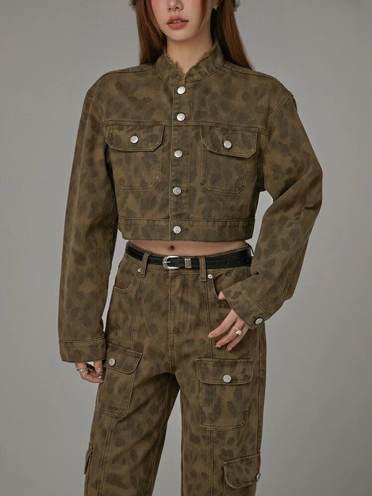 ジャケット 茶色 レオパード ヒョウ柄 デニム 水色 カーディガン トップス アウター コート