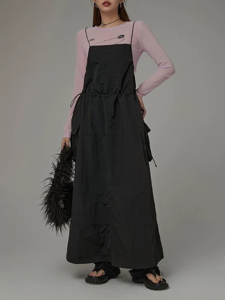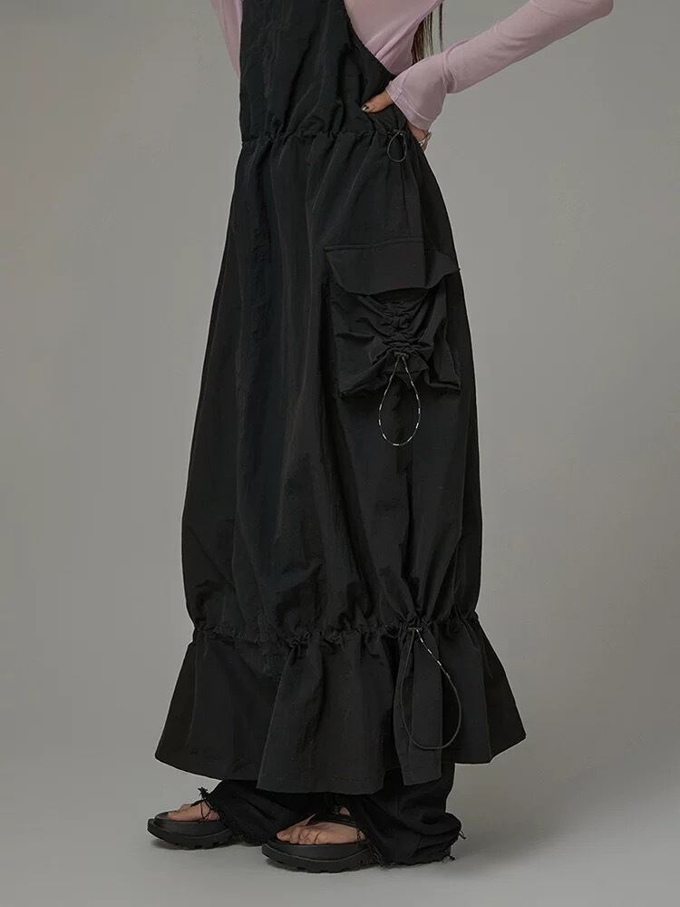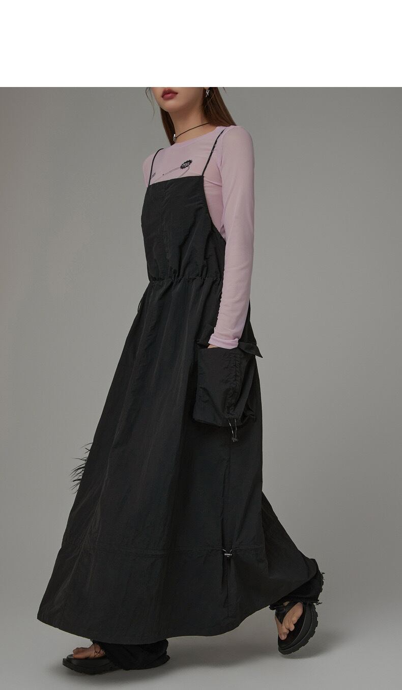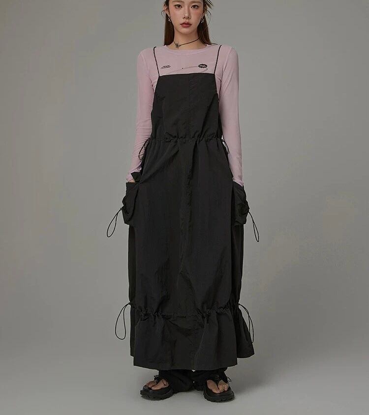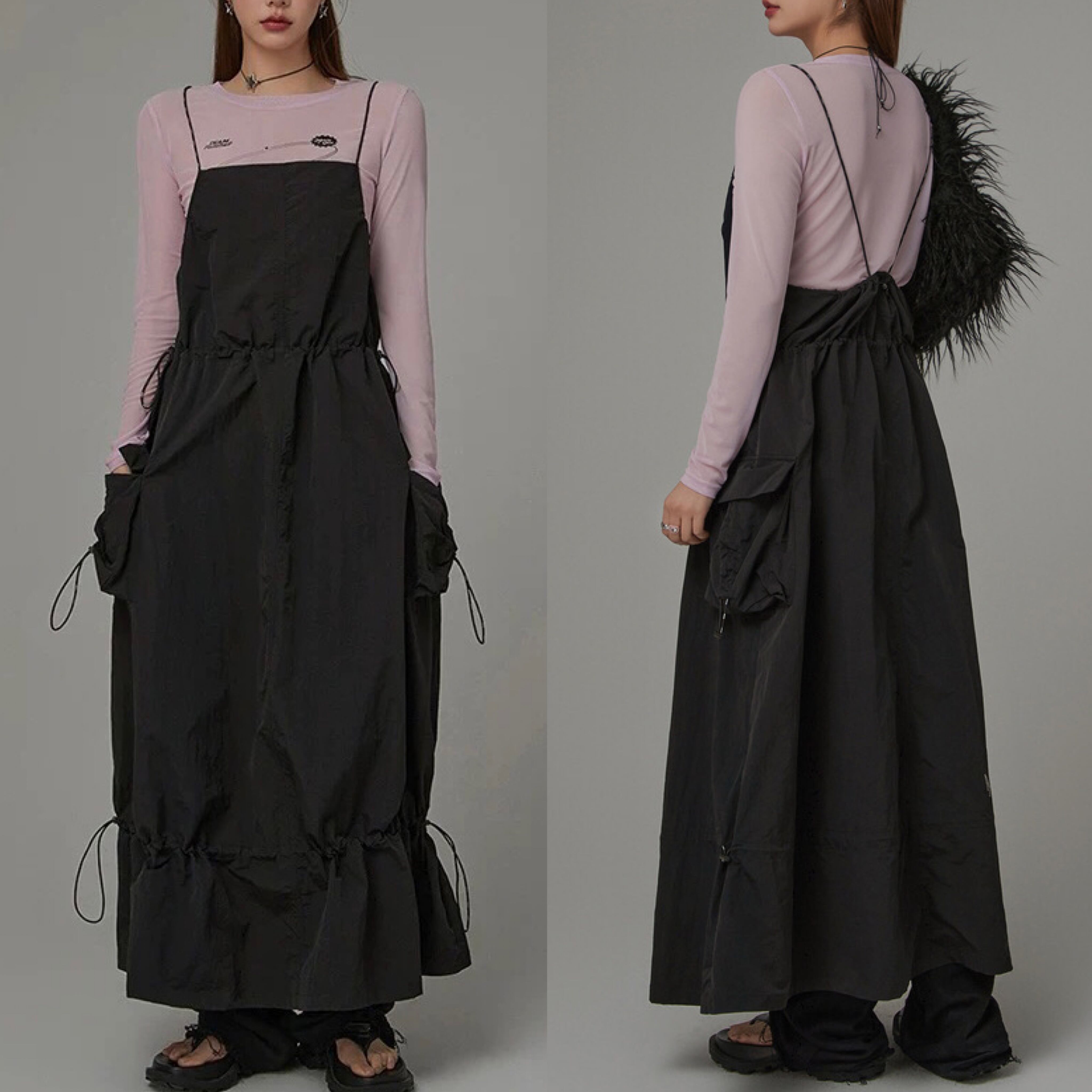 ワンピース カジュアル ストリート シンプル 黒 ゆったり スカート