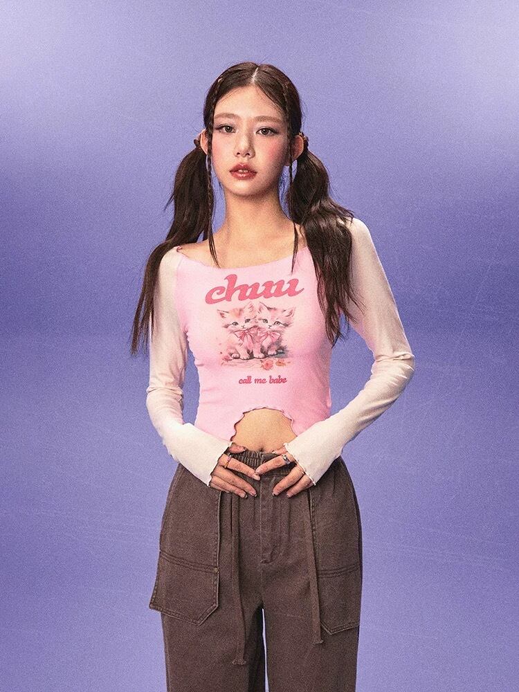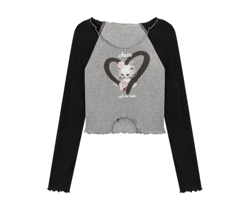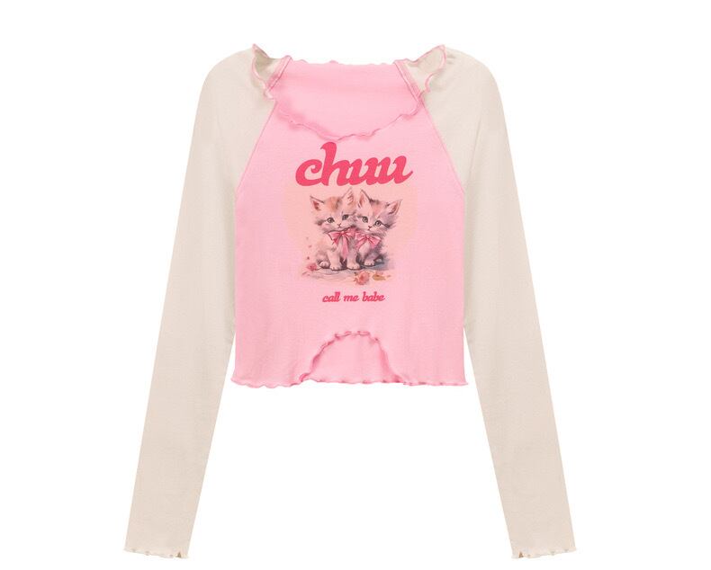 トップス カジュアル スウェット ねこ ピンク グレー ブラウス ベージュ 茶色 ロンT