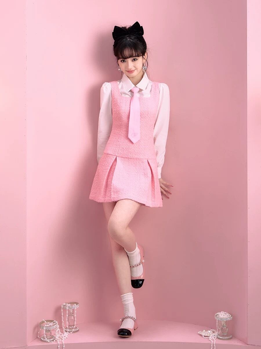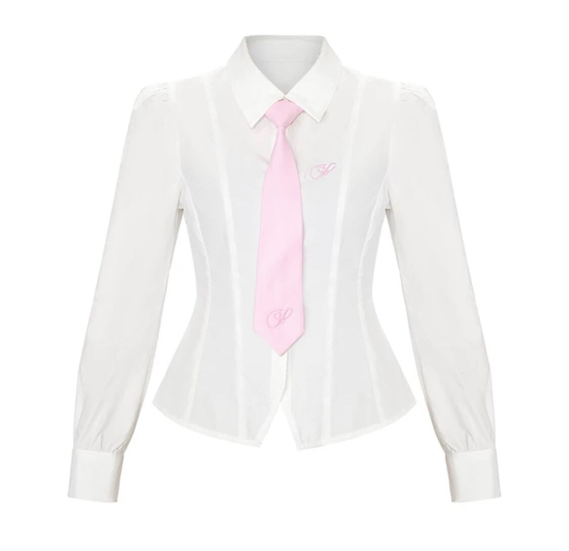【ブラウス】白 ホワイト トップス ネクタイ ピンク ガーリー 可愛い シャツ