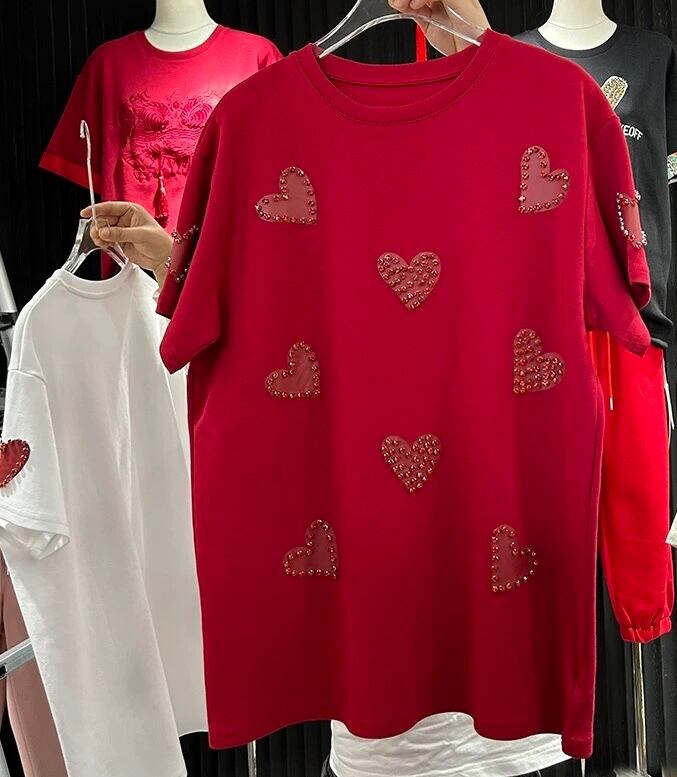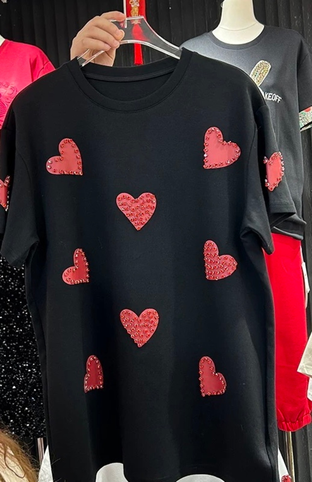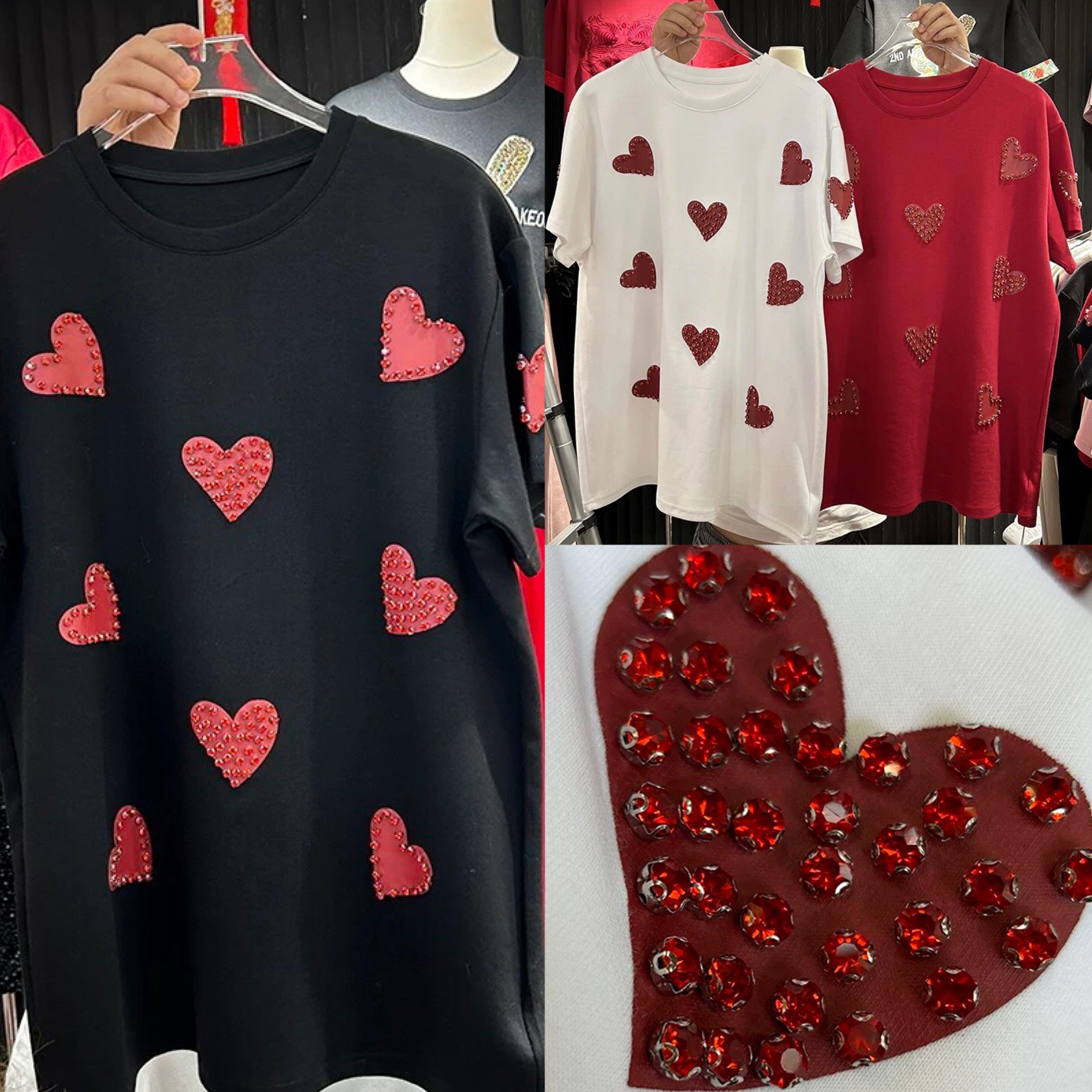 ハート 白 黒 デコレーション ラインストーン ガーリー 可愛い トップス