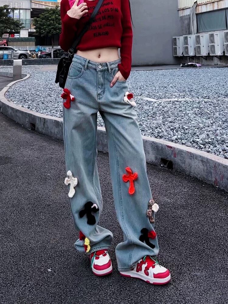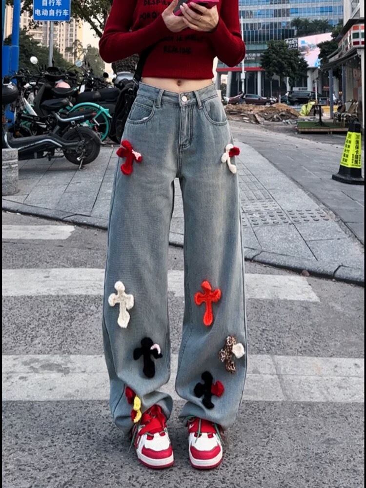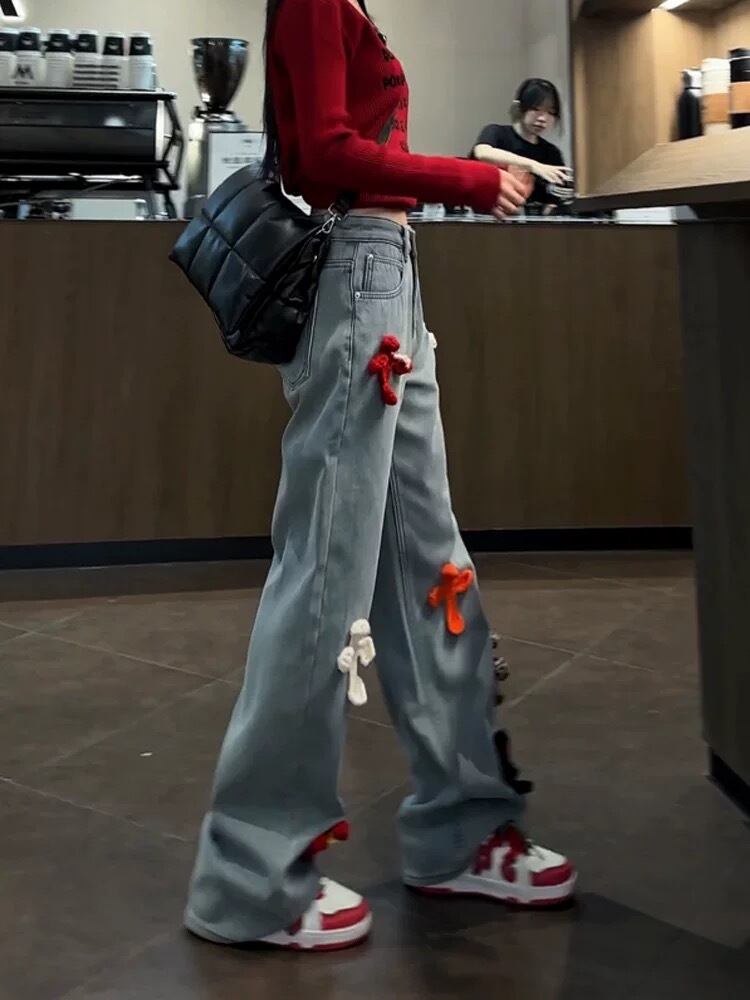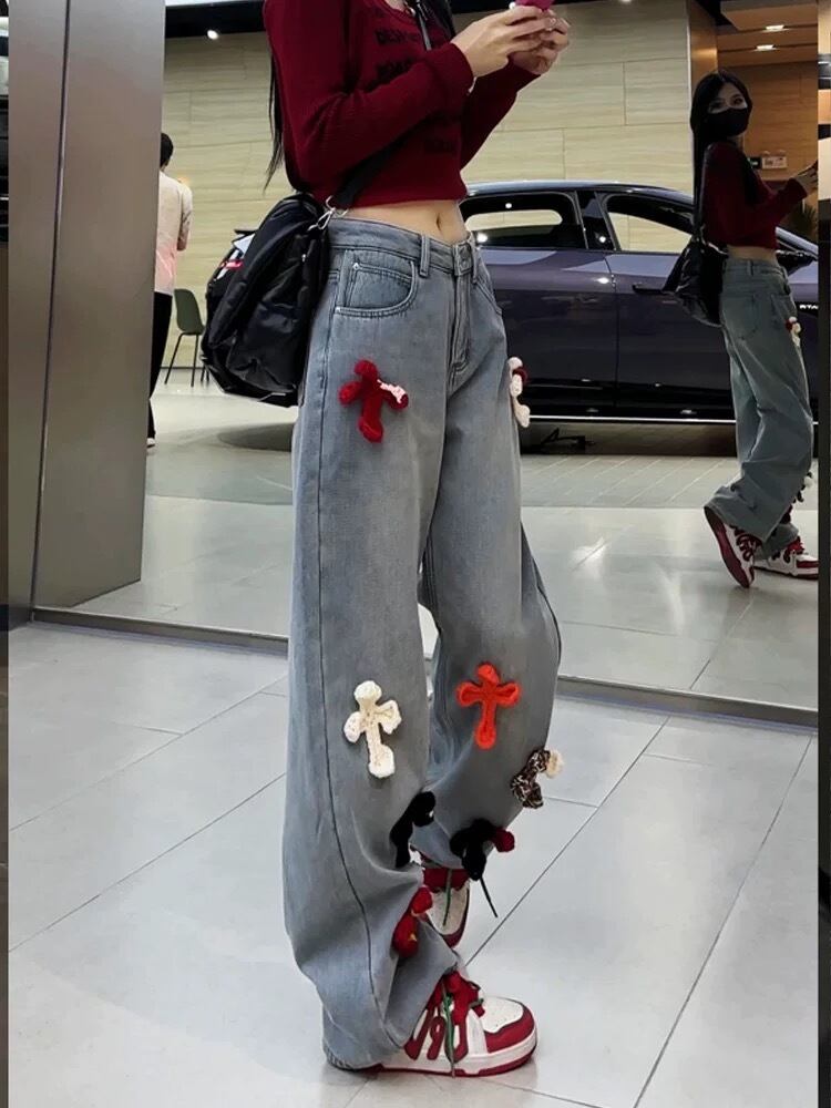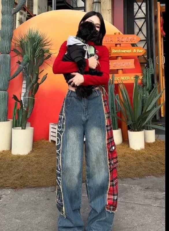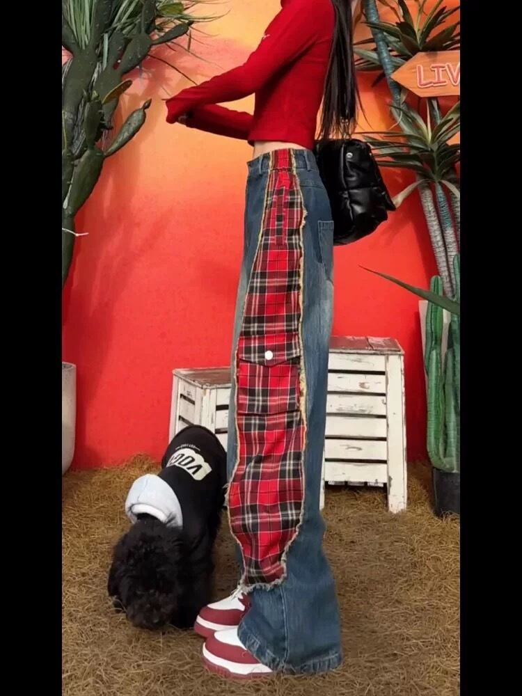 デニム ボトムス カジュアル XL チェック 赤 クロス ストリート