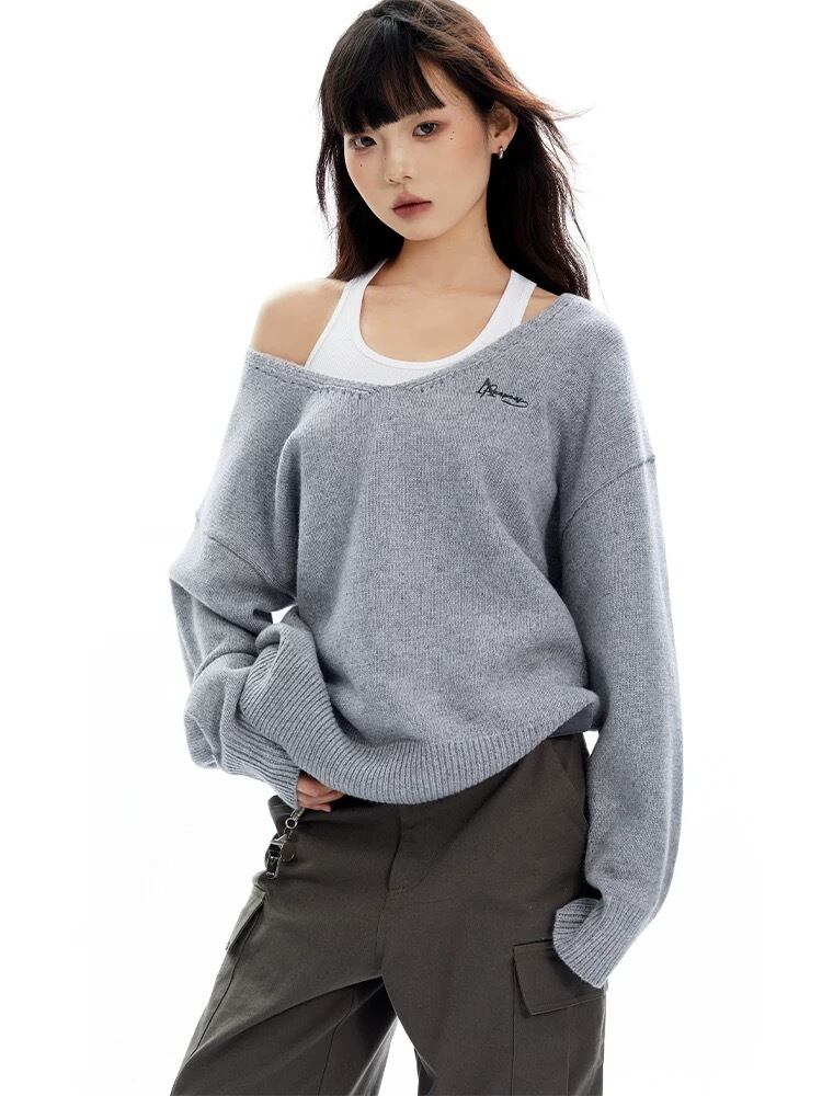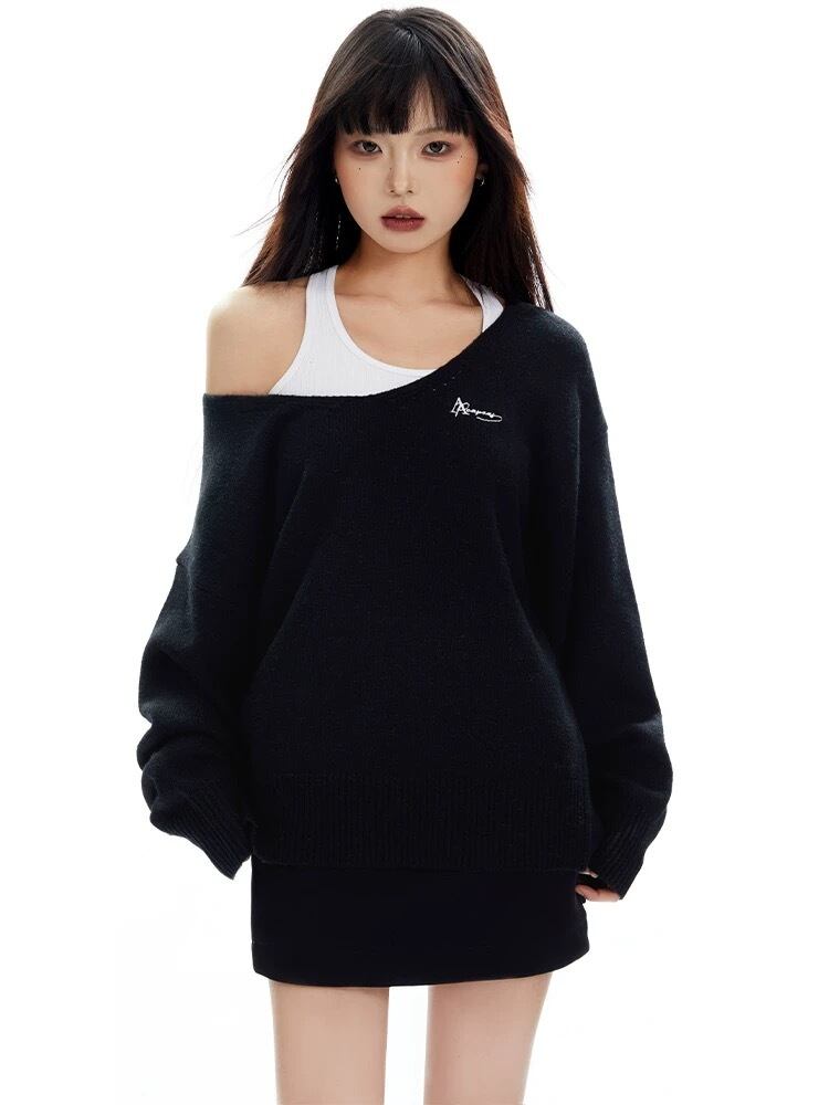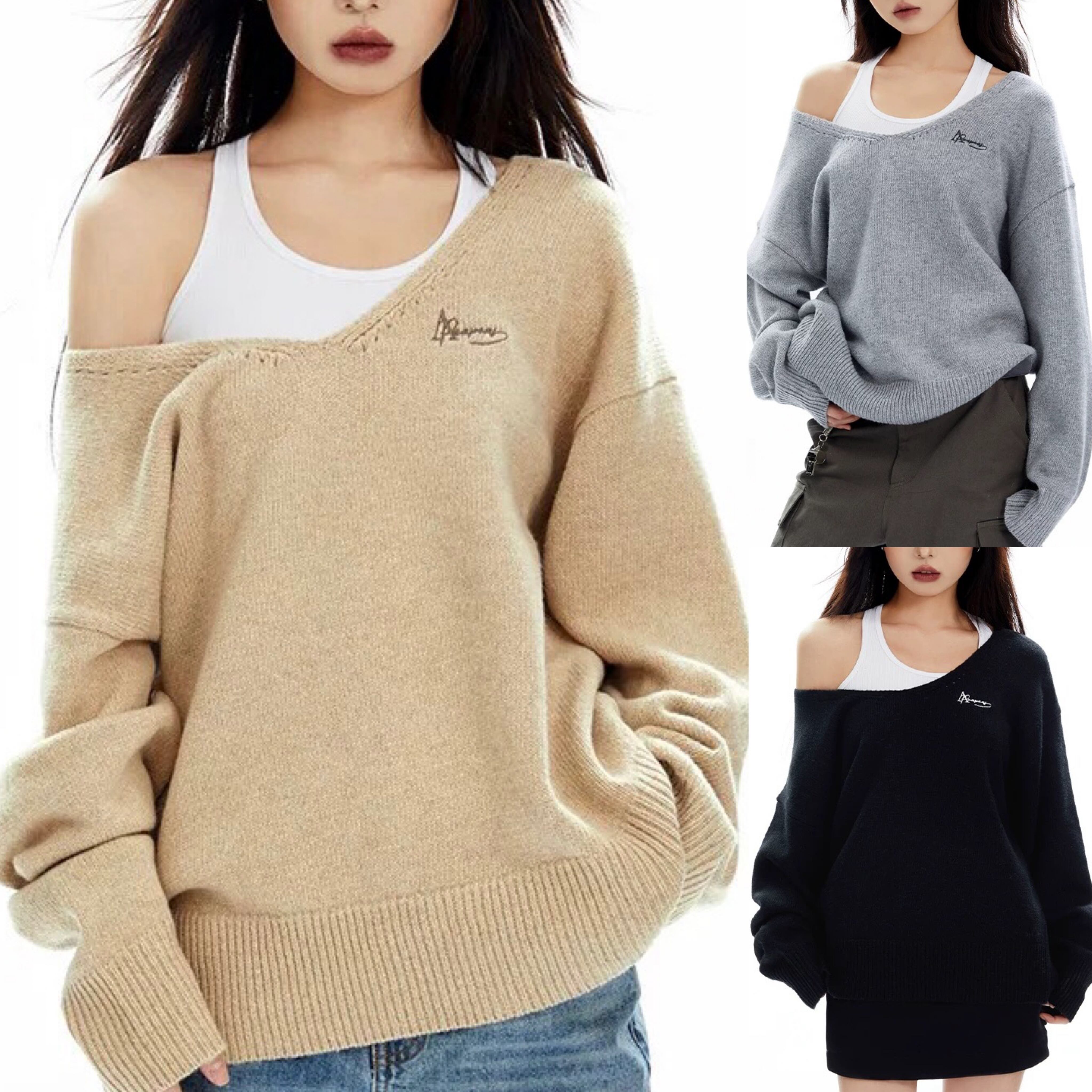 【セット】黒 ベージュ グレー オフショルダー カジュアル セーター カーディガン