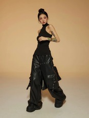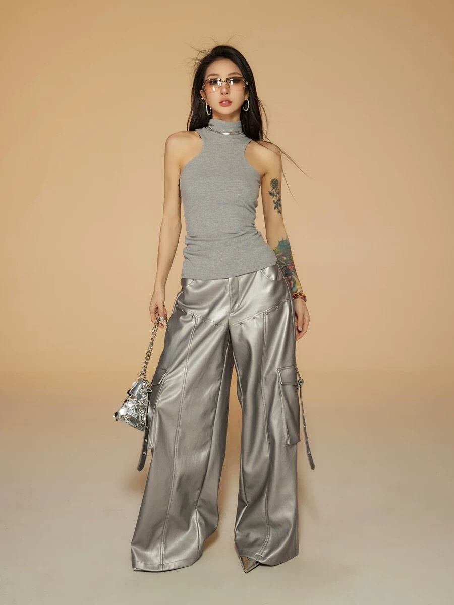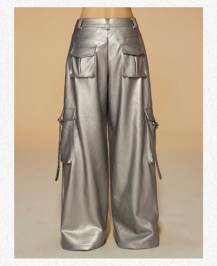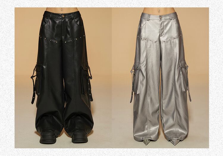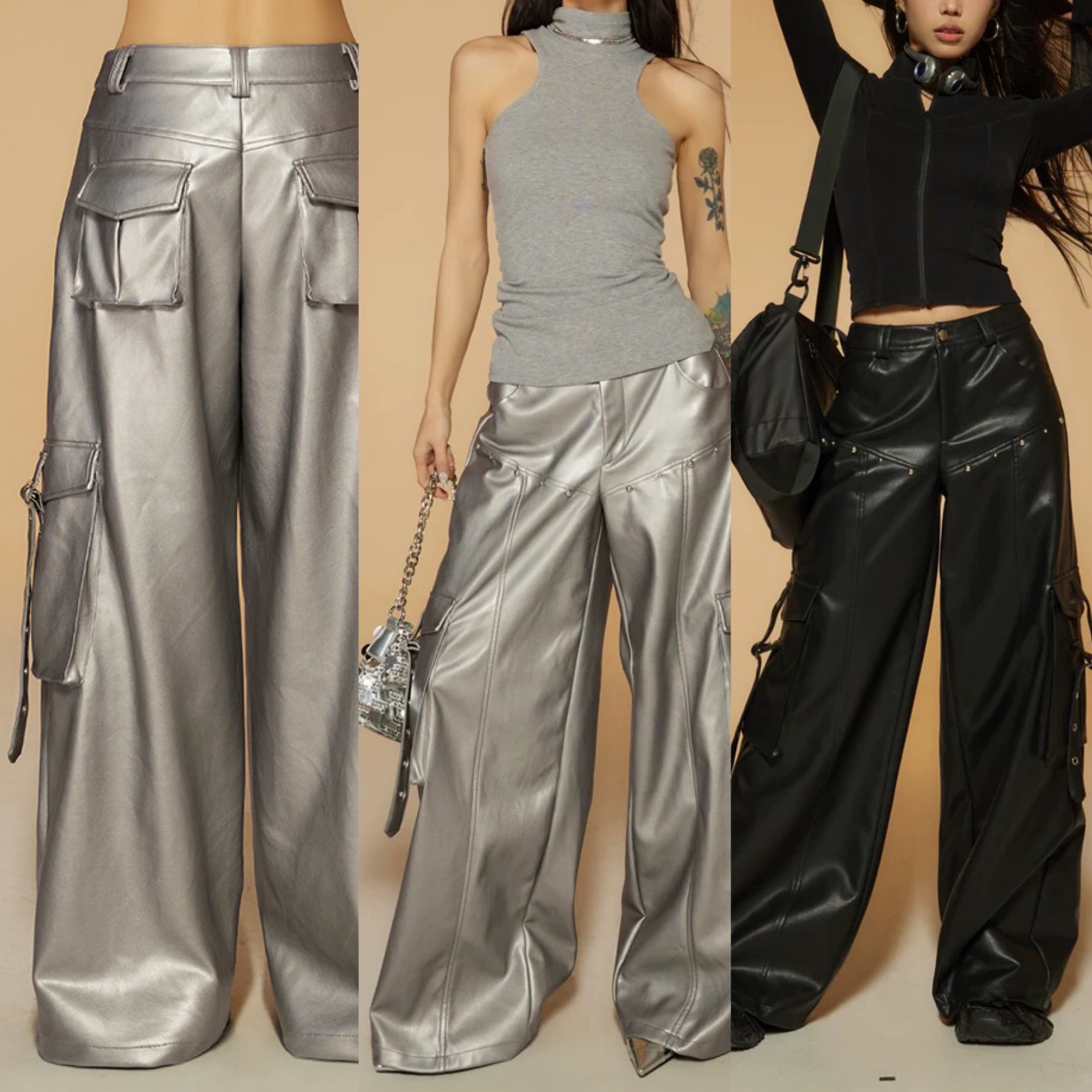 ボトムス パンツ シルバー 黒 太め ストレート ストリート