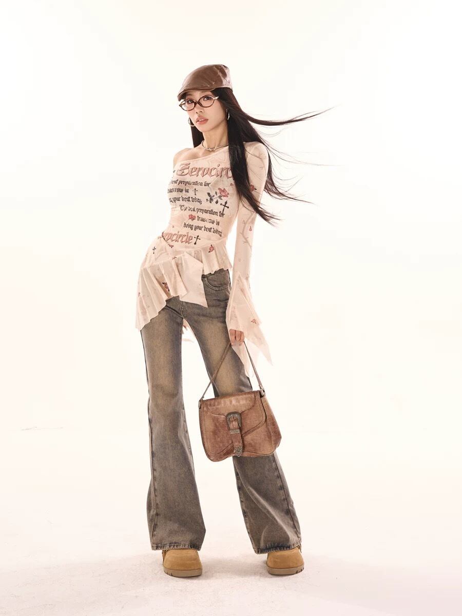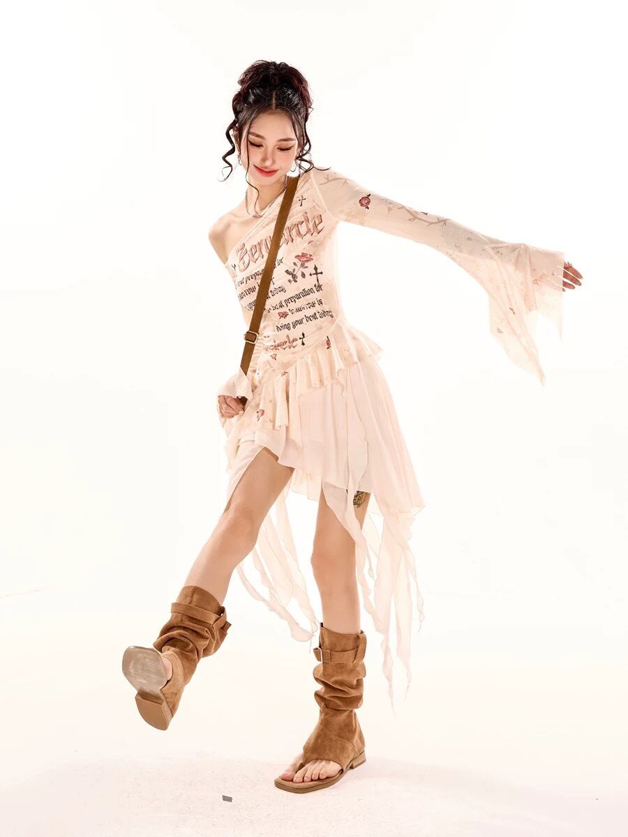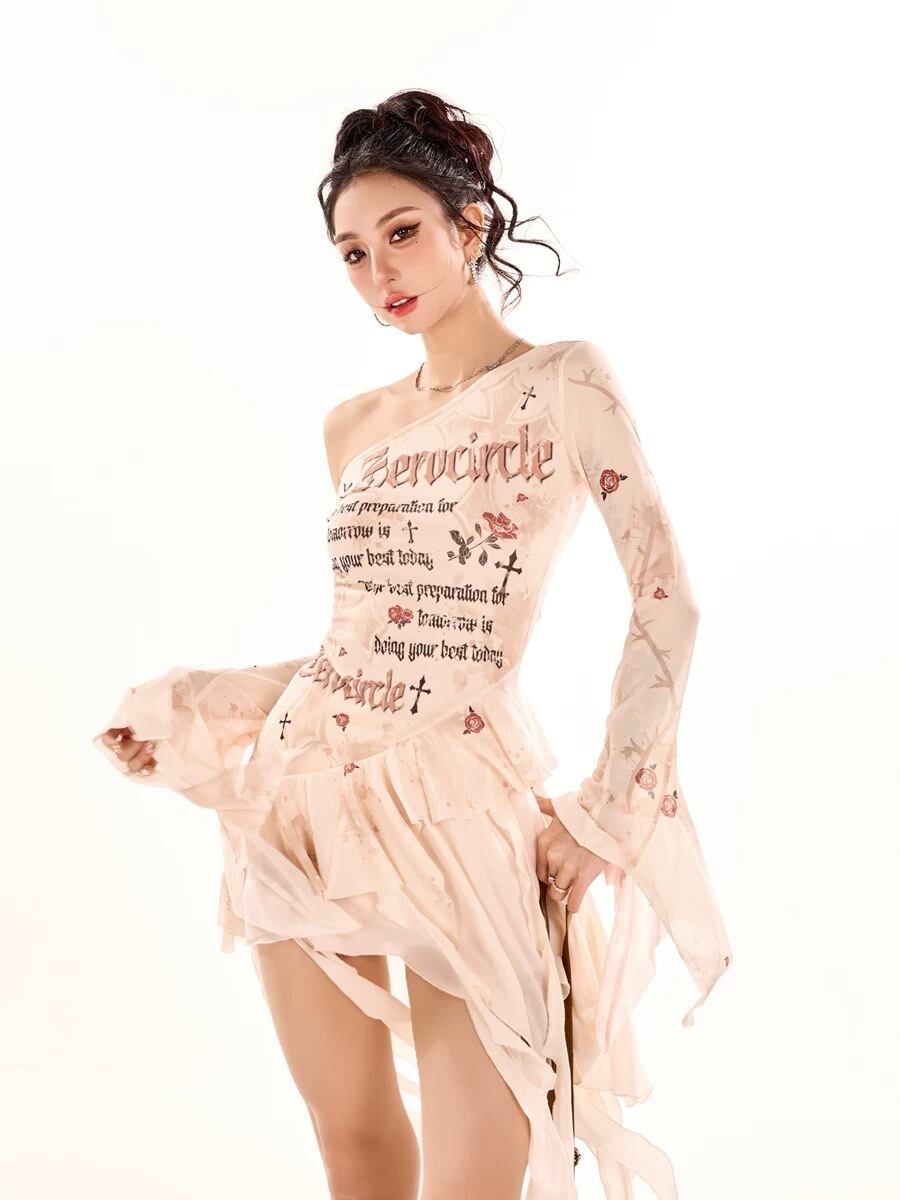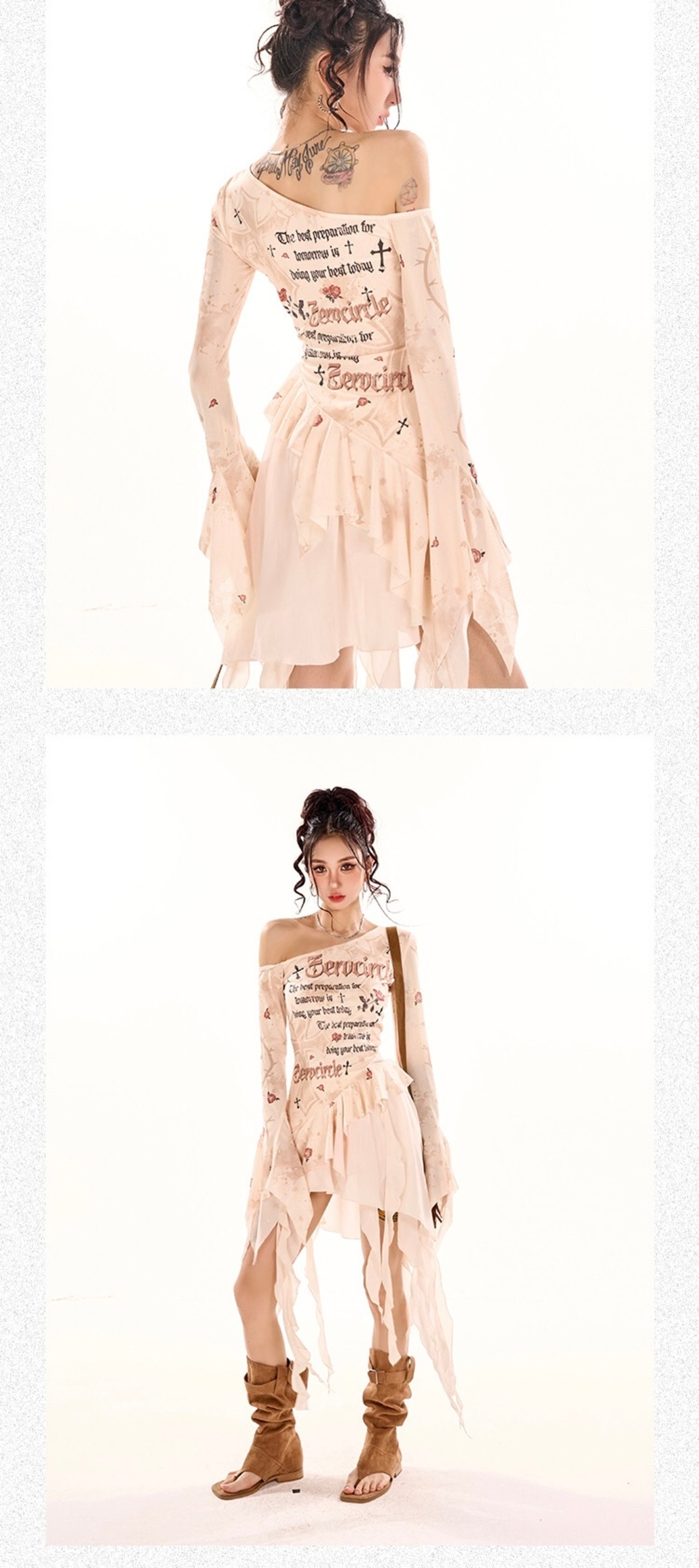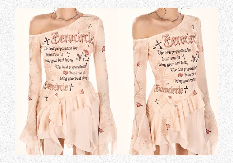 オフショルダー ベージュ 花柄 XL ブラウス トップス ガーリー ストリート カジュアル