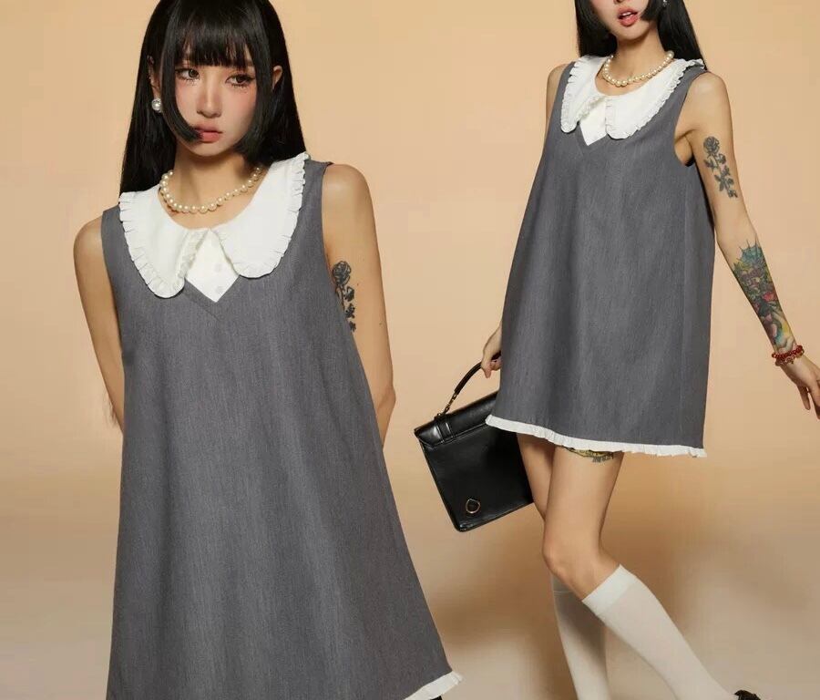 グレー ブラウス 丸襟 ワンピース スカート ガーリー 原宿