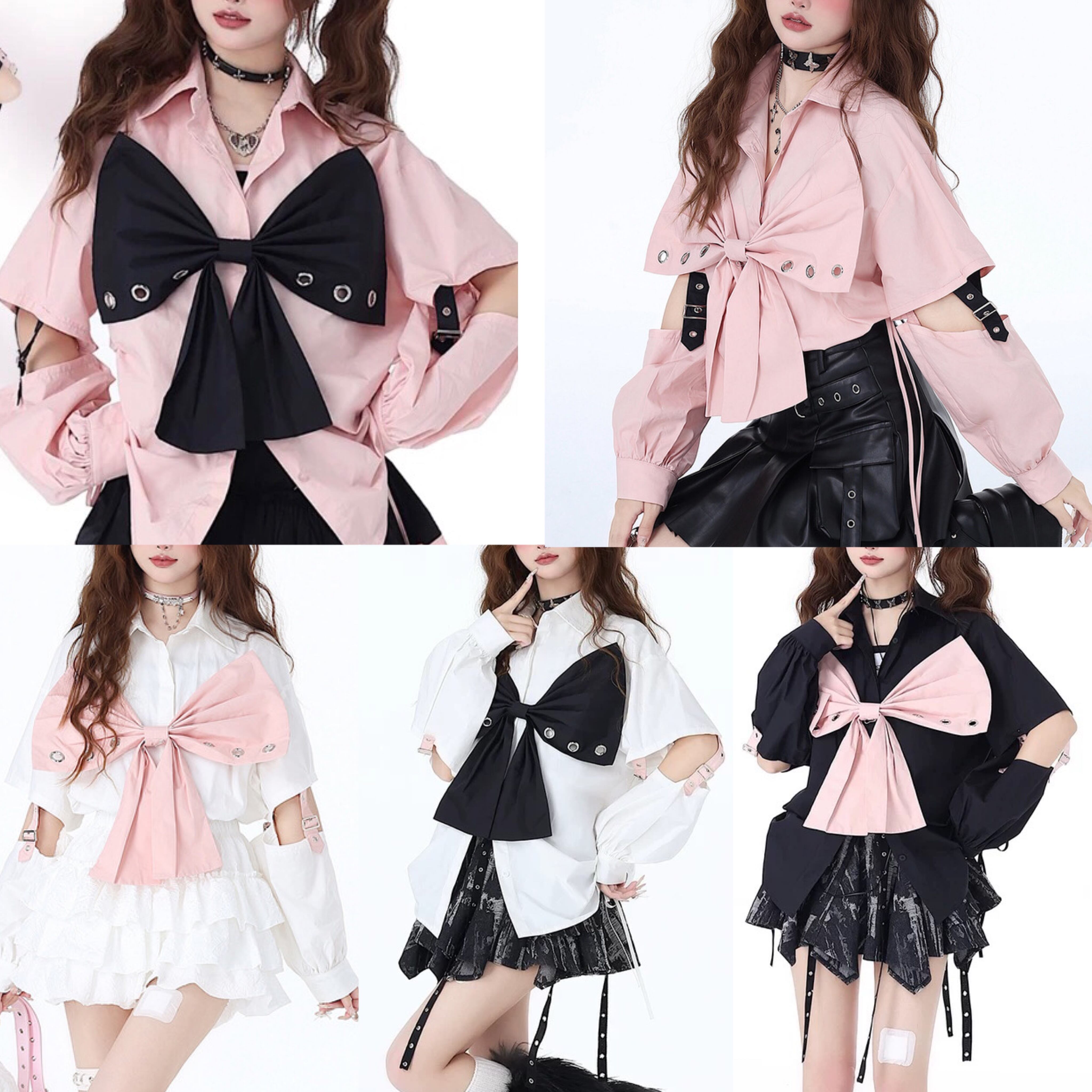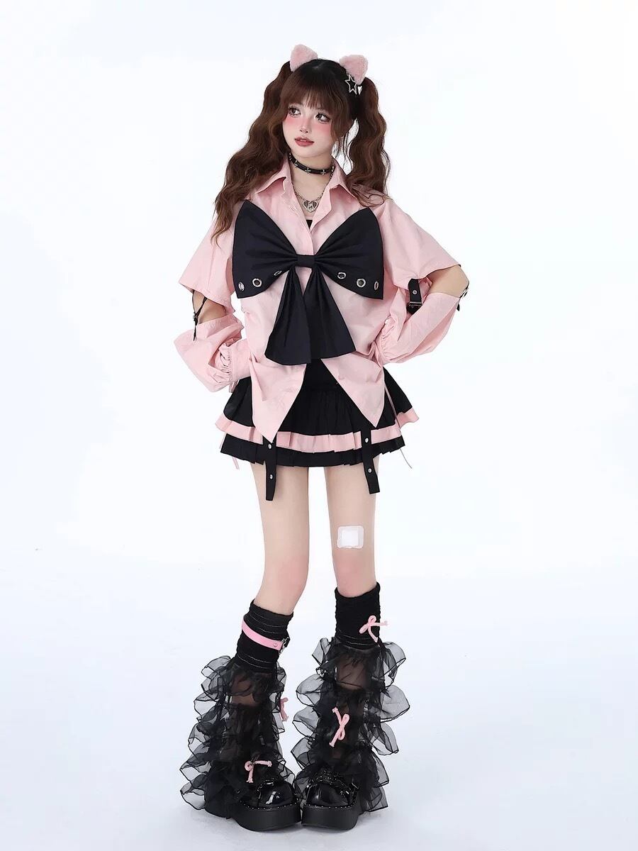 【7カラー】ブラウス 可愛い リボン 黒 白 シャツ ピンク ガーリー トップス オフショルダー