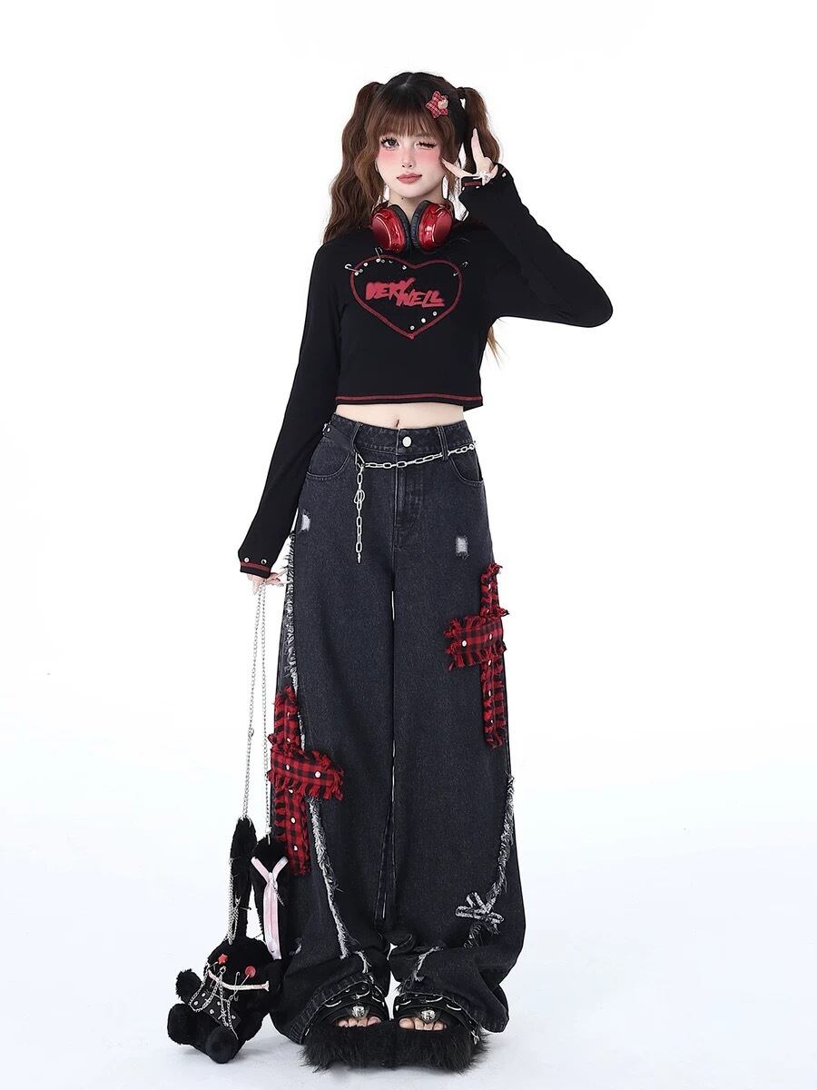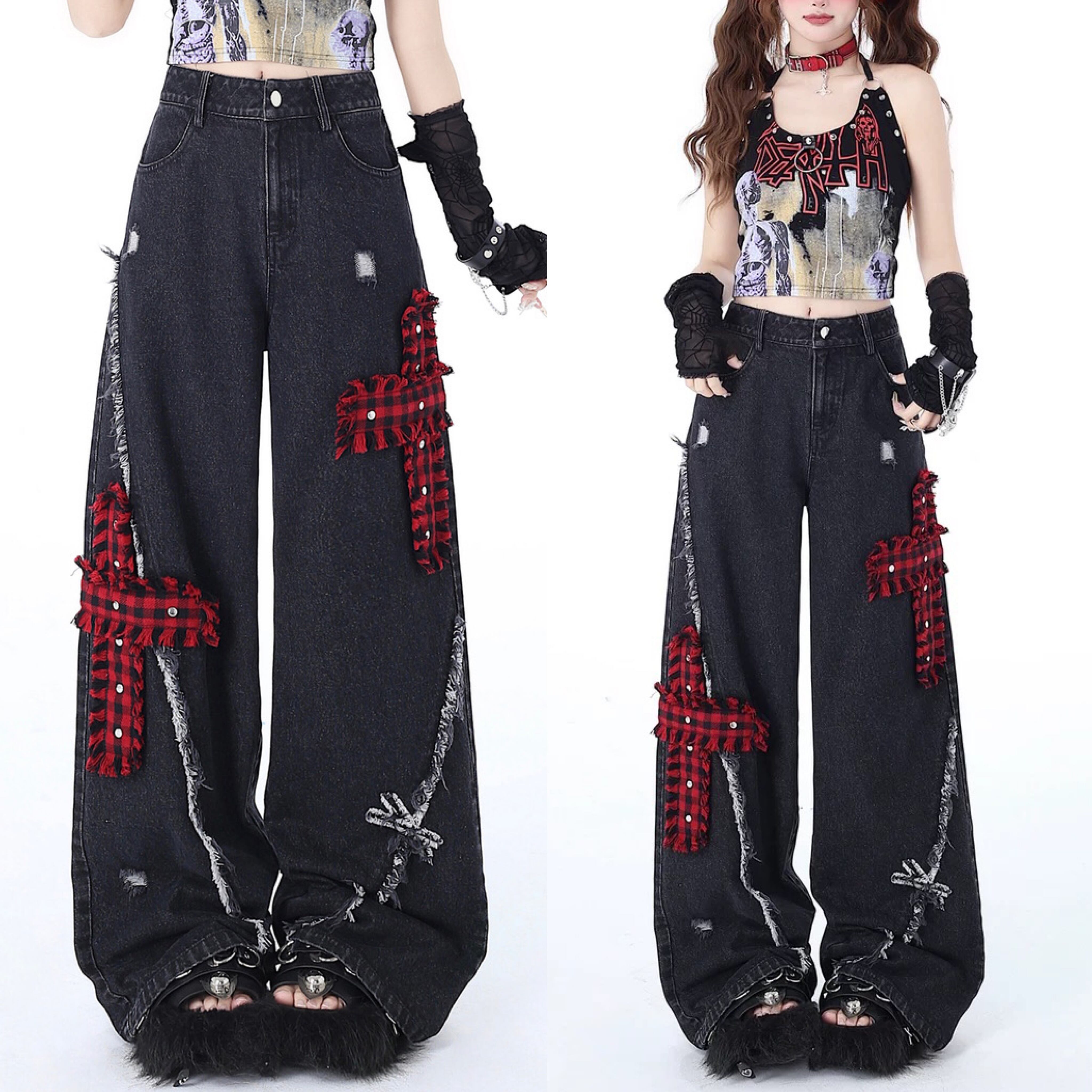 パンツ クロス 赤 チェック ロック ボトムス カジュアル ストリート