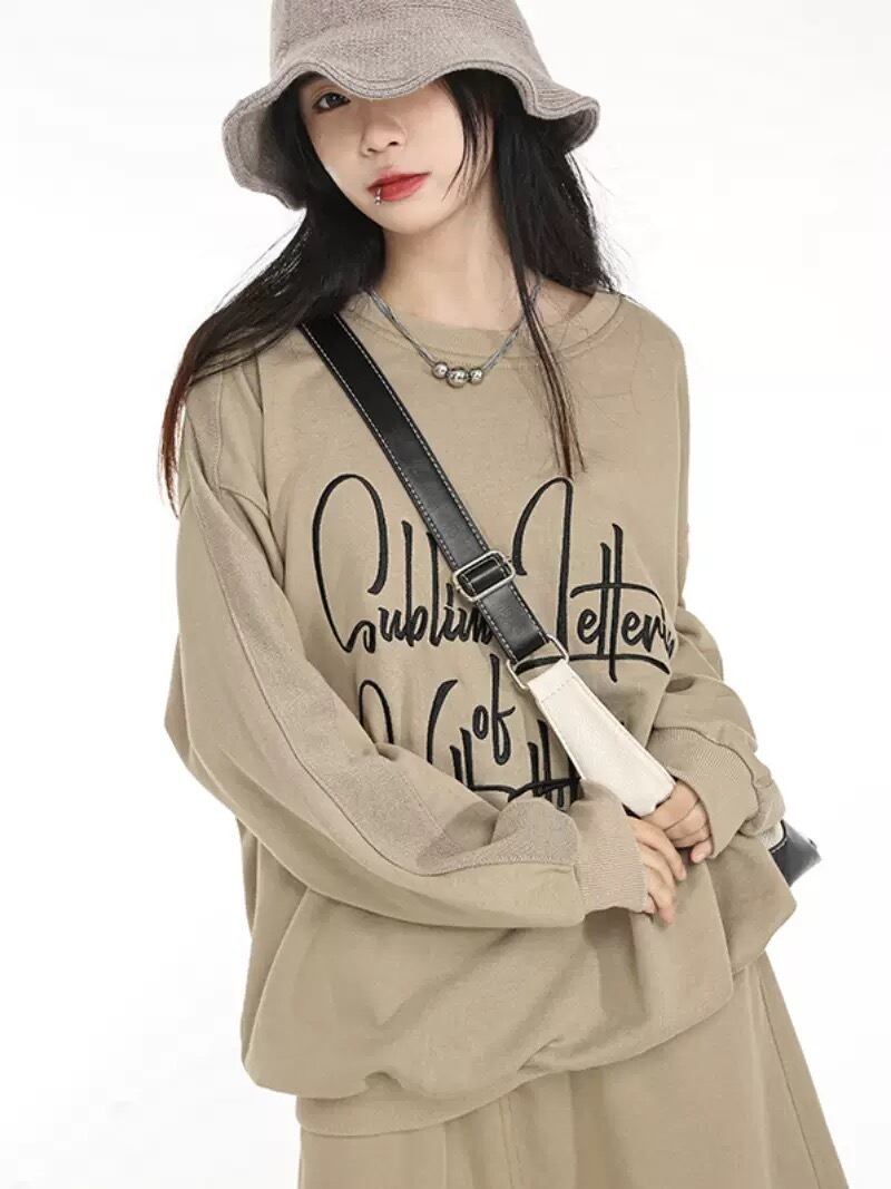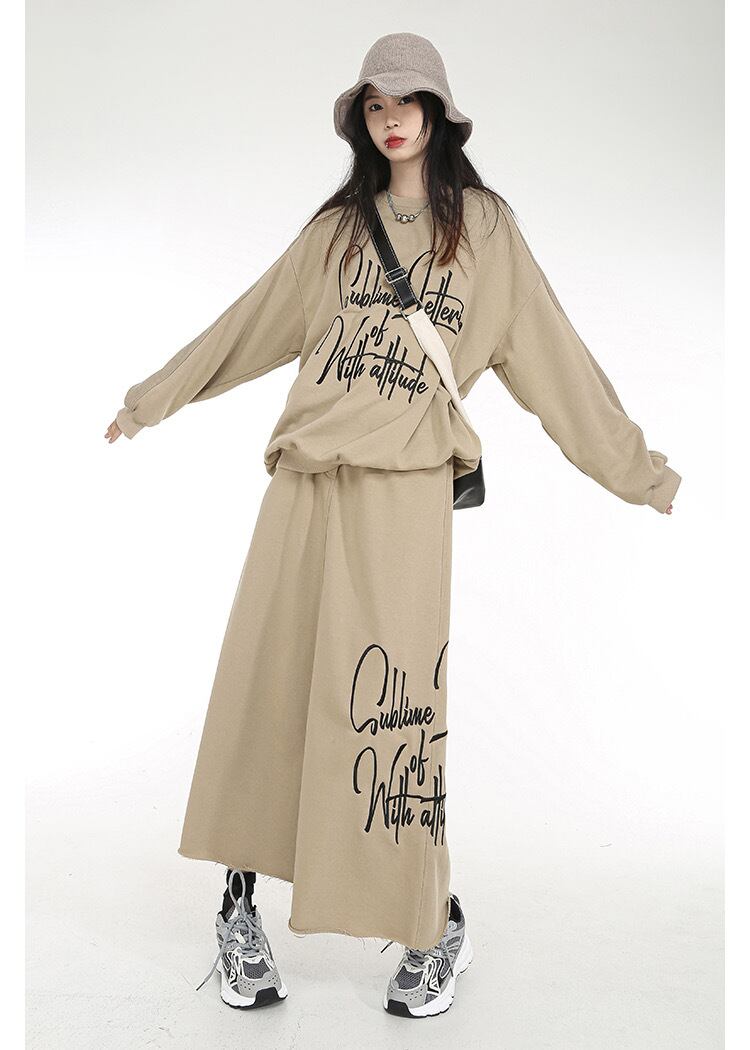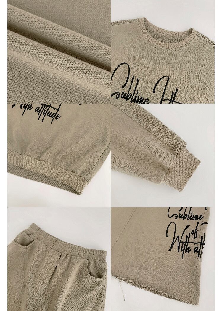 【セットアップ】ベージュ カーキ スカート トレーナー カジュアル パーカー スカート ストリート