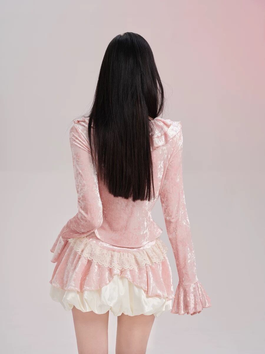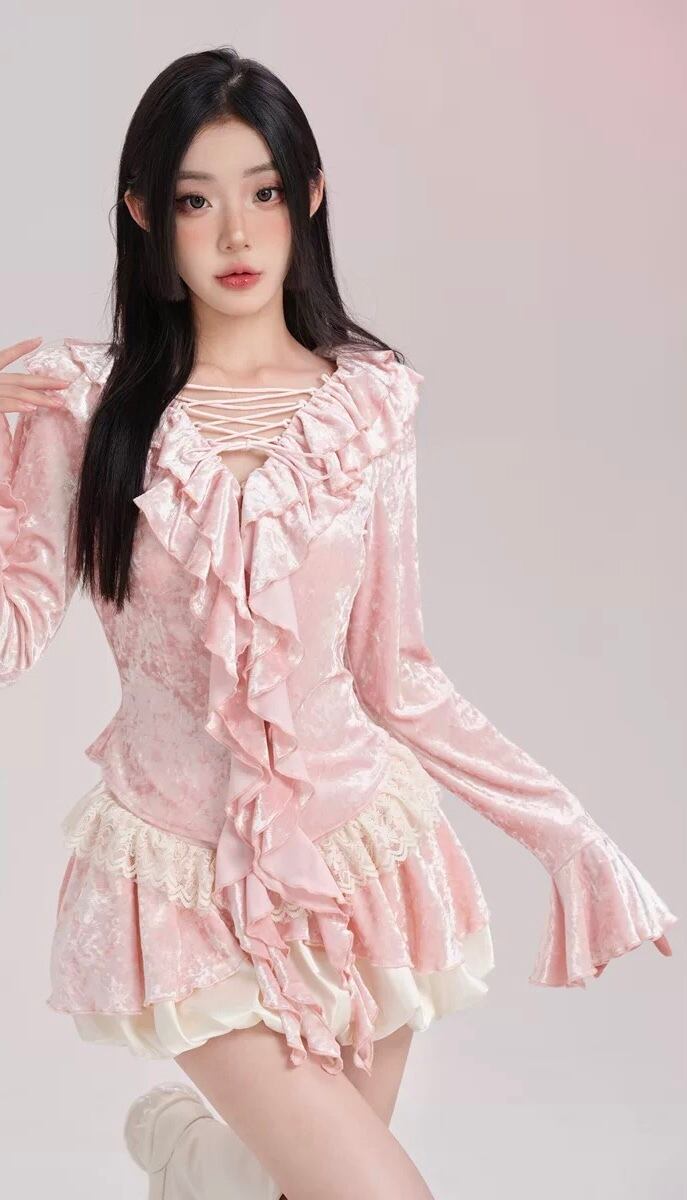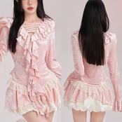 ブラウス ピンク ガーリー カジュアル トップス カーディガン 可愛い 姫
