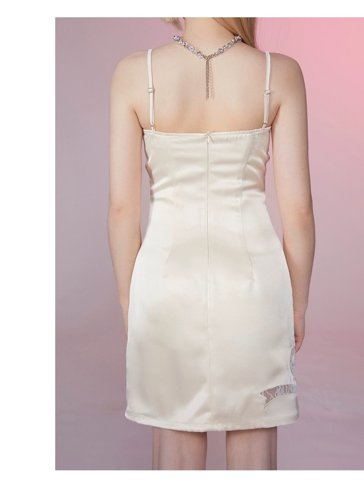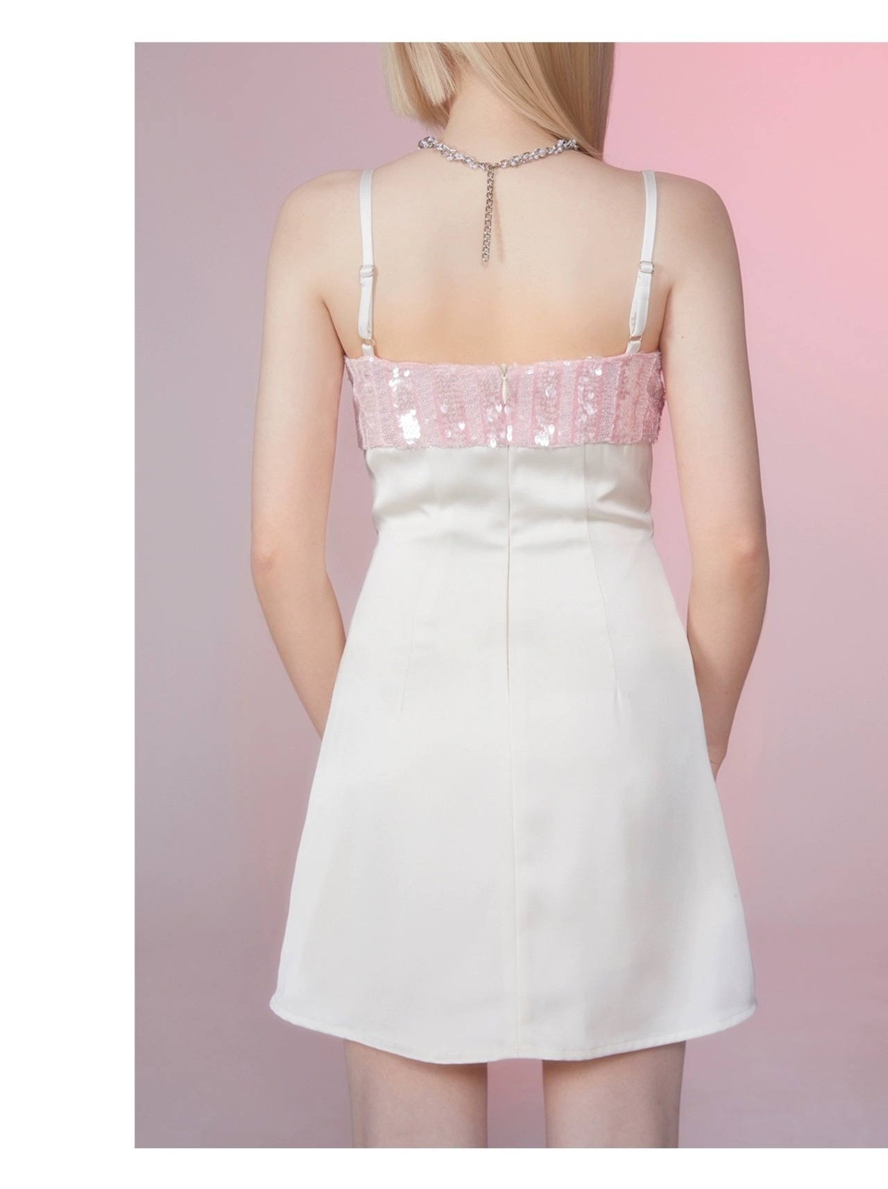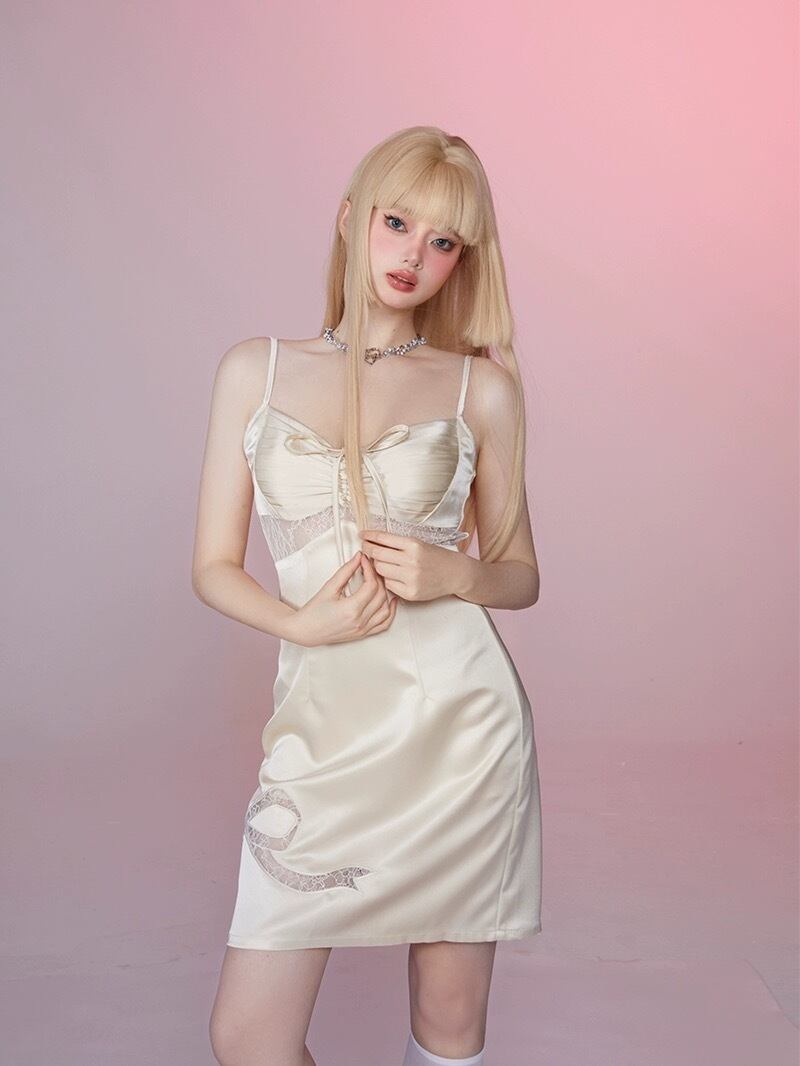 キャミソール ワンピース ベージュ リボン シースルー ガーリー セクシー インナー ブラウス キラキラ スパンコール ピンク