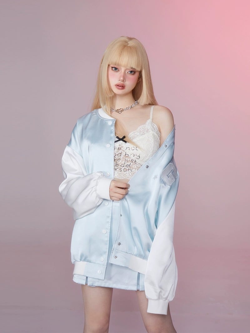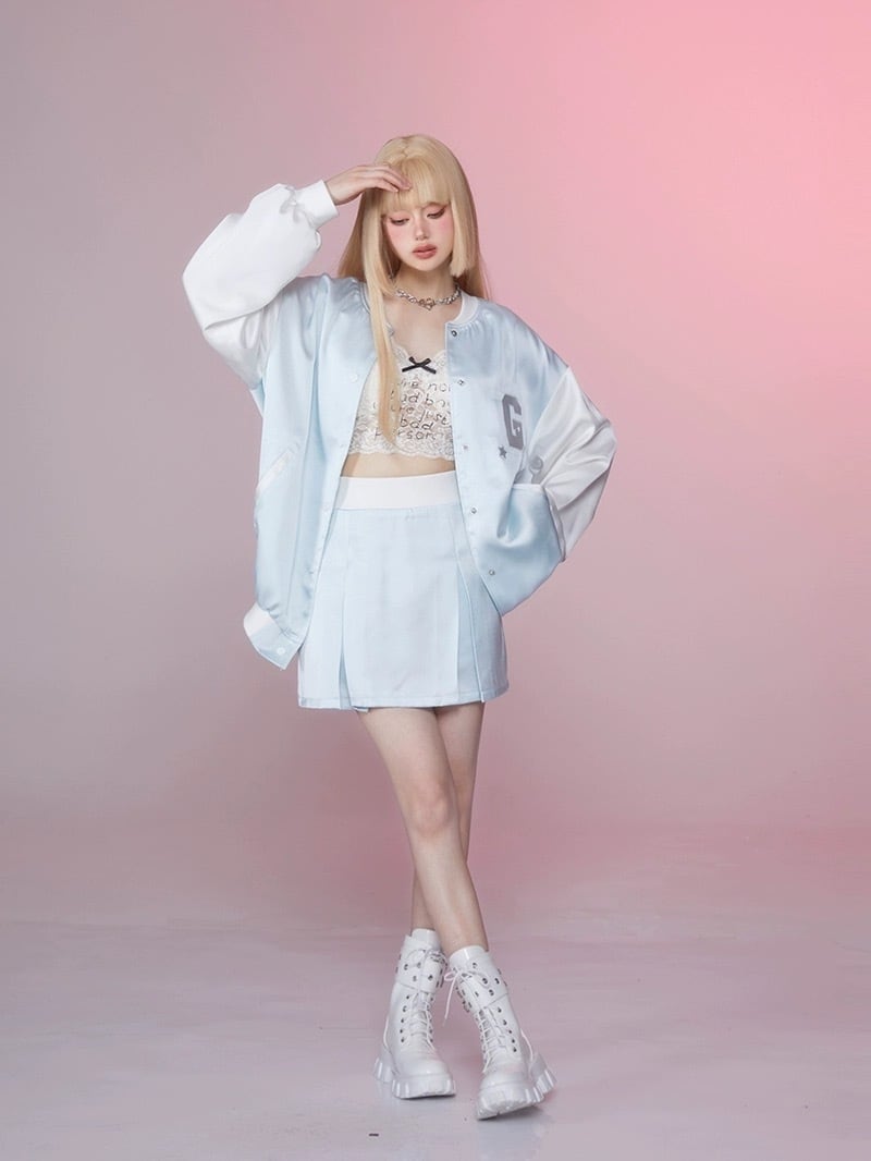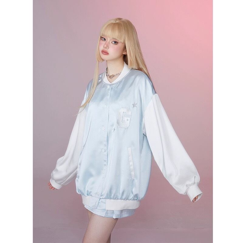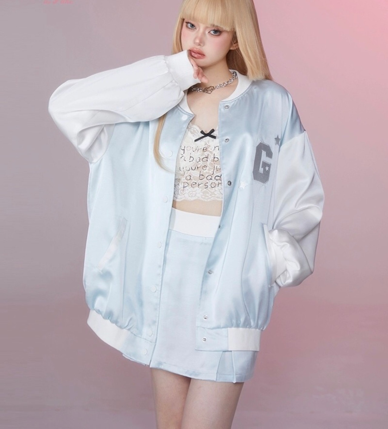 ジャンパー 水色 ジャケット アウター スカート カーディガン ブルゾン ガーリー 可愛い