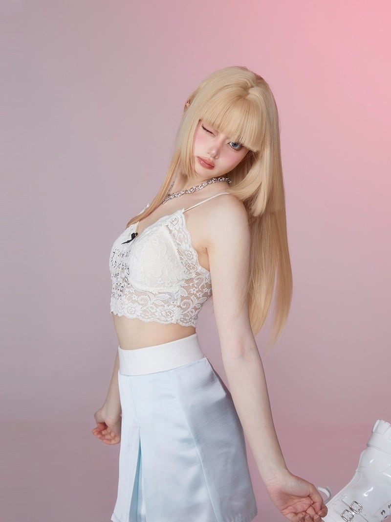 キャミソール 白 トップス インナー ブラ ブラウス ガーリー 白 ダンス Y2K
