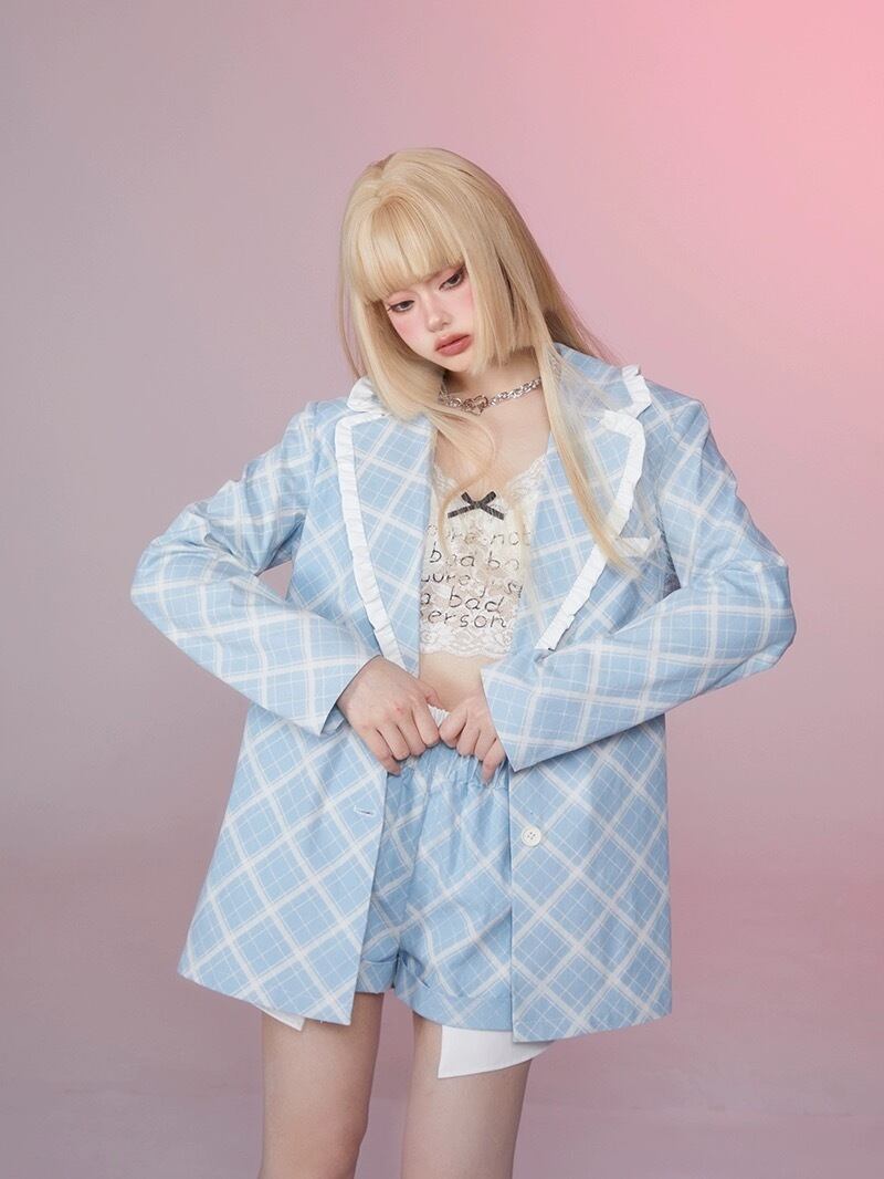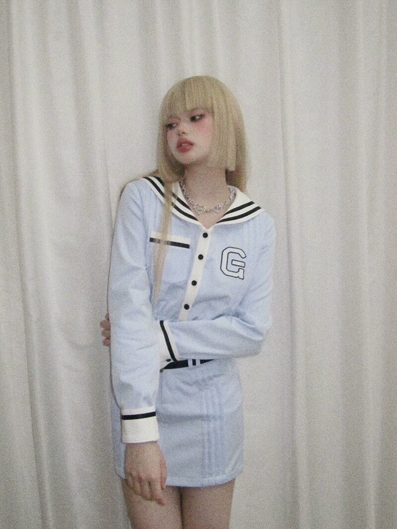 【ジャケット】水色 ガーリー トップス アウター 可愛い ガーリー セーター スタジャン ブルゾン ジャケット カーディガン