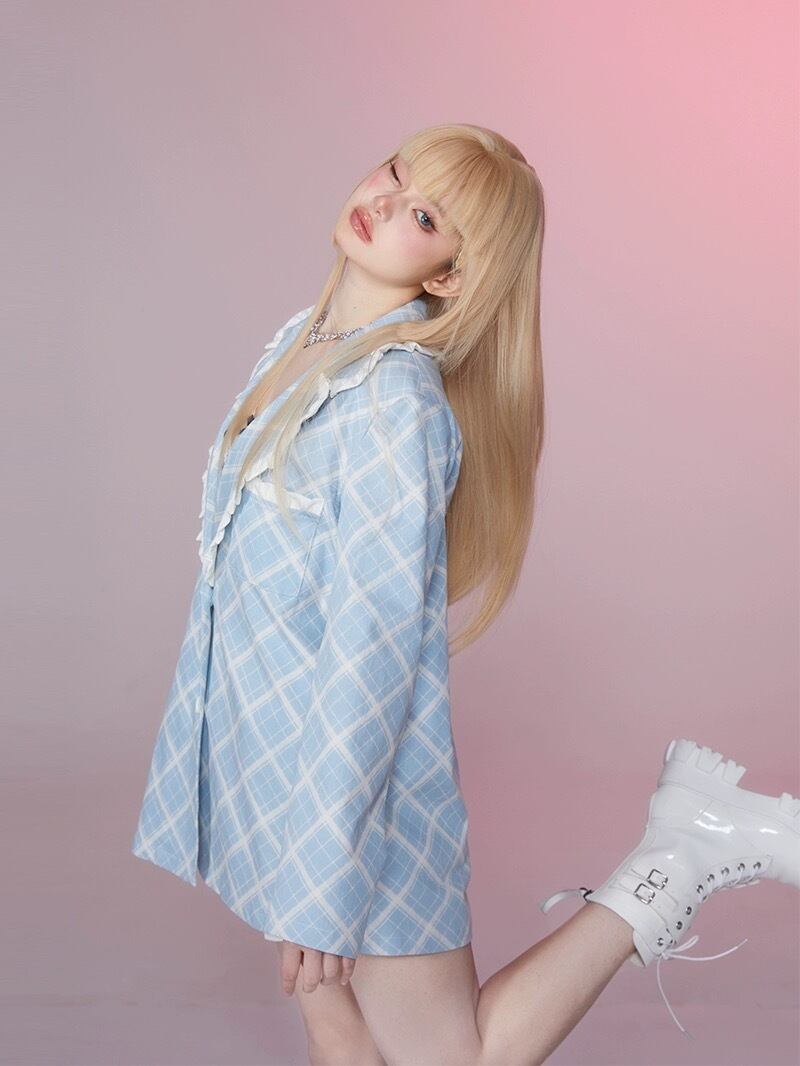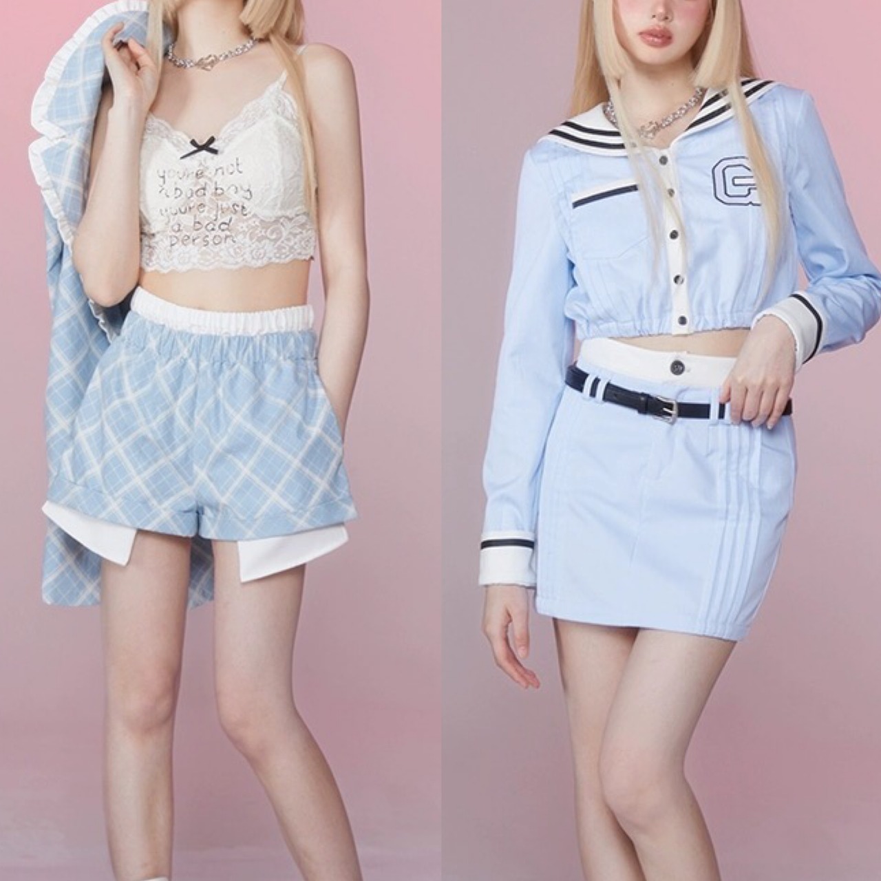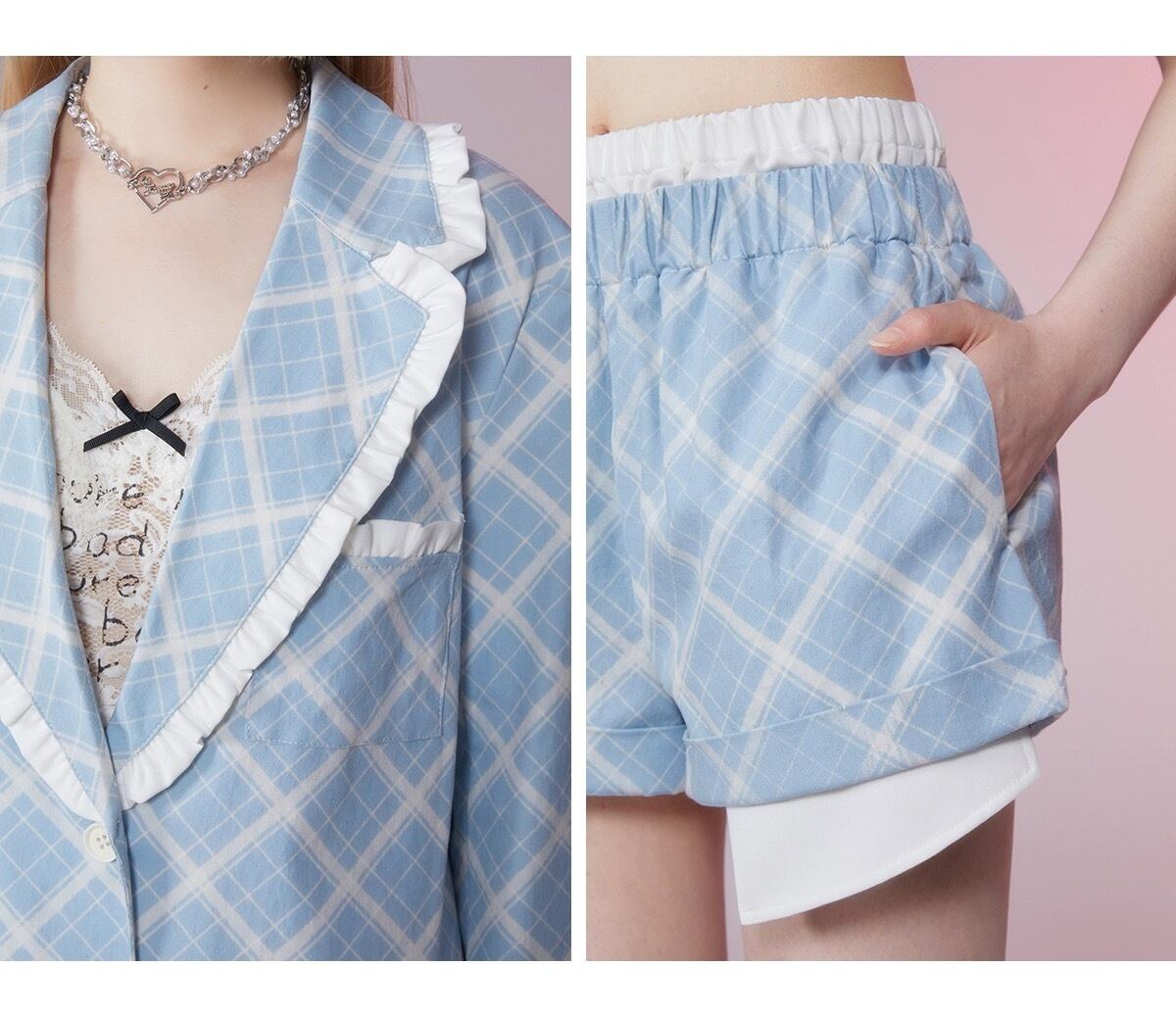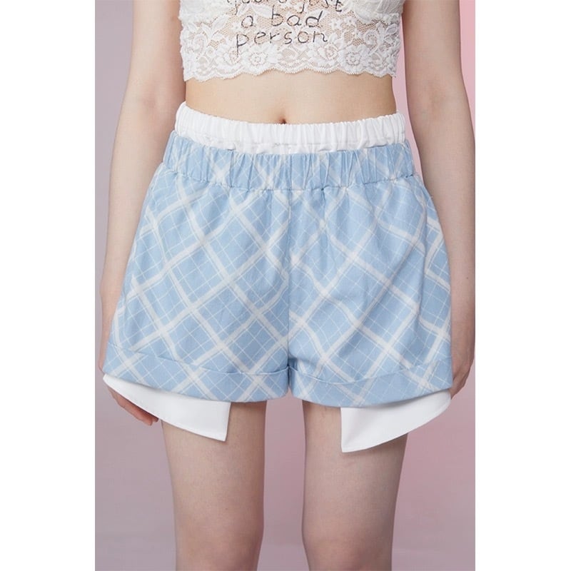 【ボトムス】ショートパンツ ミニスカート ホットパンツ 水色 チェック スクール ガーリー キュロット