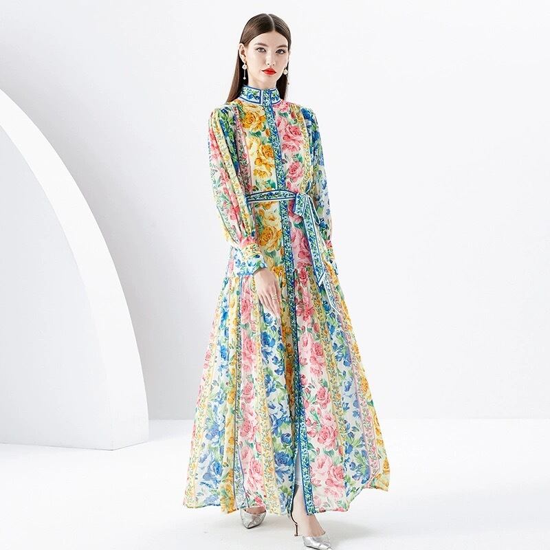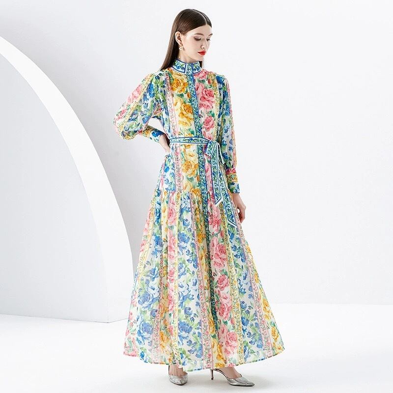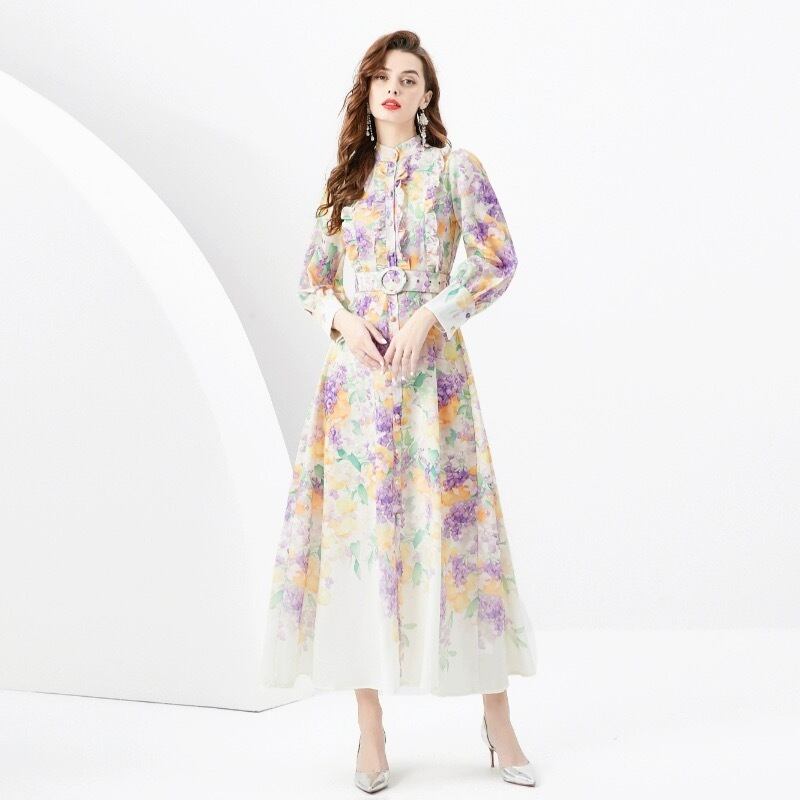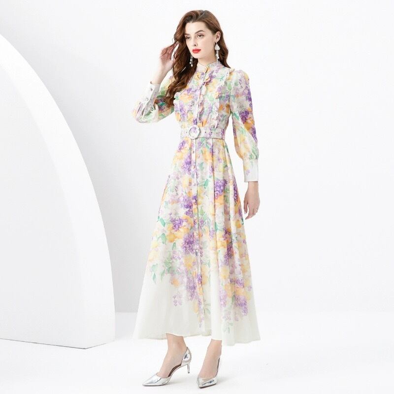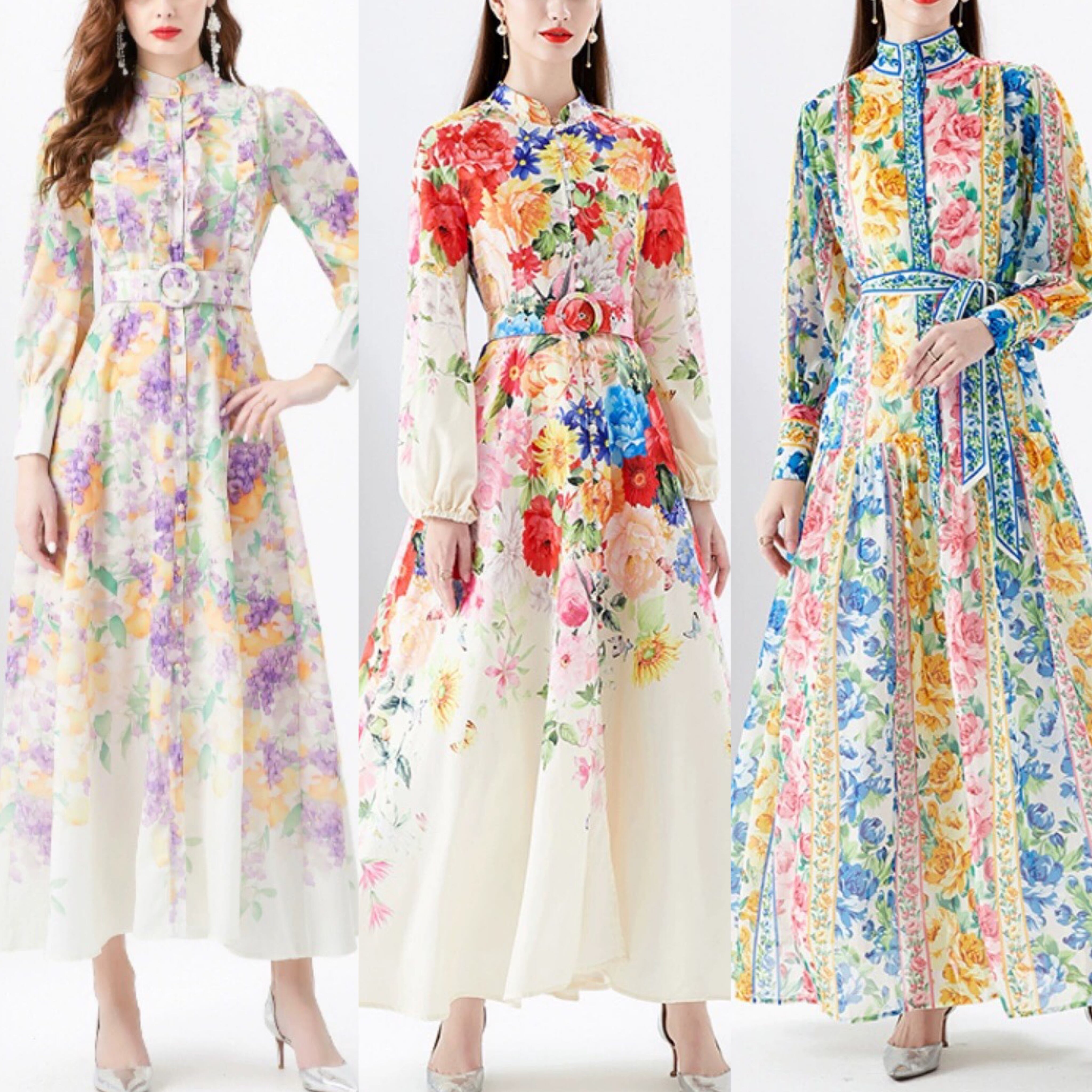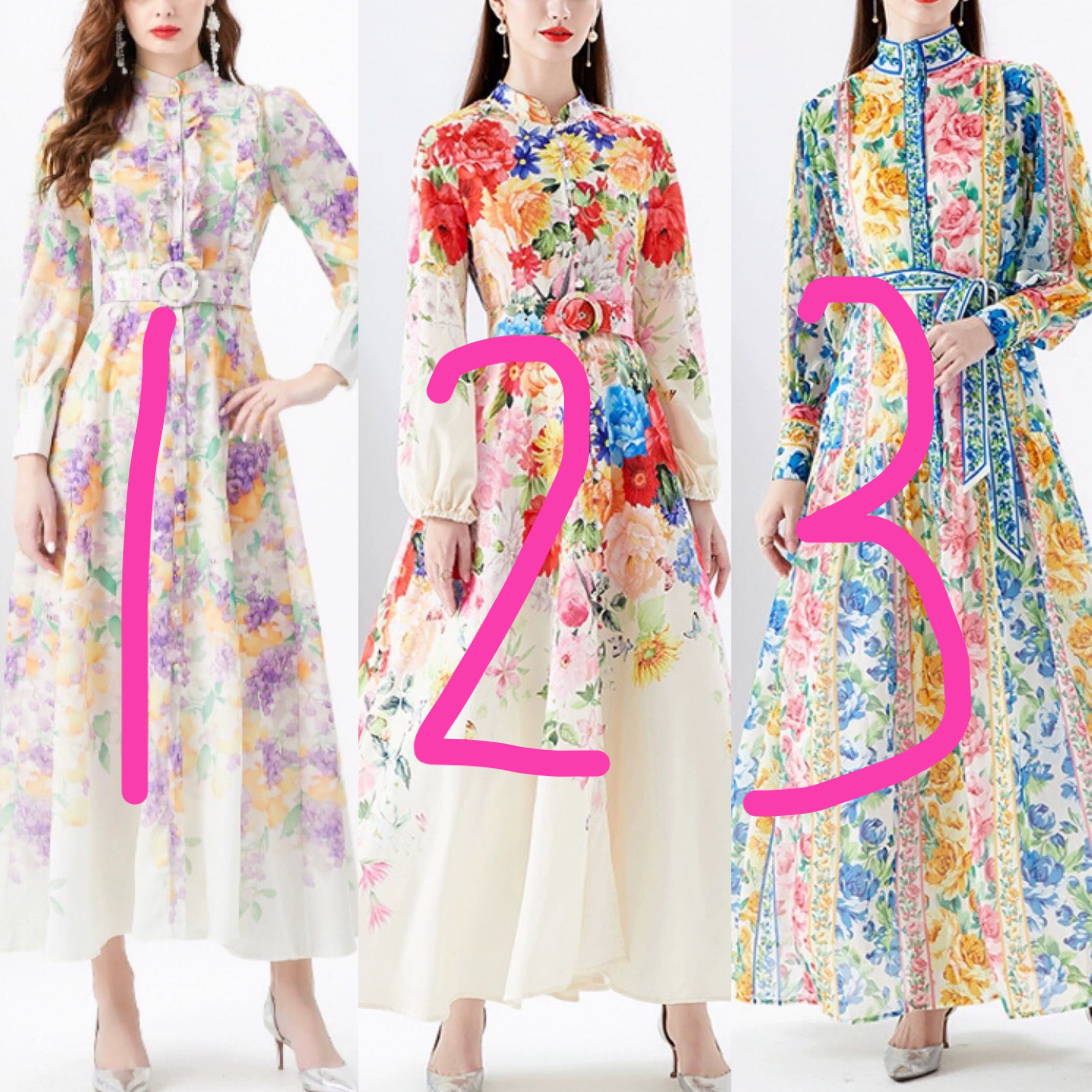 2XLまで】紫 ピンク 黄色 赤 フラワー エレガント ブラウス ワンピース