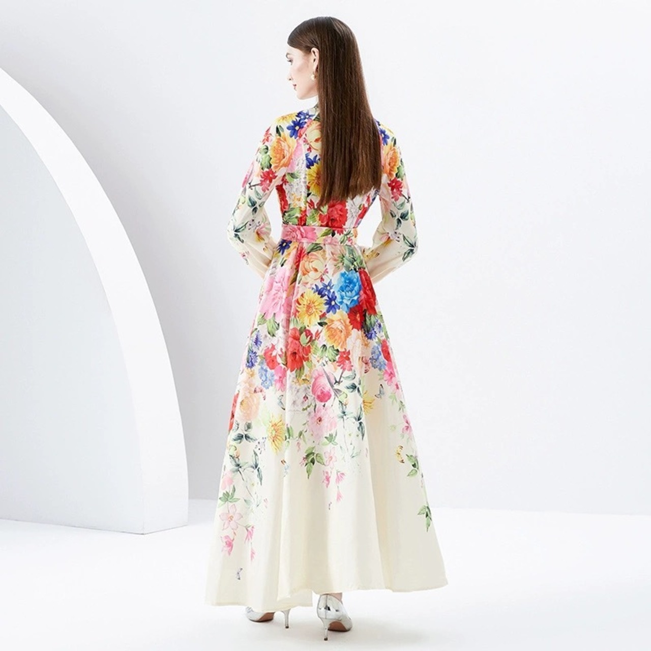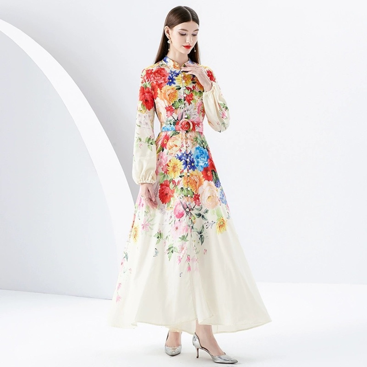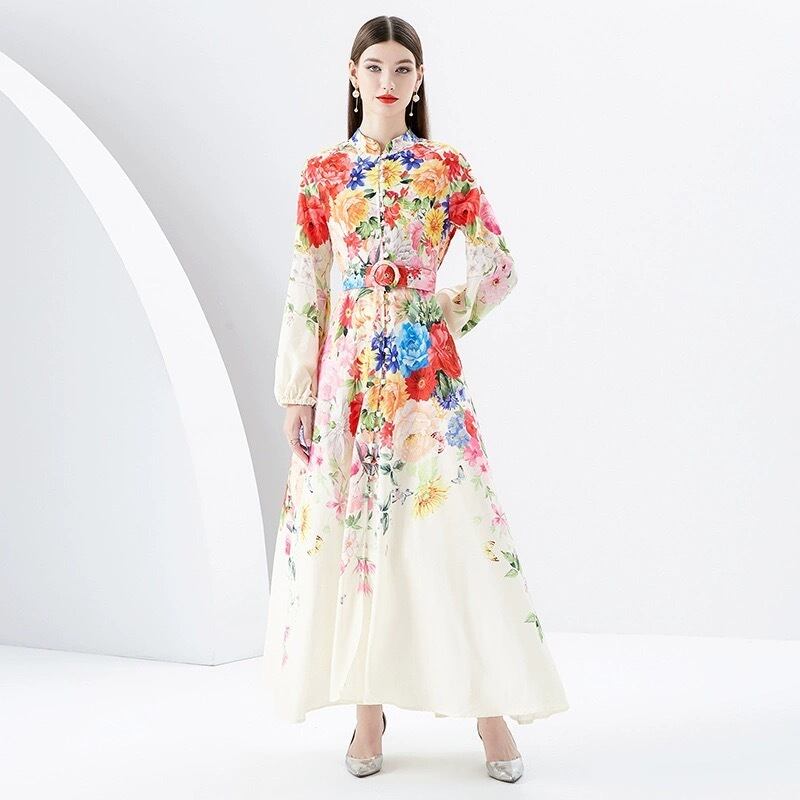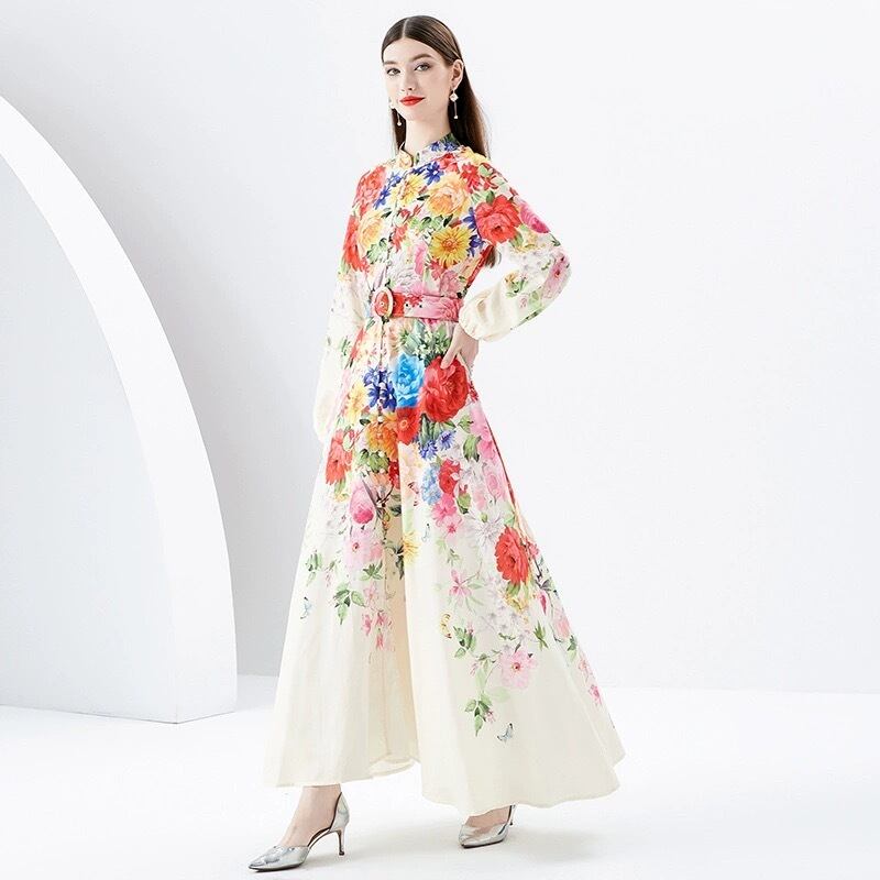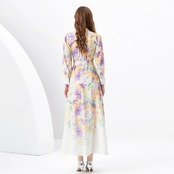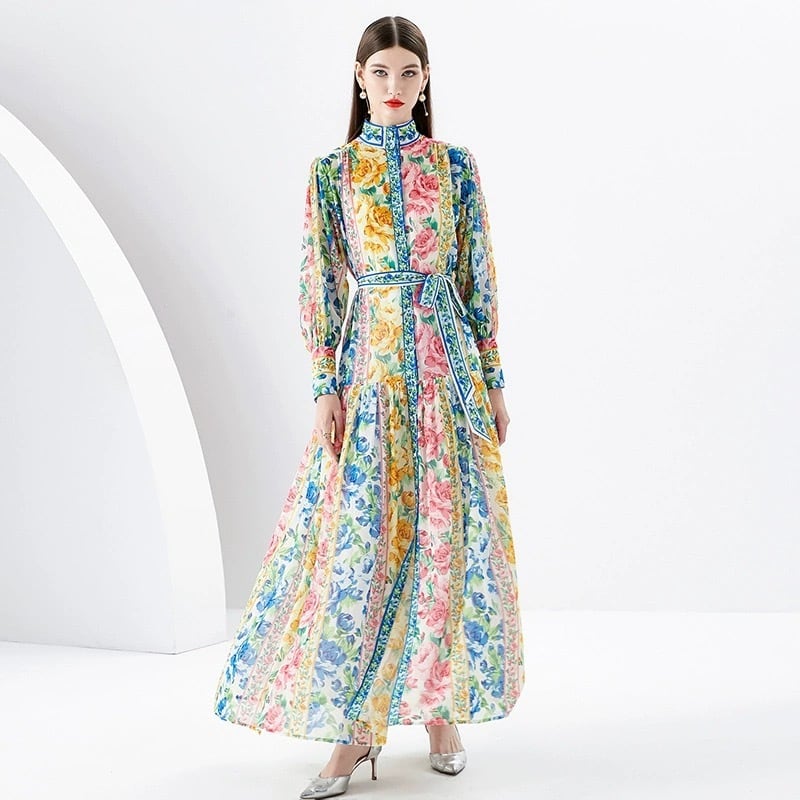 2XLまで】紫 ピンク 黄色 赤 フラワー エレガント ブラウス ワンピース