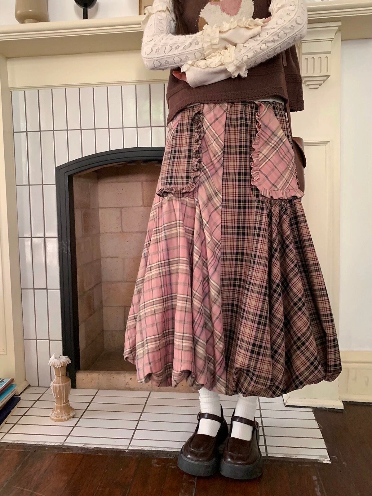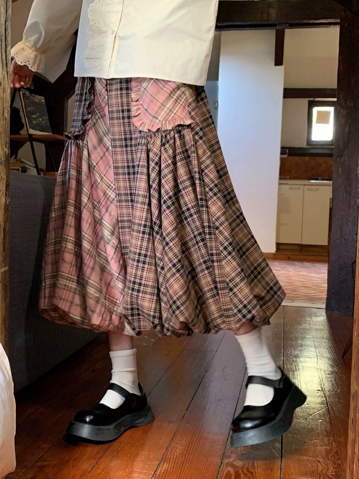 スカート 赤 ピンク チェック ガーリー ボトムス 可愛い