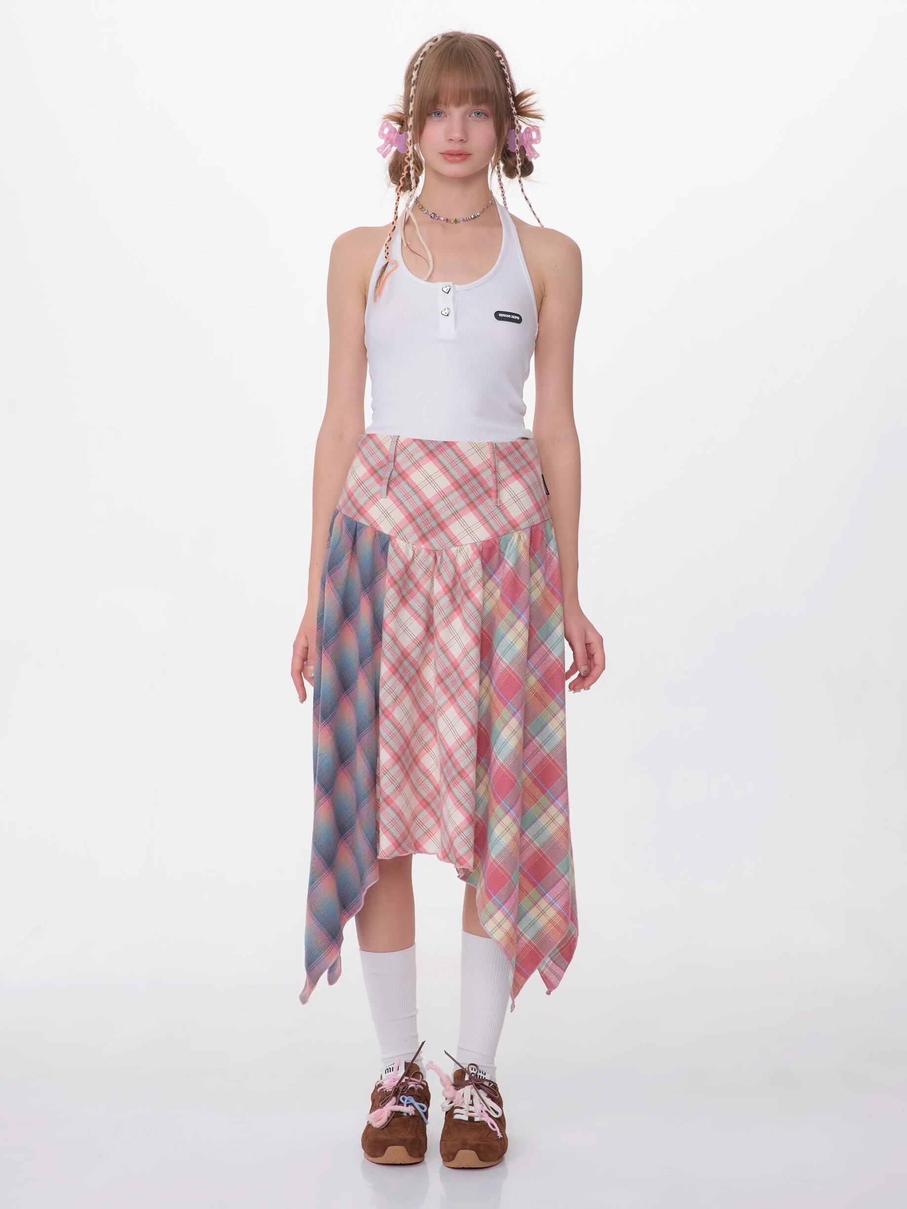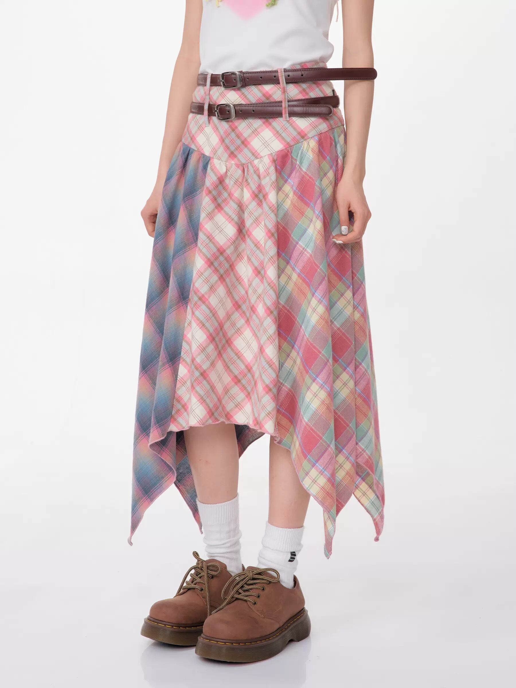 スカート チェック ピンク ガーリー 水色 ボトムス 原宿