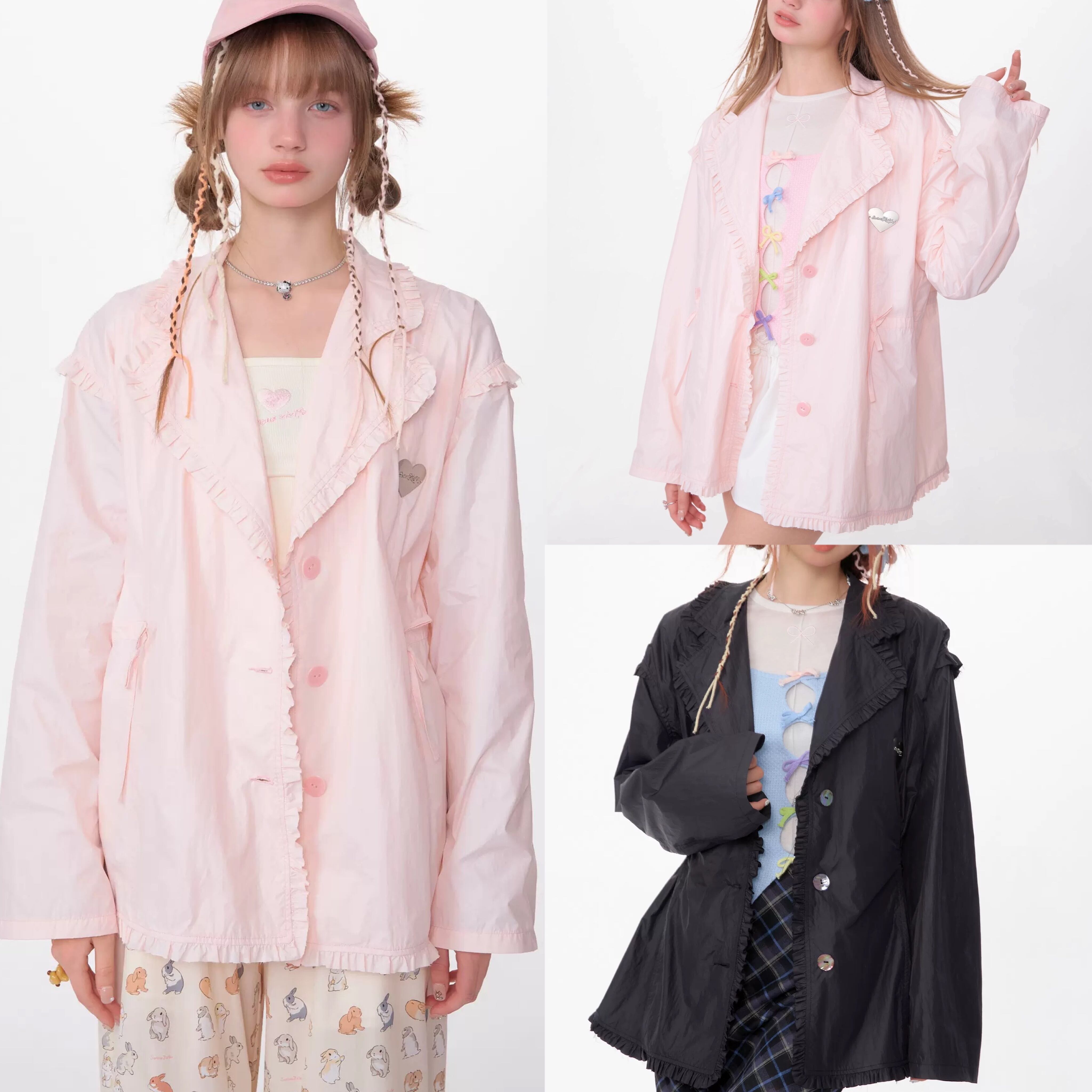 ジャケット ピンク 黒 アウター カーディガン ブラウス ブルゾン ジャンパー アウター コート ハート