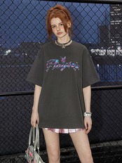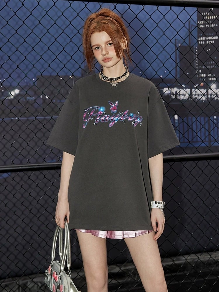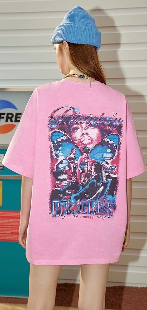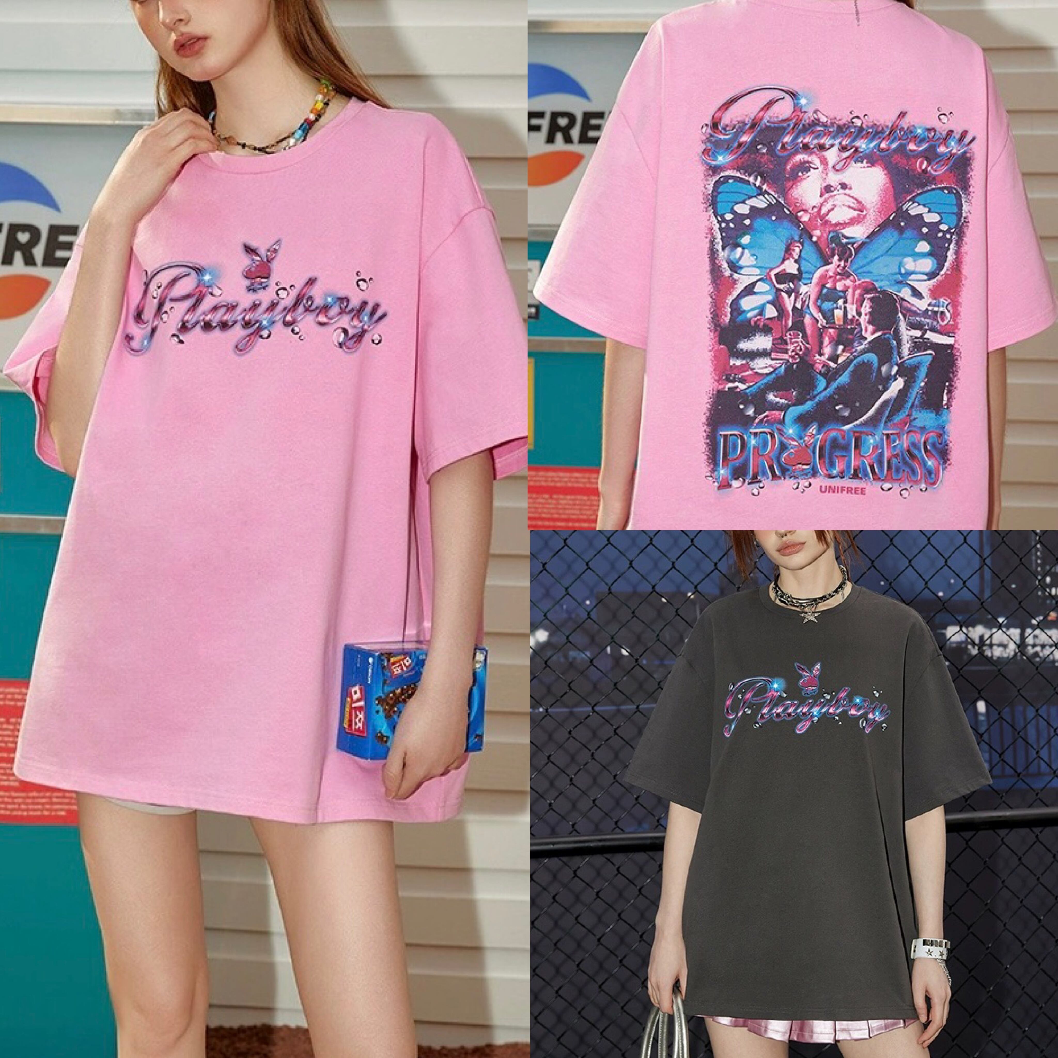 Tシャツ トップス 黒 ピンク ストリート カジュアル ブラウス スウェット