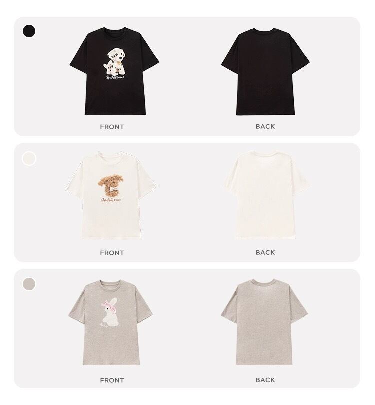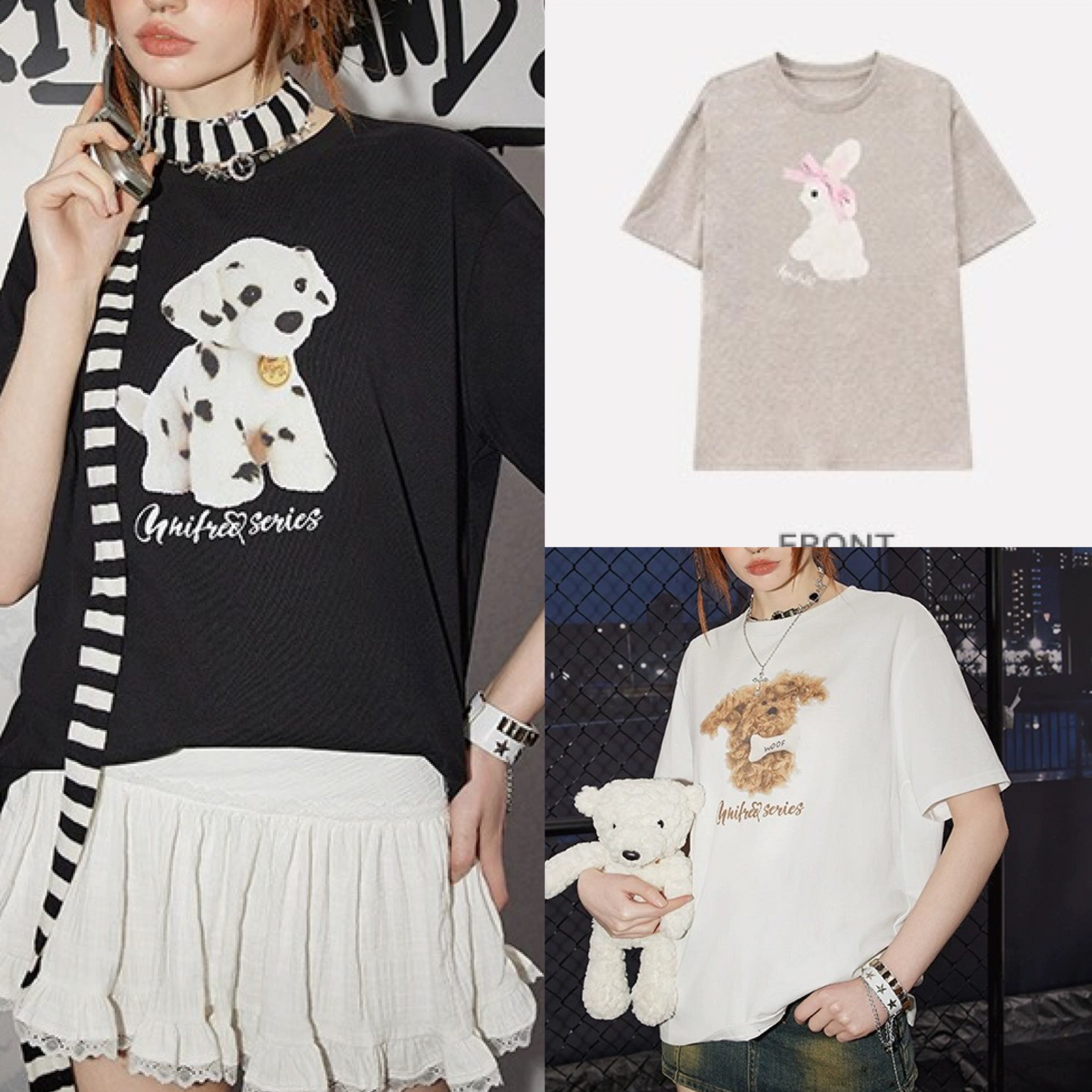 いぬ うさぎ くま グレー 白 黒 Tシャツ トップス 黒 ピンク ストリート カジュアル ブラウス スウェット
