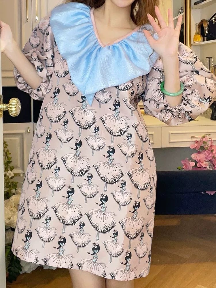 ワンピース ゆったり ピンク 水色 ガーリー 可愛い ブラウス