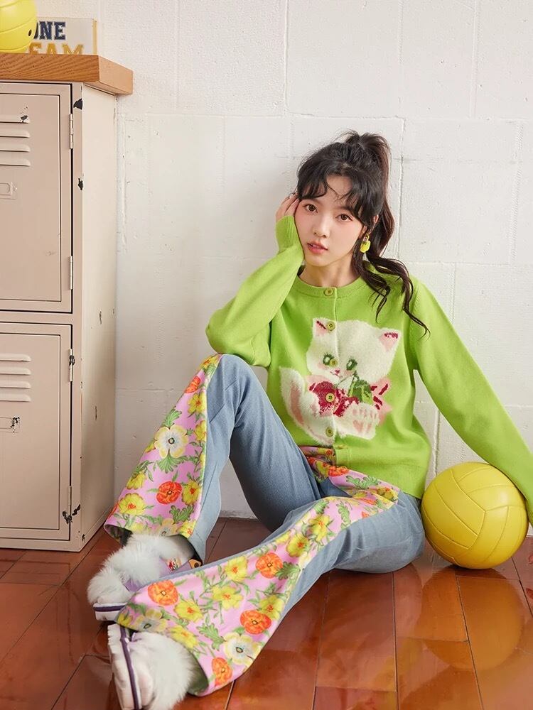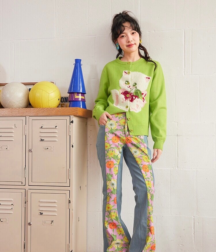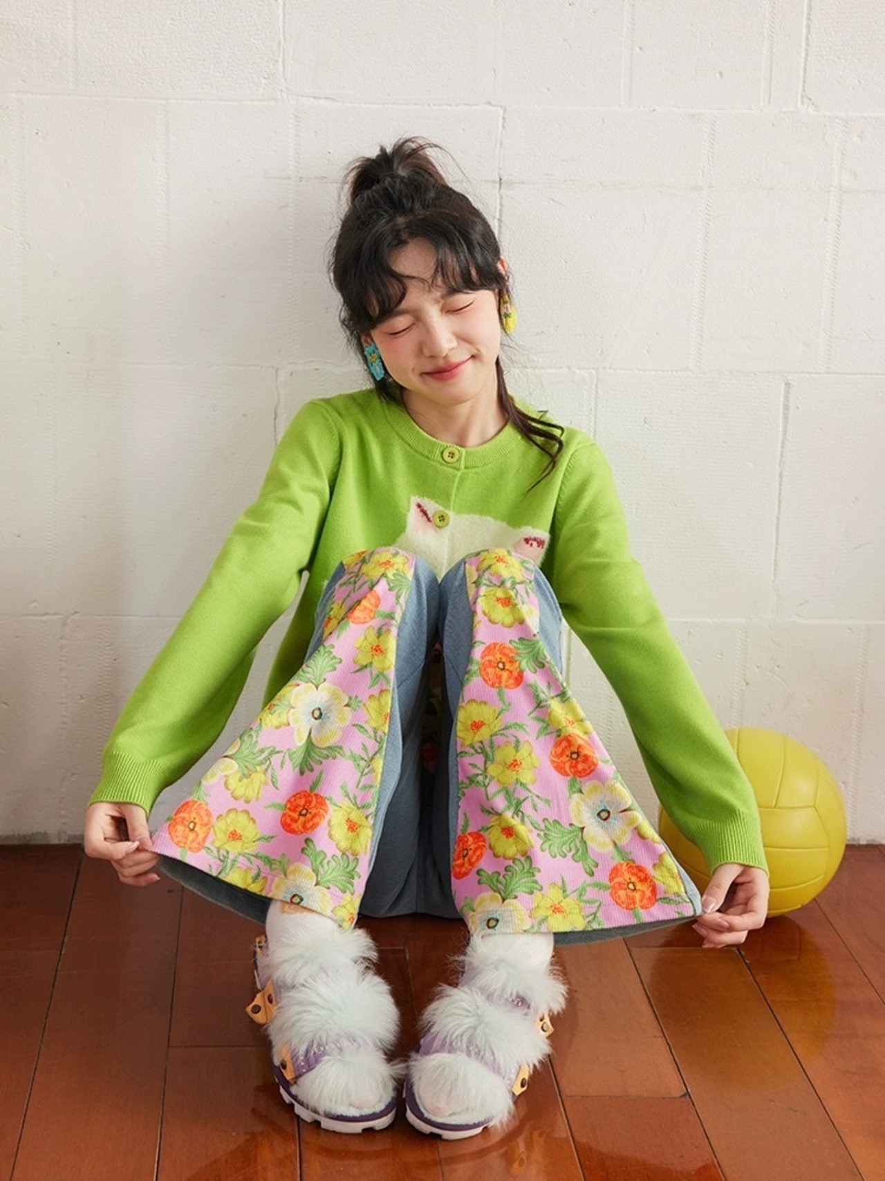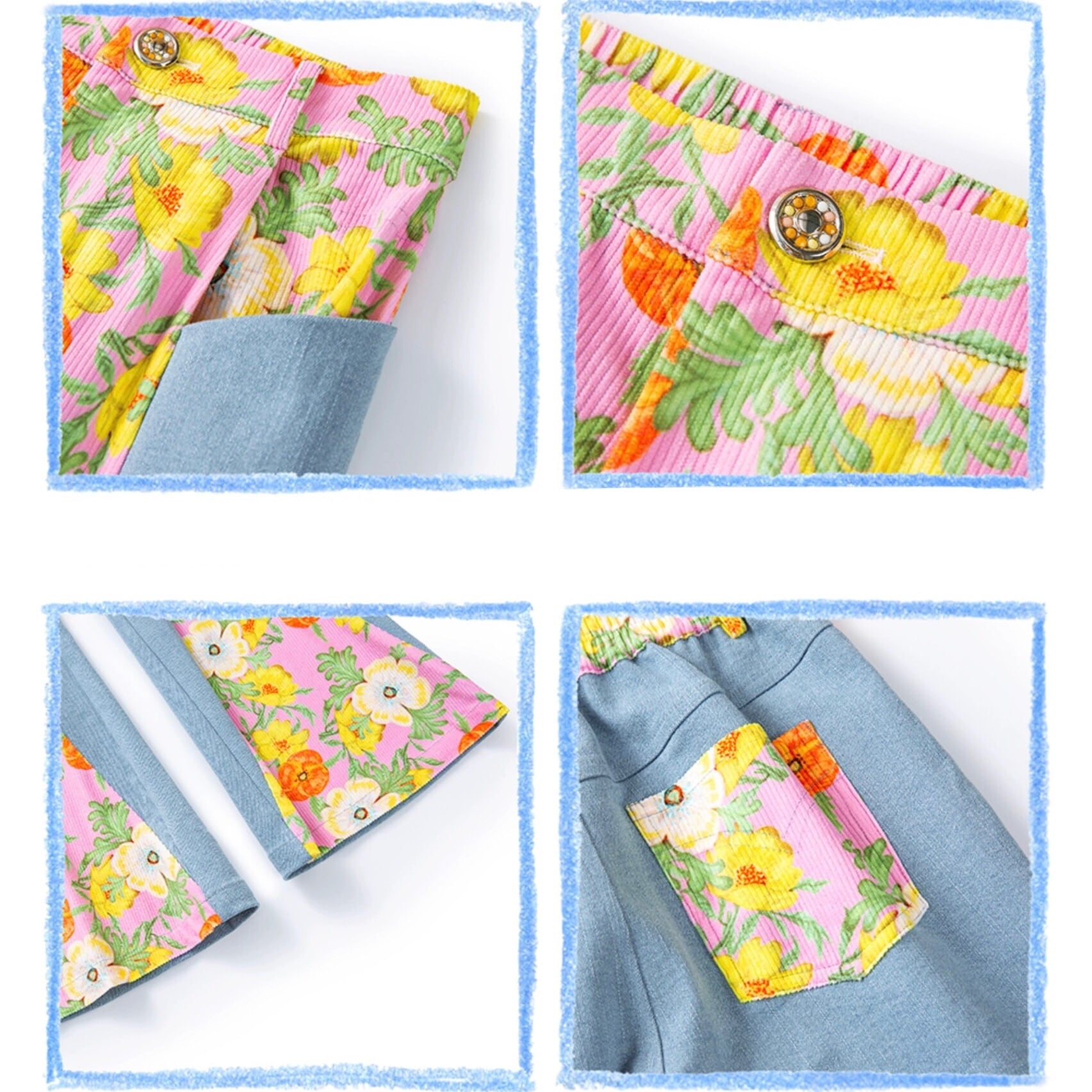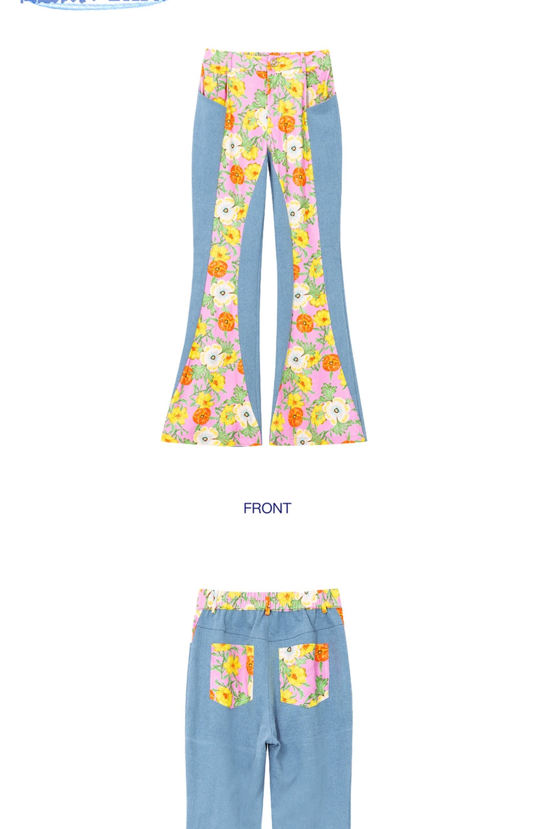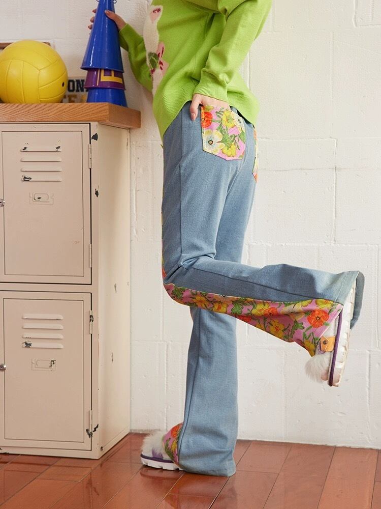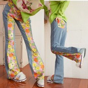 ボトムス 水色 黄色 オレンジ ズボン パンツ フラワー クラシック レトロ ジーパン ジーンズ