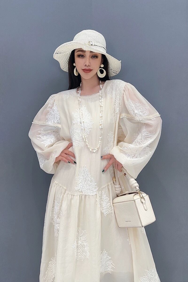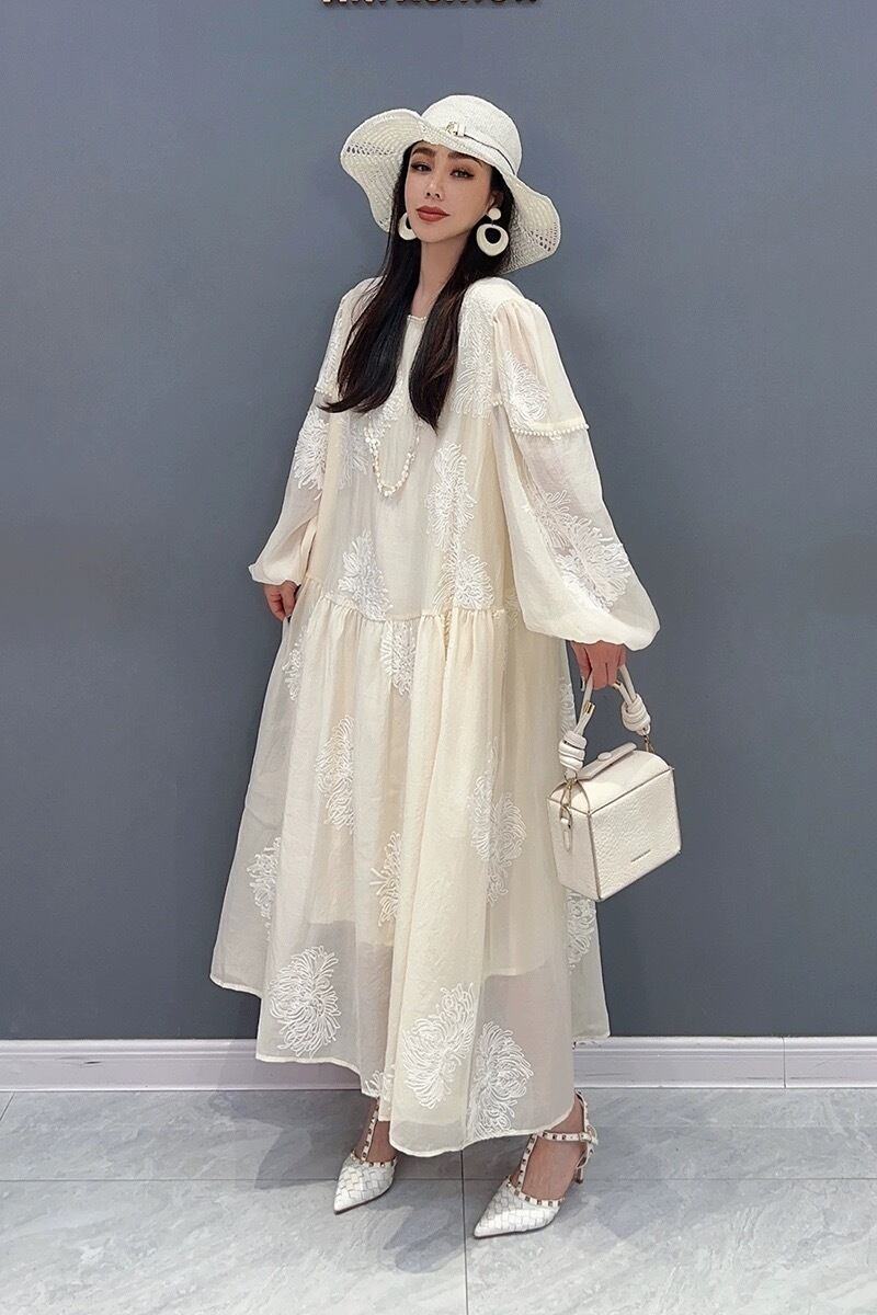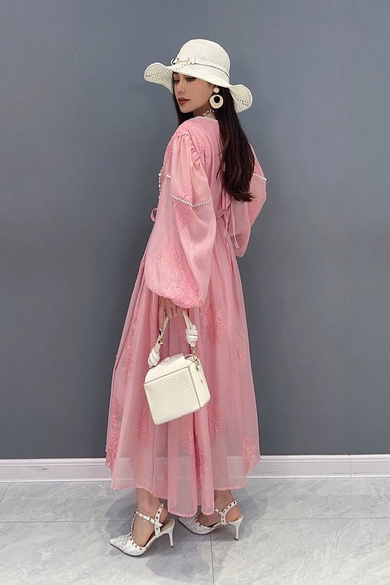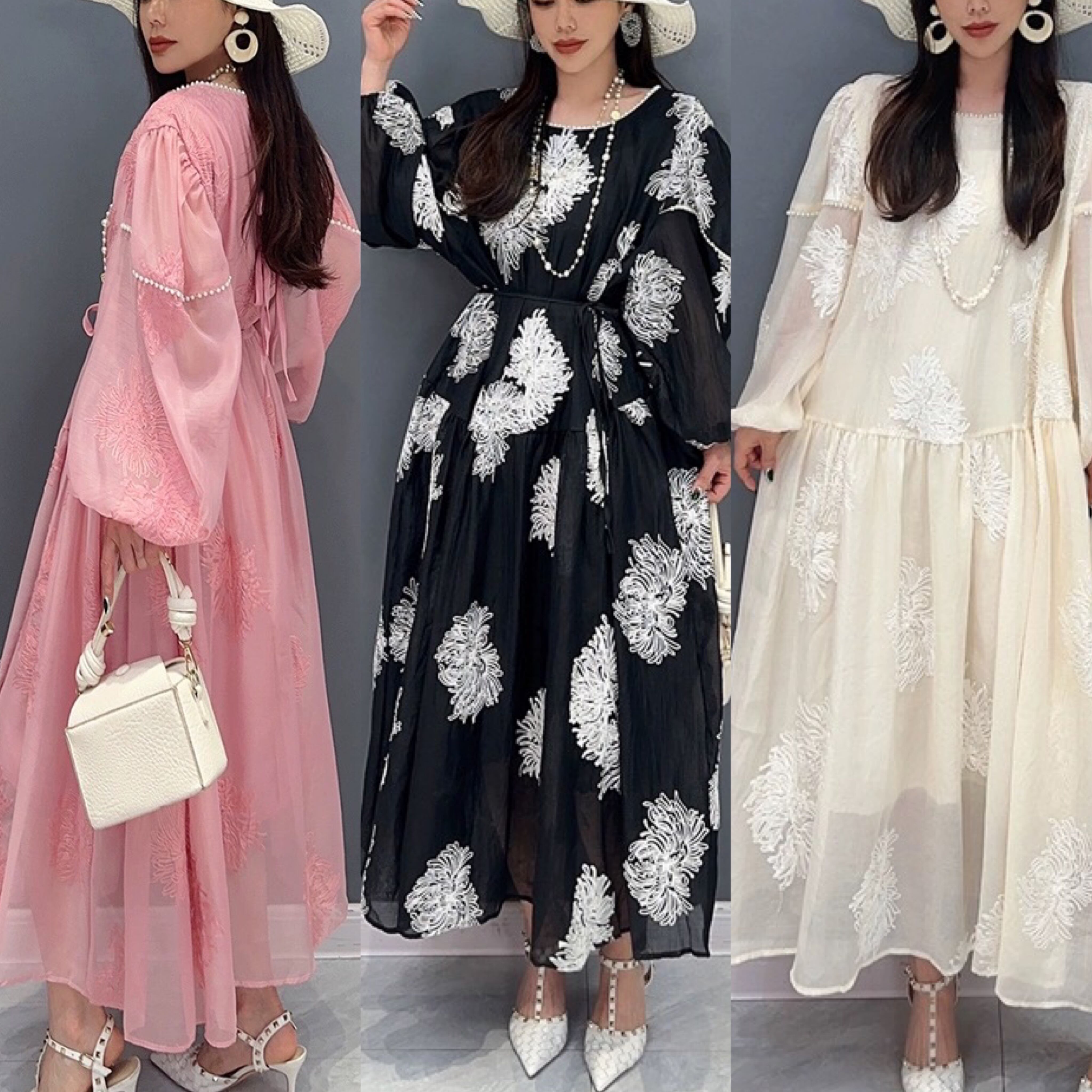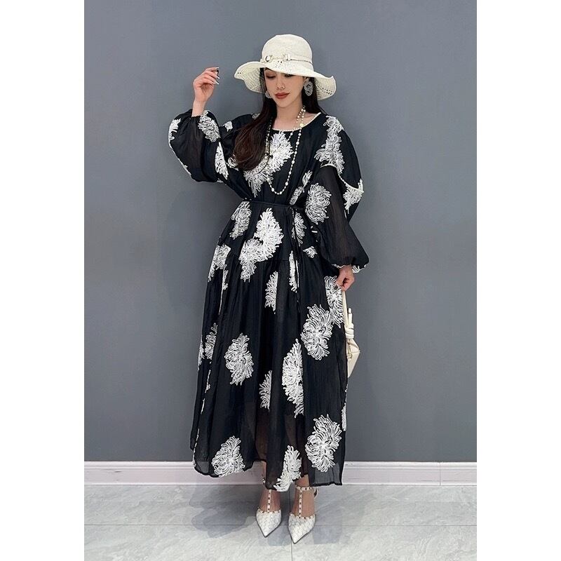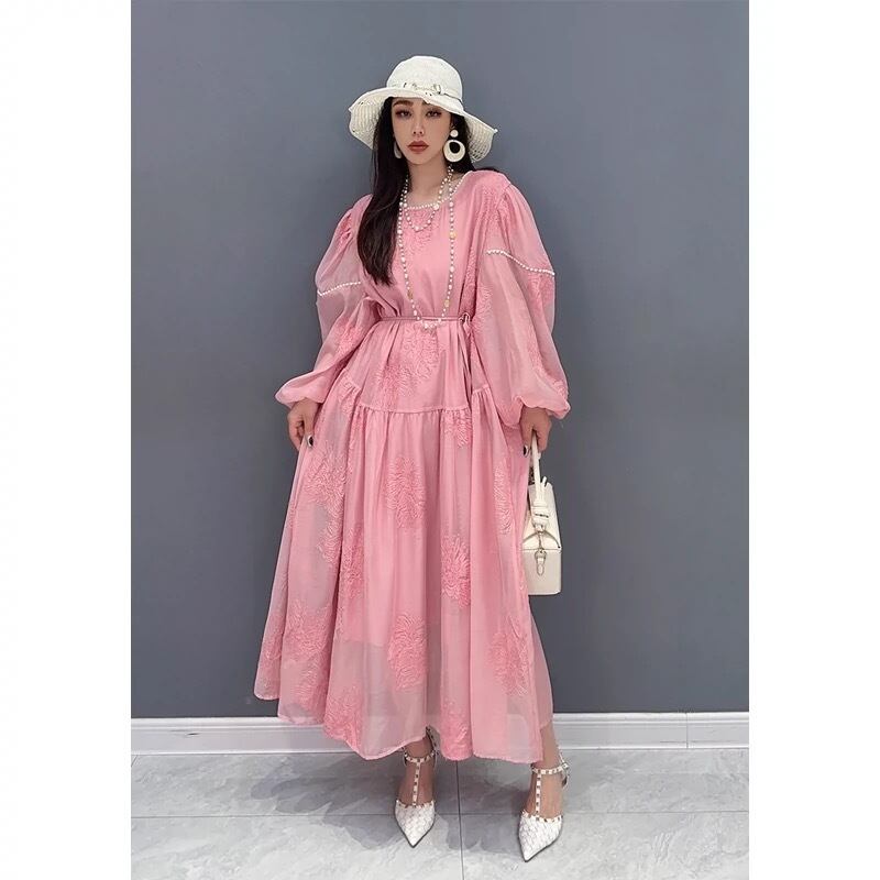 【SALE❣️】ピンク 白 黒 花柄 ワンピース マキシ ブラウス エレガント XL