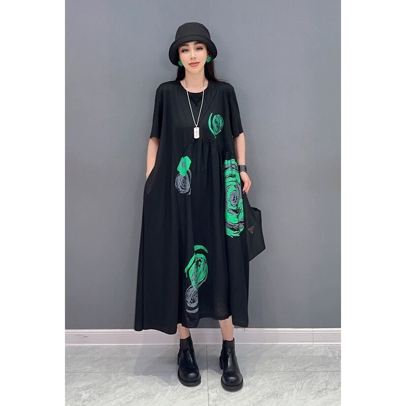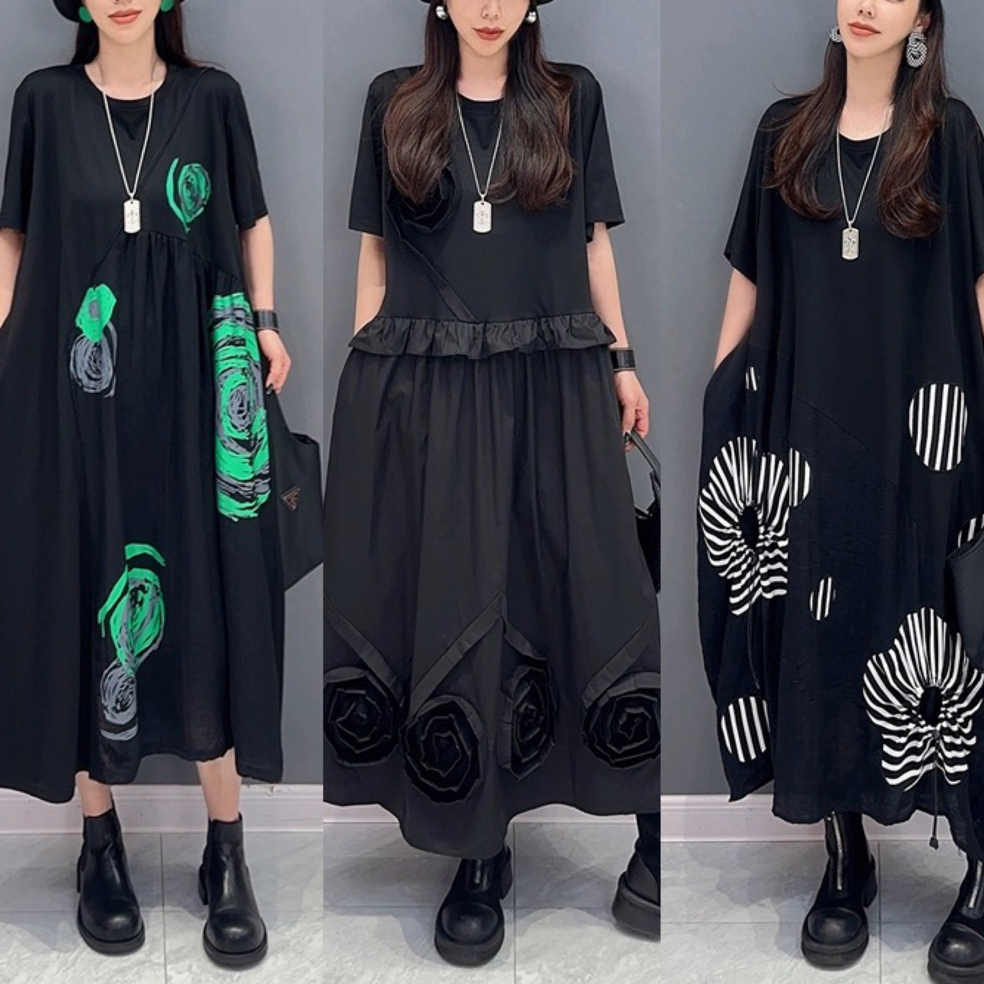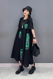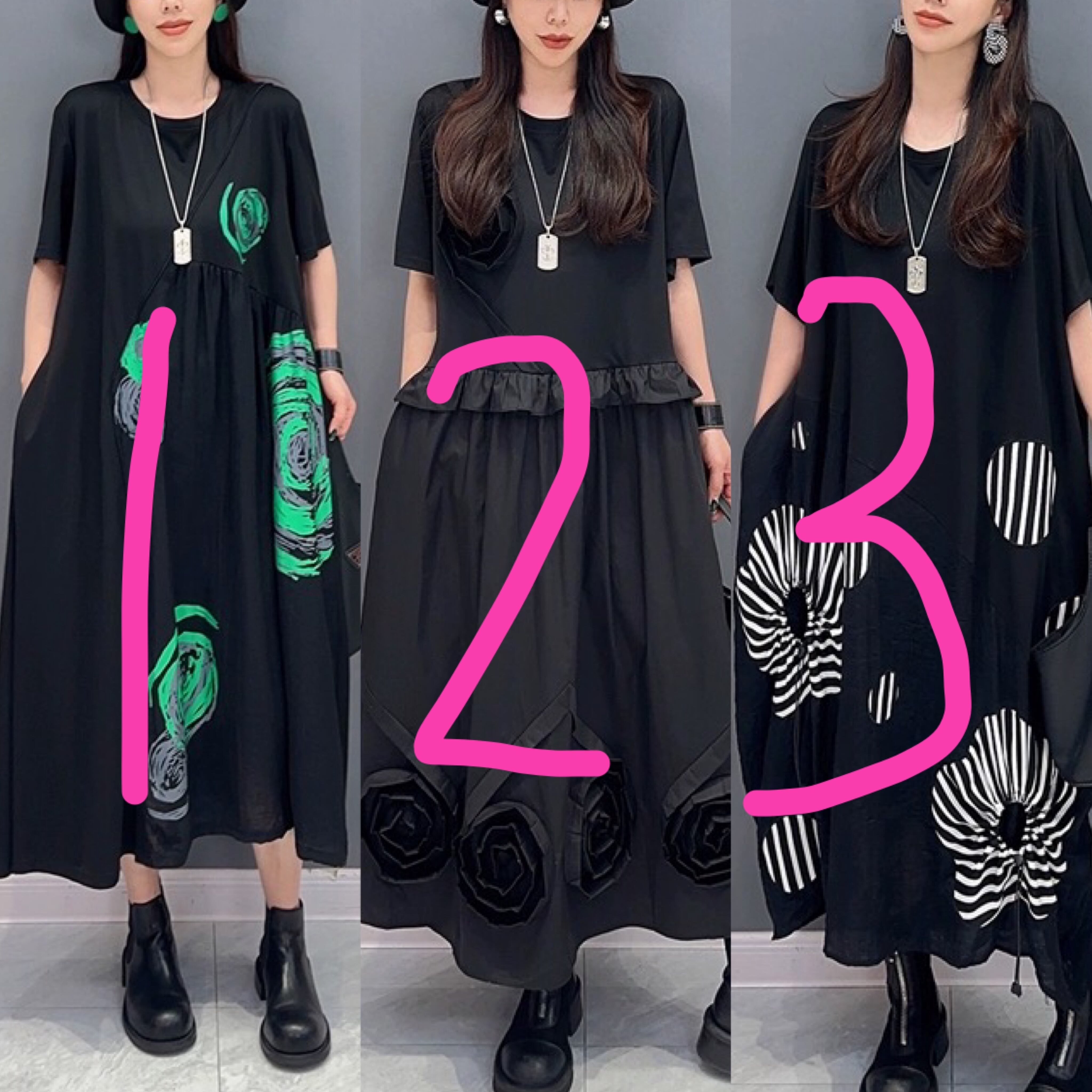 ワンピース ゆったり XL 黒 ブラック 緑 ブラウス ゆったり