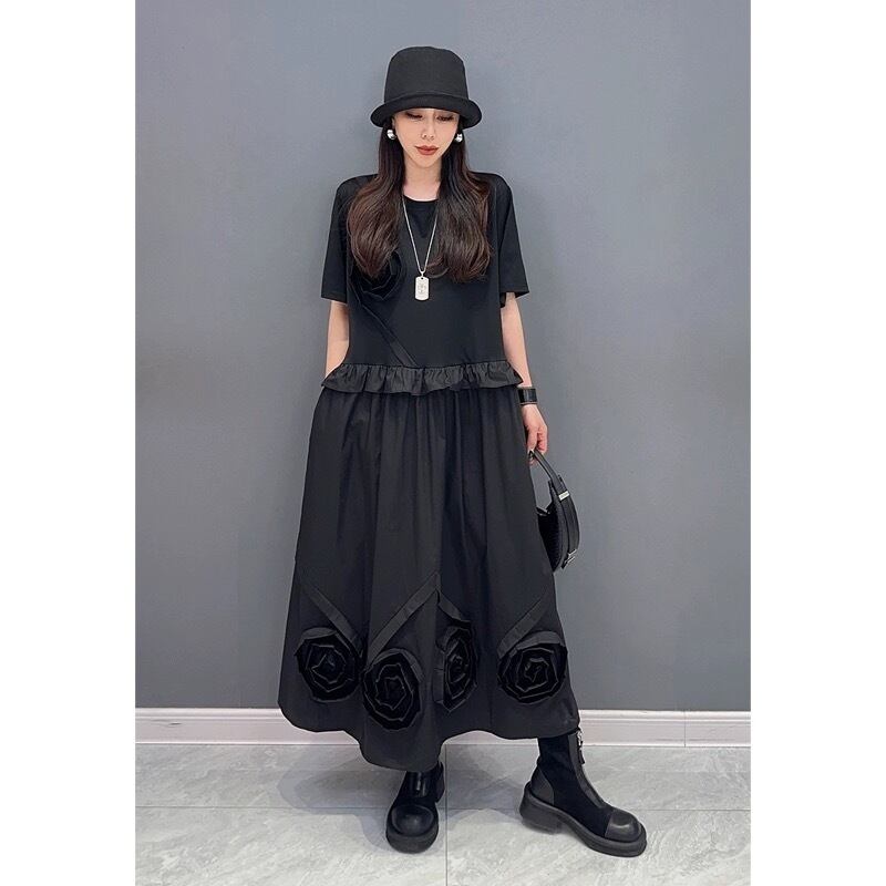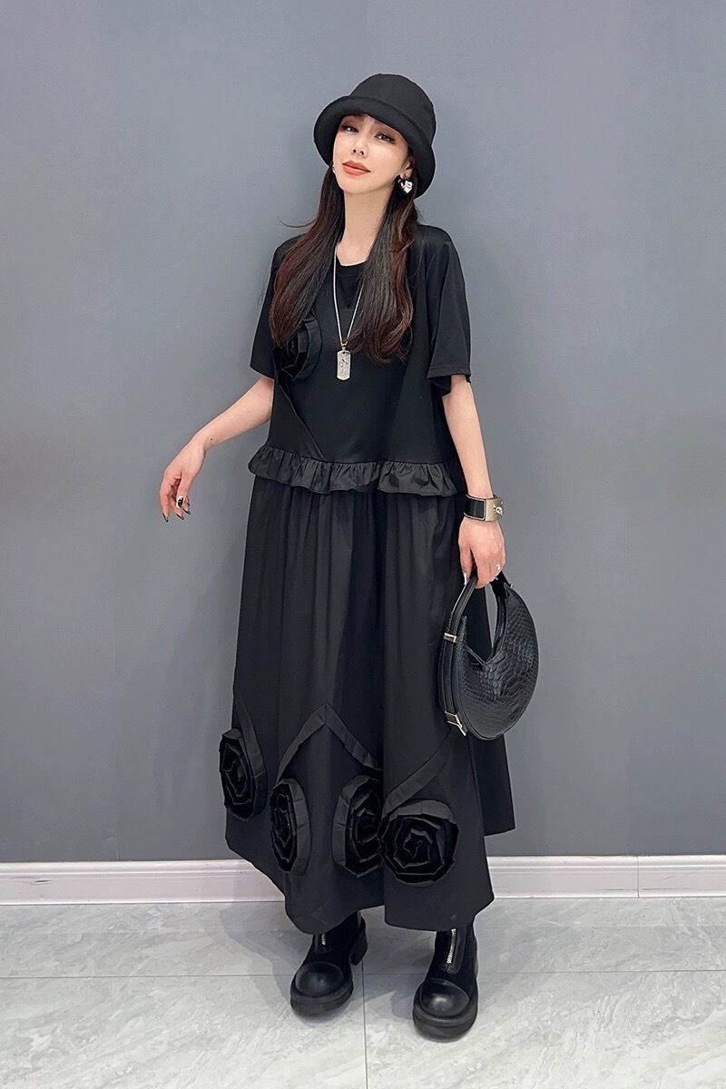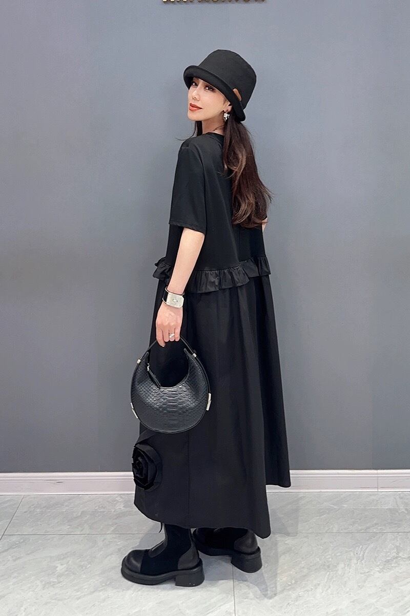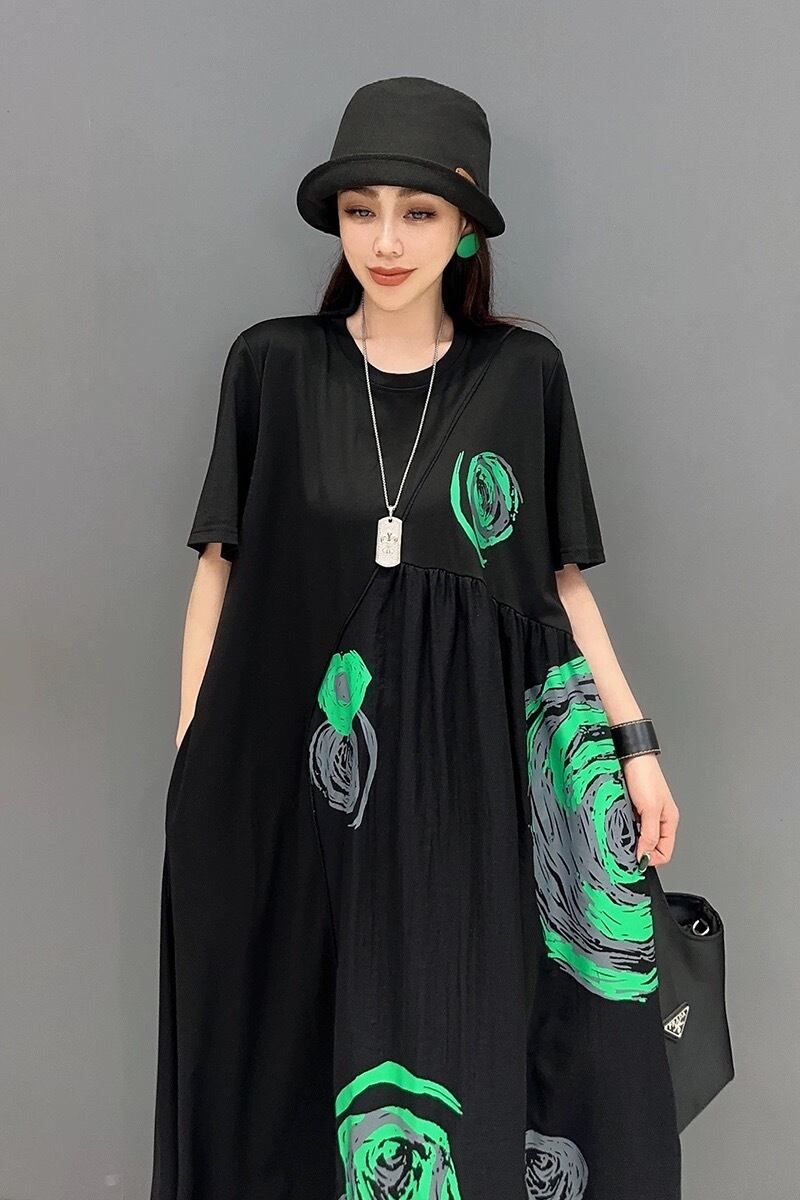 ワンピース ゆったり XL 黒 ブラック 緑 ブラウス ゆったり