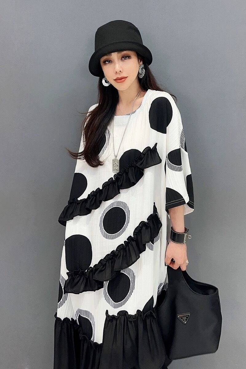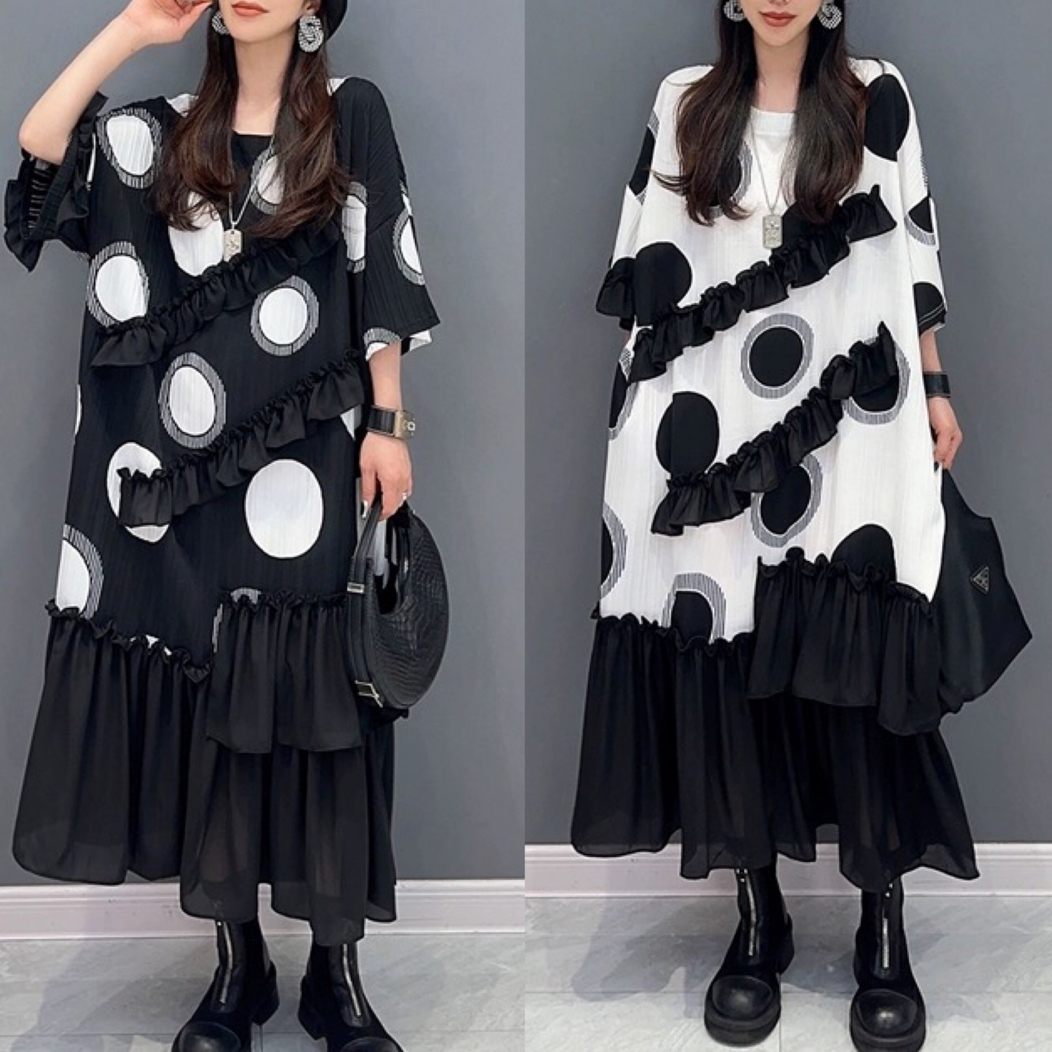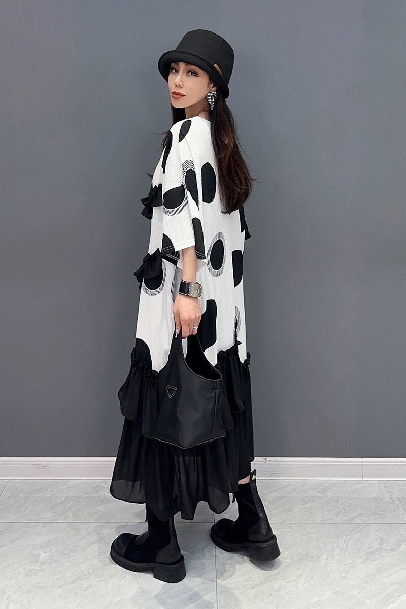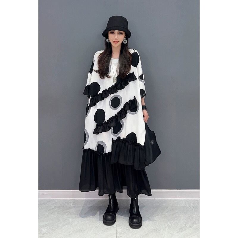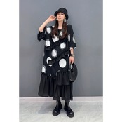 ワンピース 水玉 ドット 黒 ブラウス モノトーン XL カジュアル