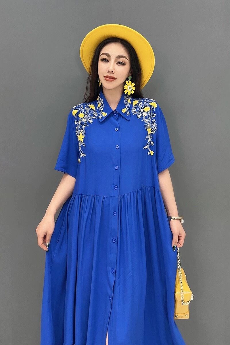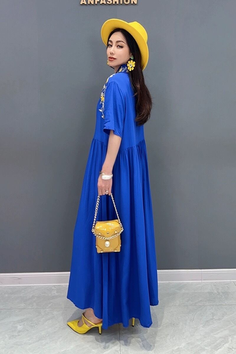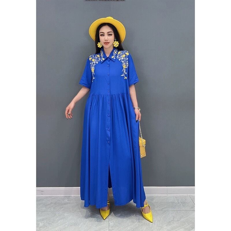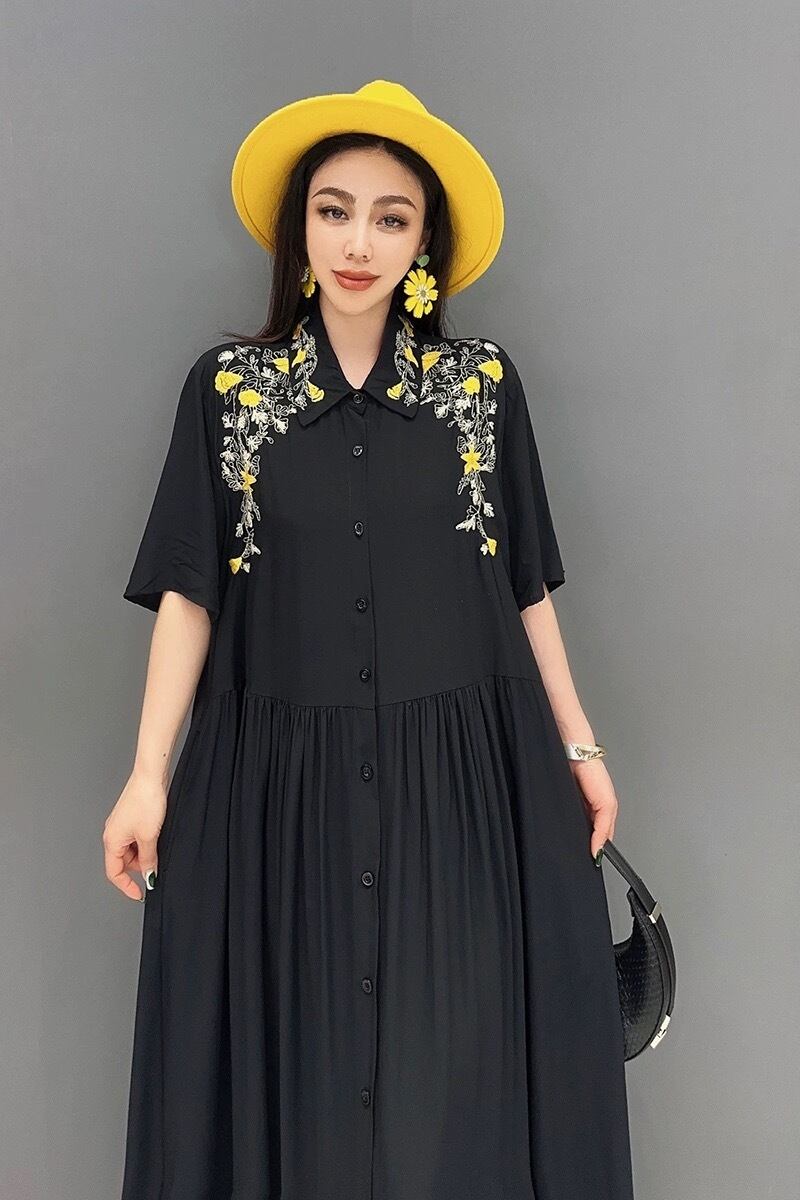 黒 青 ブラウス ワンピース マキシ ゆったり XL カジュアル フラワー 黄色