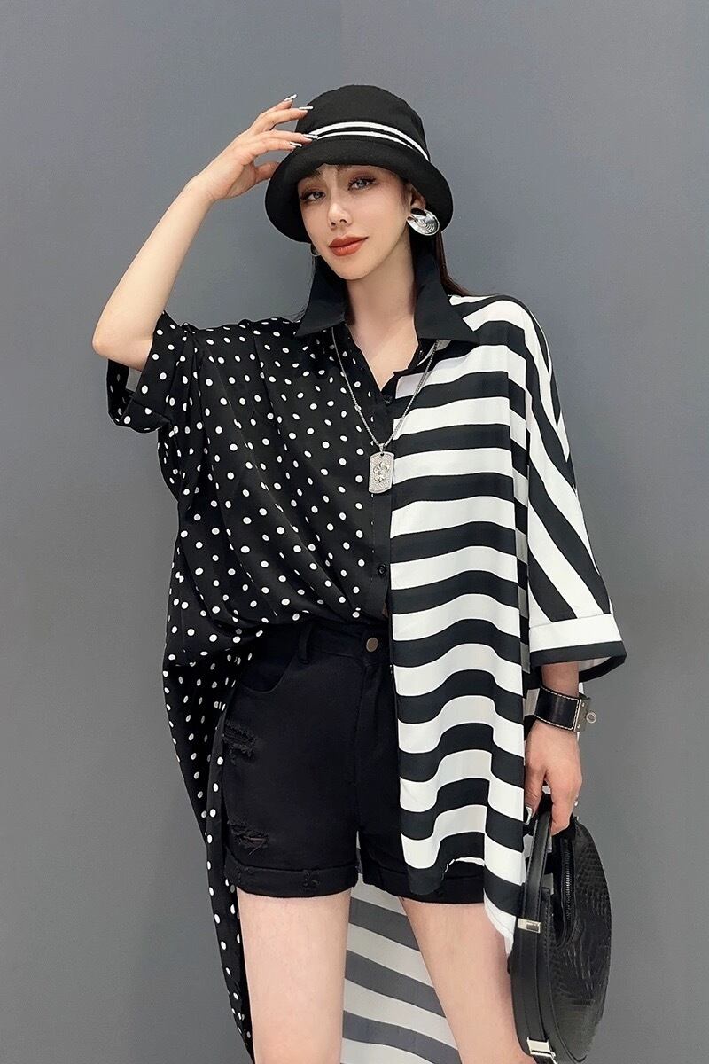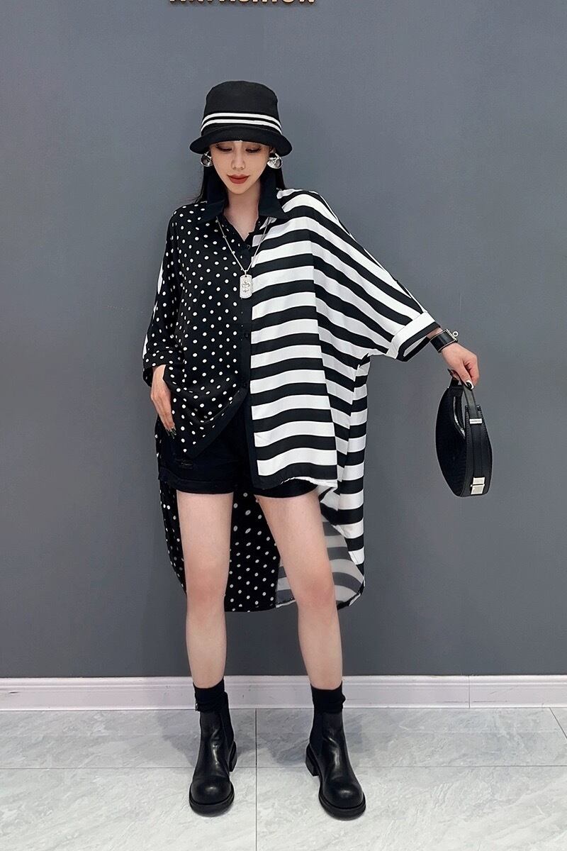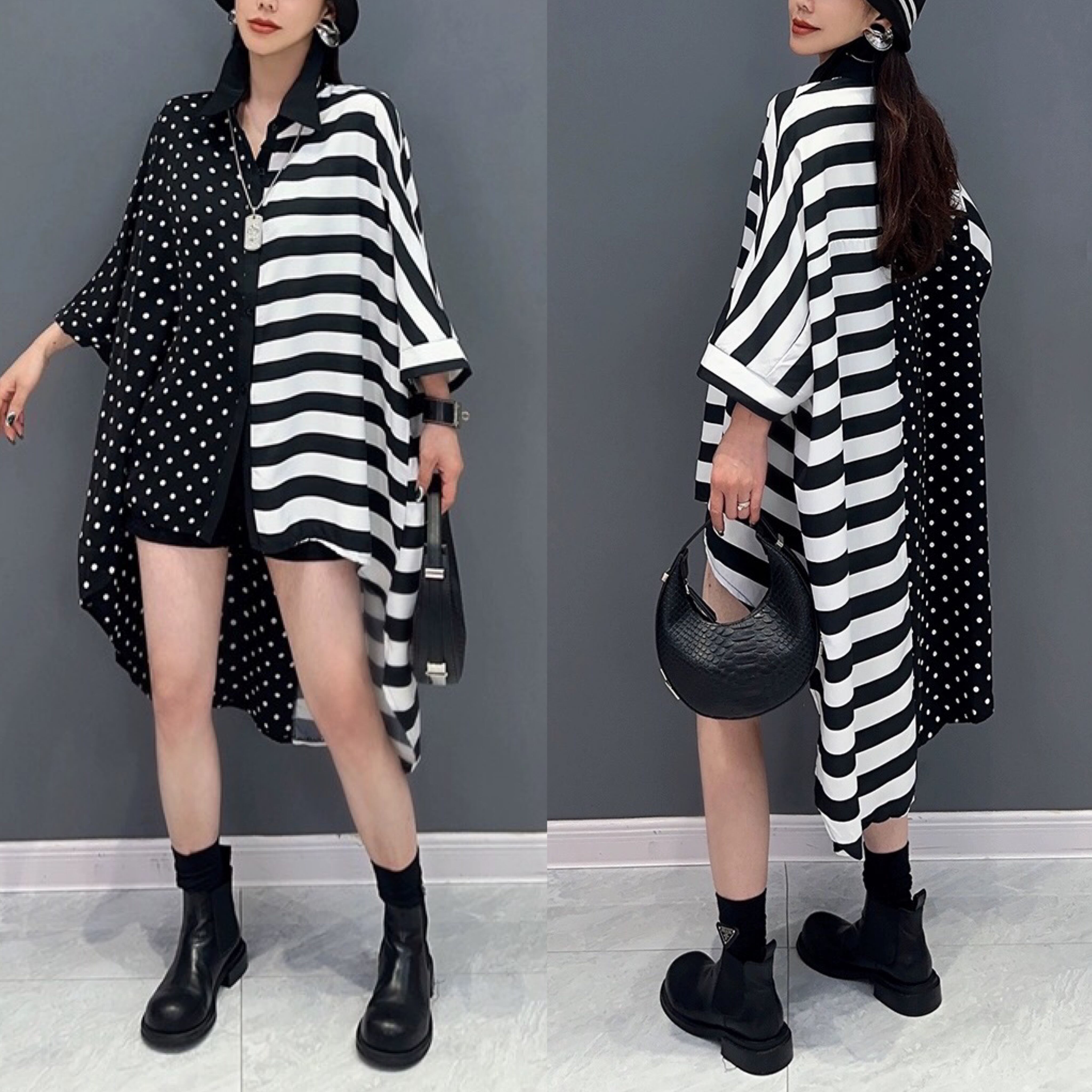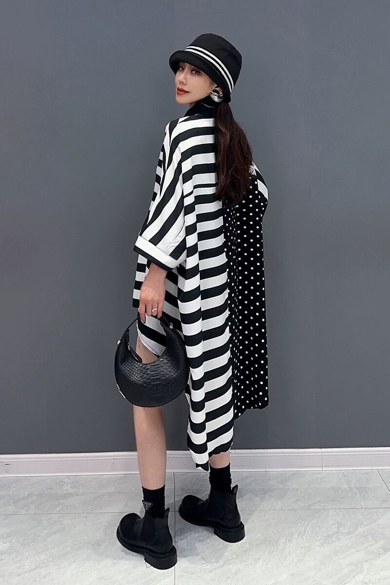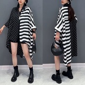 ボーダー ストライプ ワンピース ブラウス シャツ モノトーン