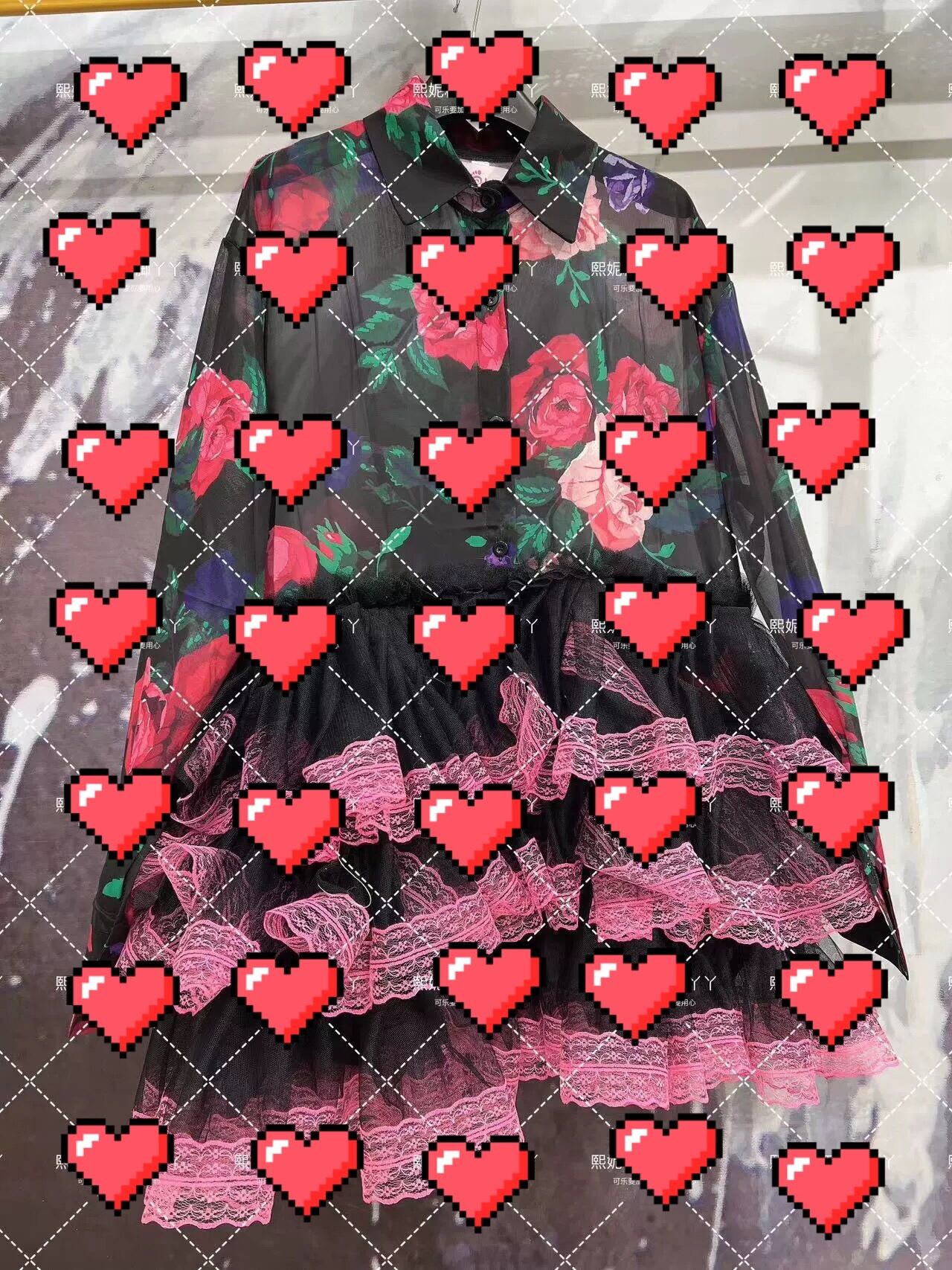 ブラウス ワンピース 黒 花柄 フラワー エレガント トップス リボン